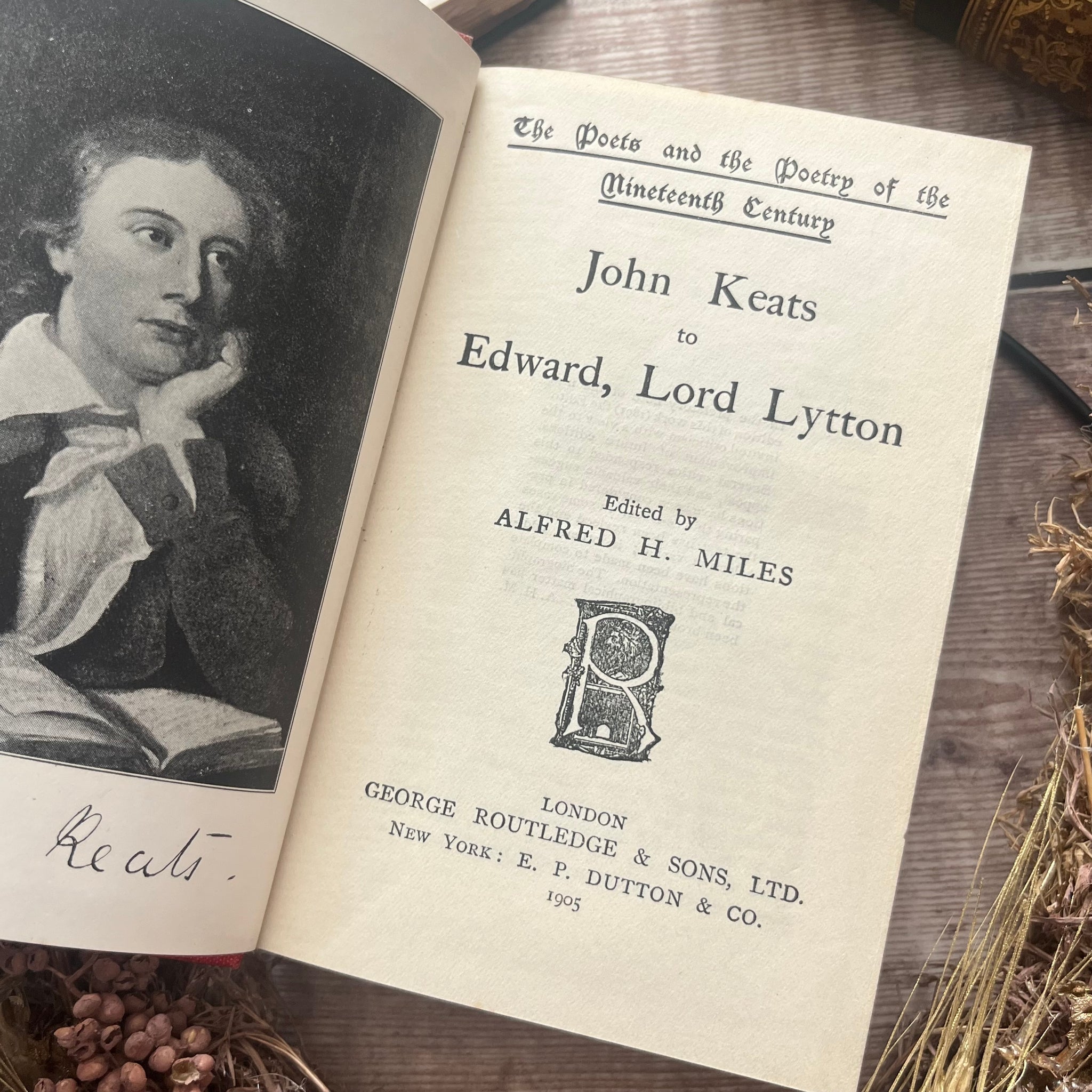 This stunning antique edition of John Keats to Lord Lytton was part of the Poets of the Nineteenth Century series published by George Routledge. The book was published in 1905 so it's from the mid Edwardian era.