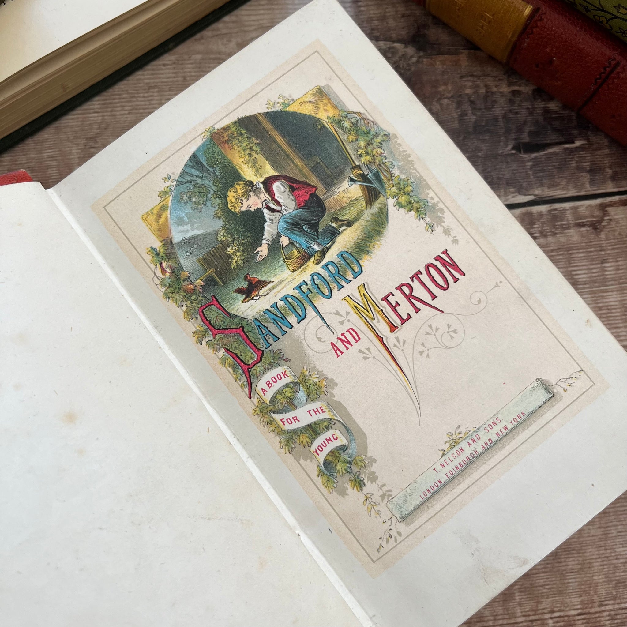This stunning antique edition of Sandford and Merton A Book for the Young by Thomas Day was published by T Nelson and Sons in 1873. So the book is from the mid Victorian era.