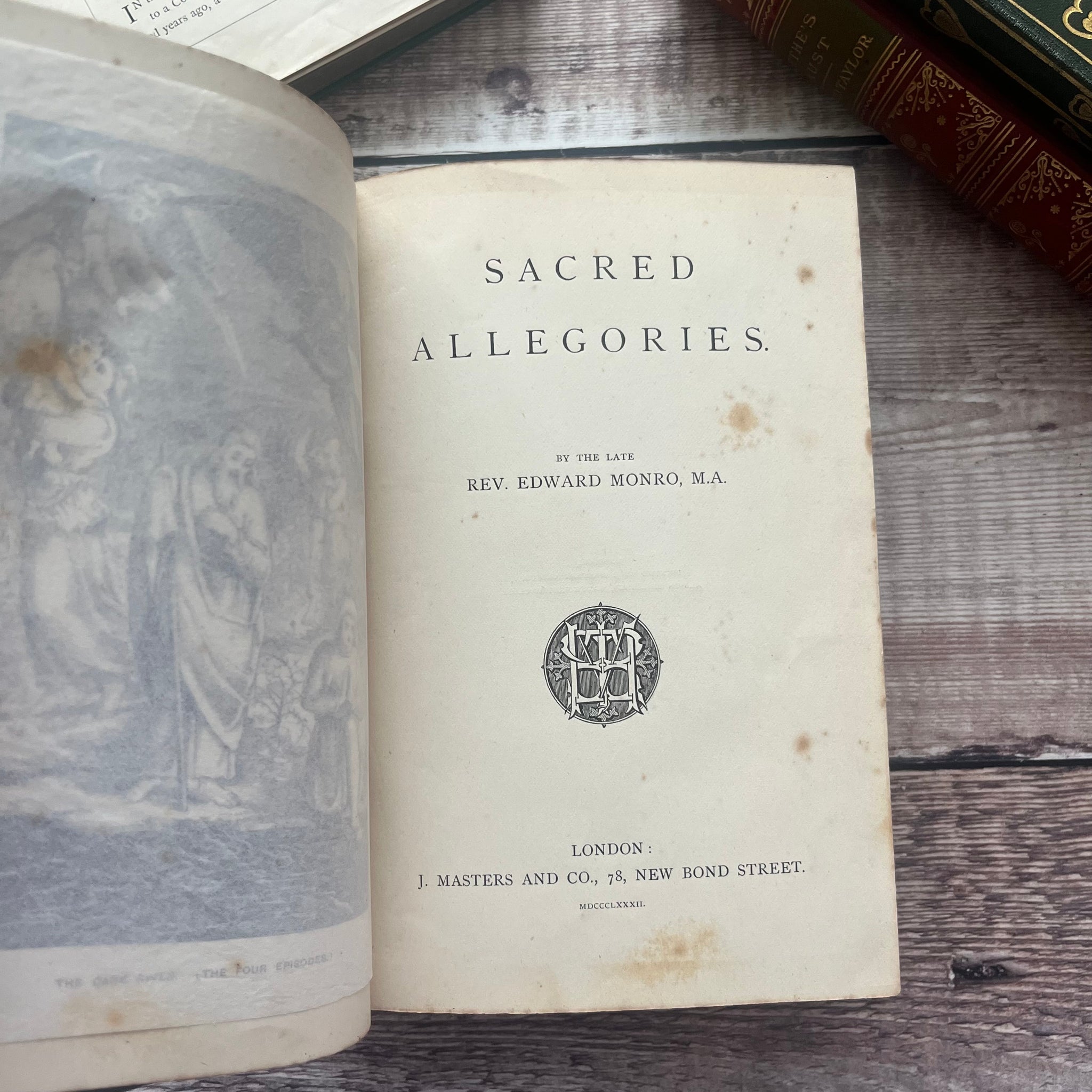 This beautiful, antique edition of Sacred Allegories by Rev Edward Monro was published by J Masters and Co in 1882. So the book is from the latter part of the Victorian era.