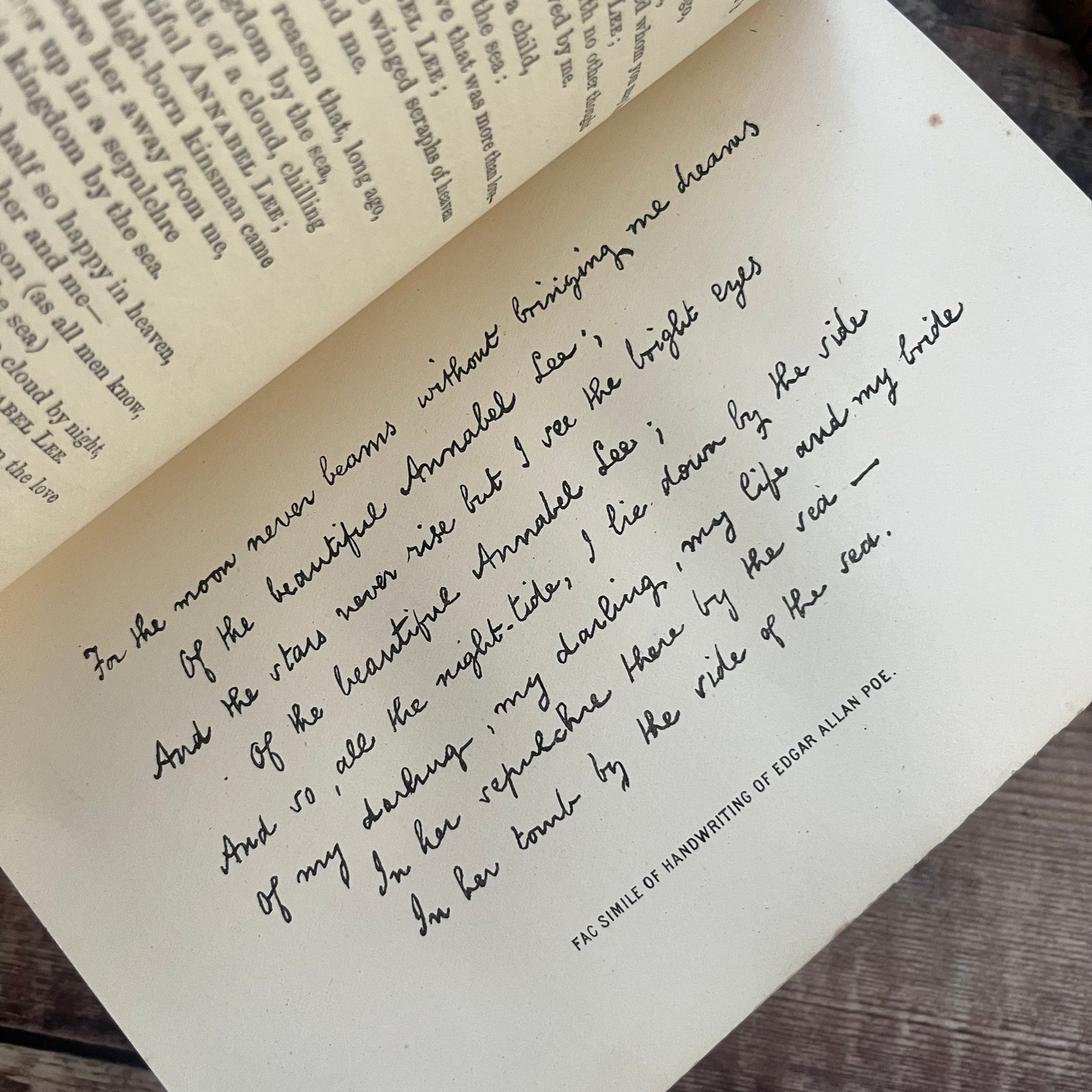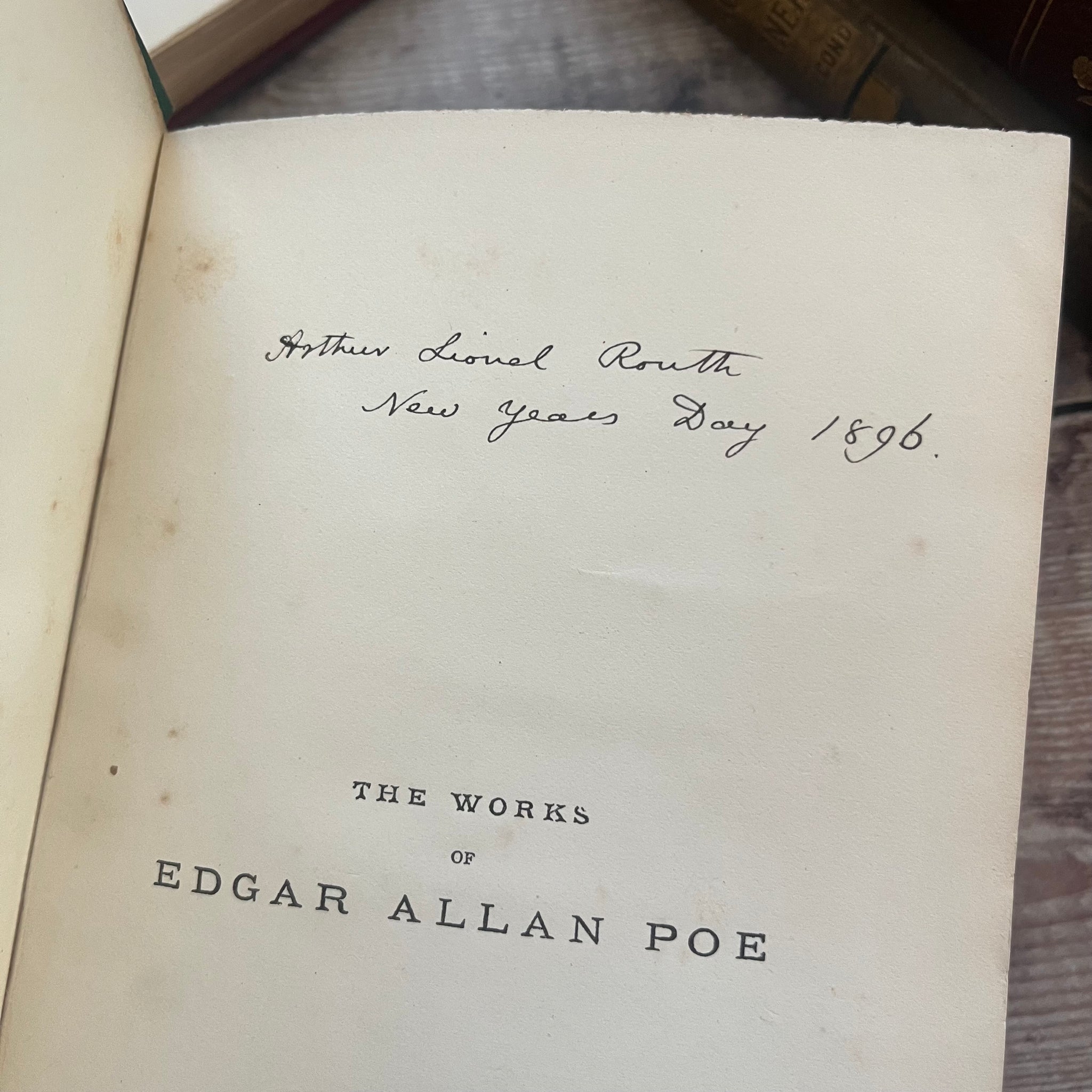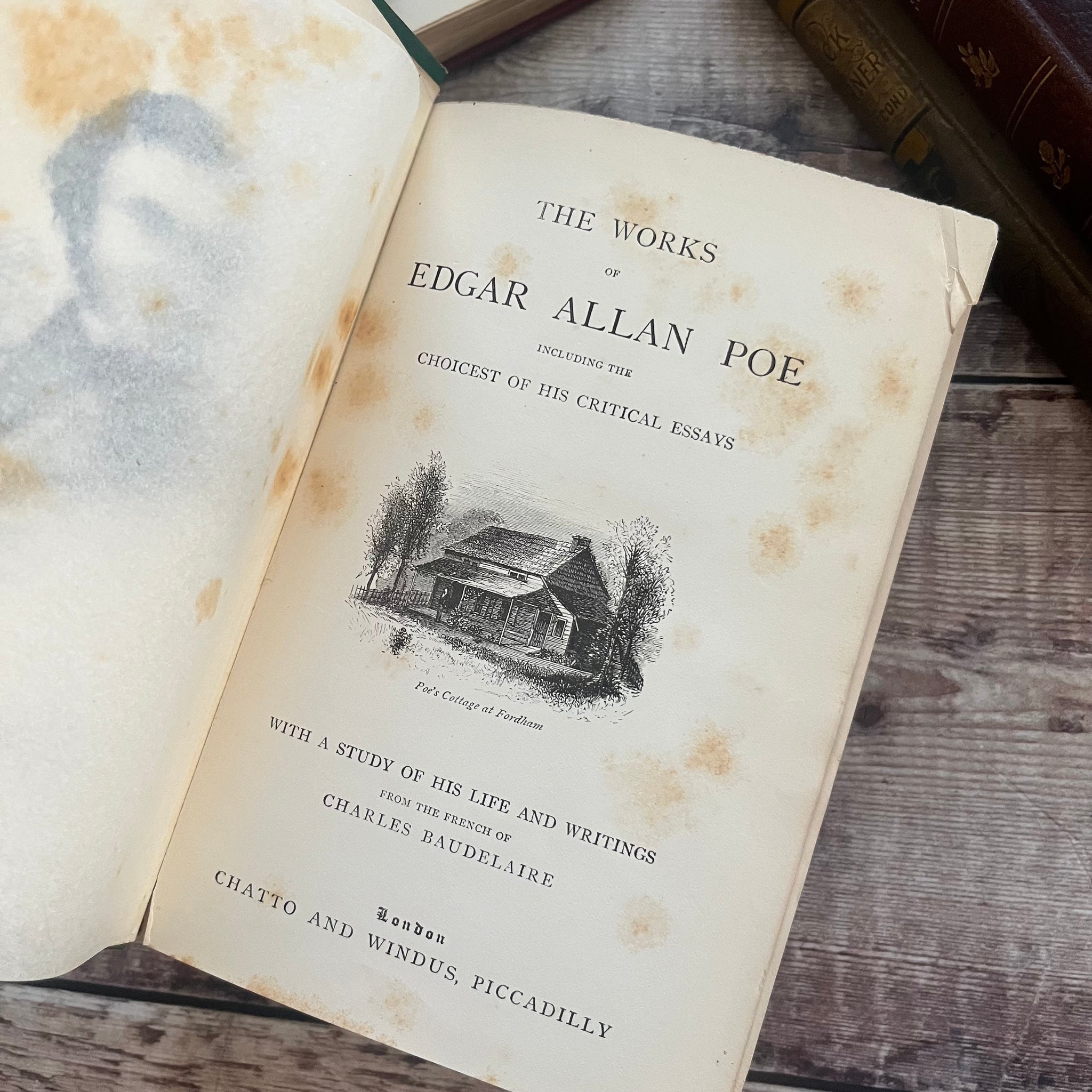 This beautiful vintage edition of The Works of Edgar Allan Poe was published by Chatto and Windus. The book is undated but there is a written inscription inside dated 1896. So the book is from the late Victorian era.