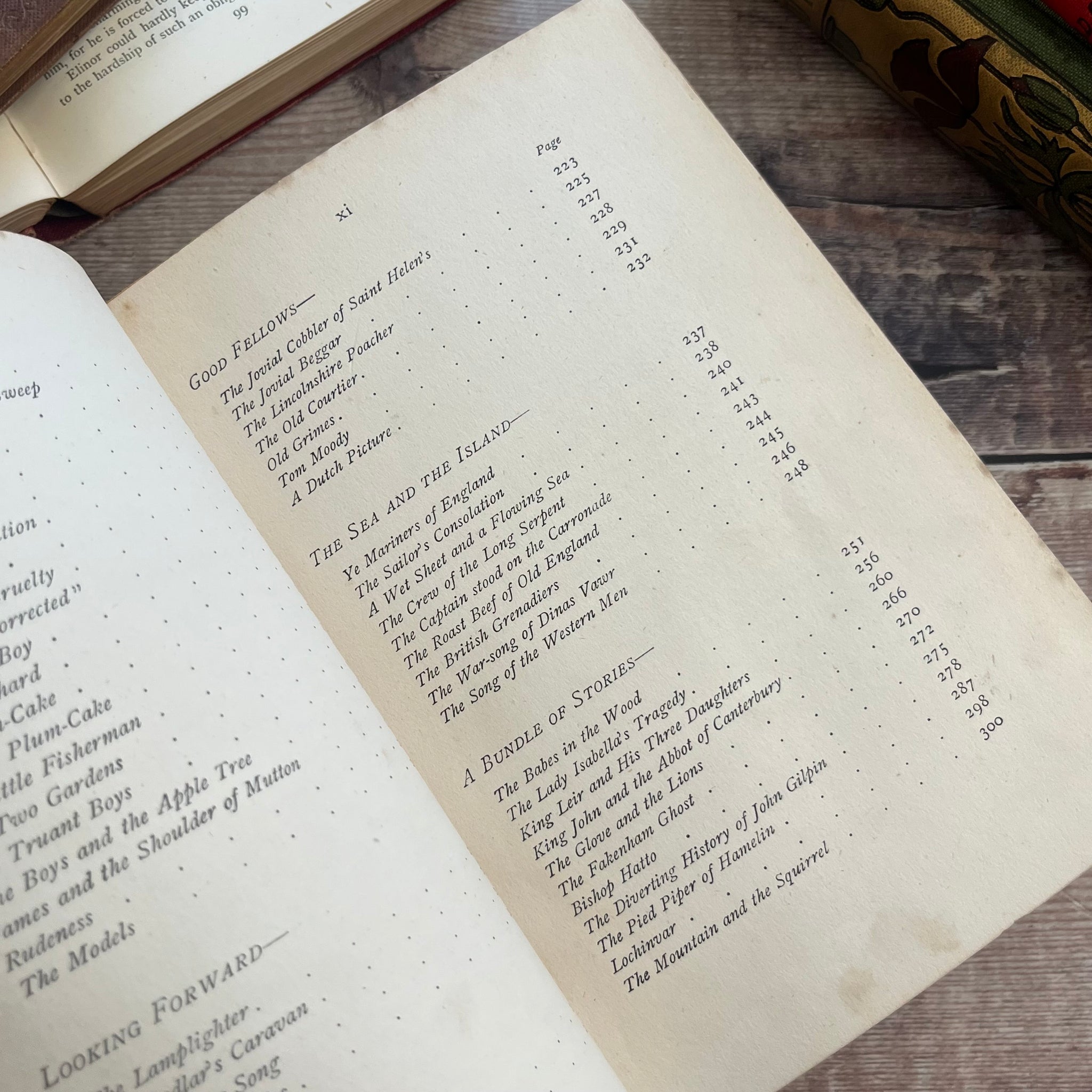 This beautiful edition of A Book of Verses for Children Compiled by E V Lucas was published by Grant Richards in 1897. It's been rebound in contemporary half calf with gilt lettering to the spine. What's particularly lovely is that the gentleman who rebound it inserted a page at the back of the book, detailing why it was given a new binding and what the process was for restoring the book. It was rebound by Anthony Gardner OBE in 1968.