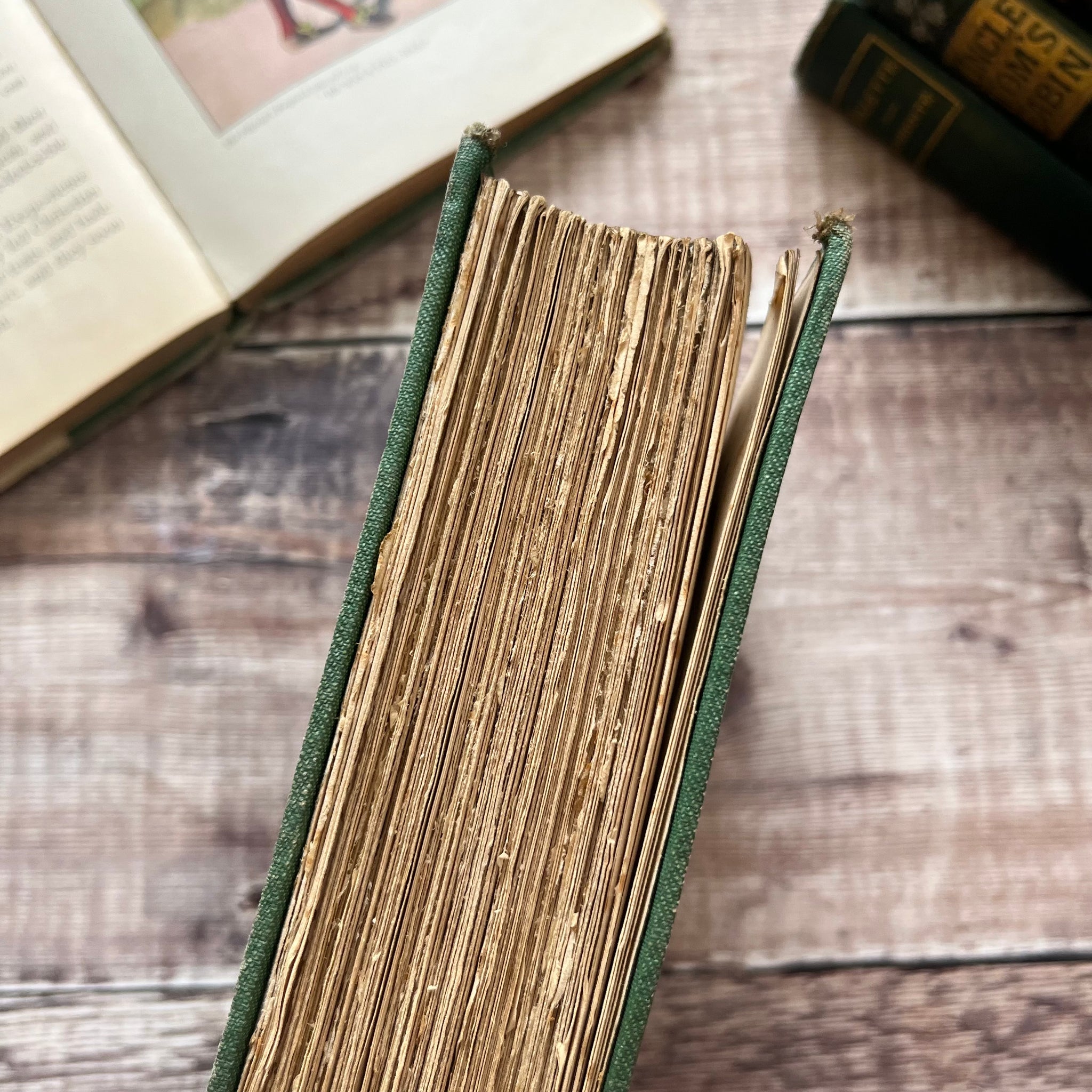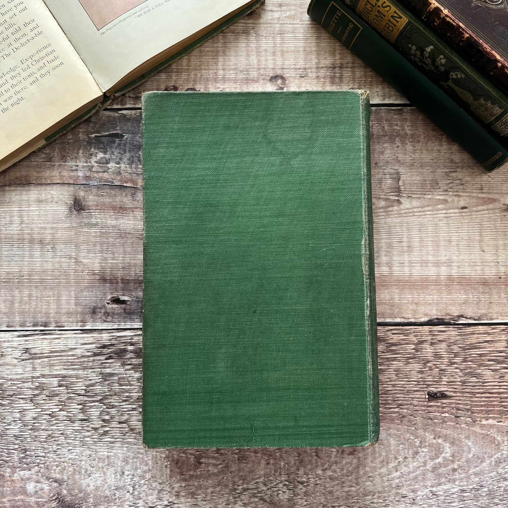 This lovely vintage copy is in good condition for it's age, but there is wear and crushing to the corners, with some slight fraying to the cloth. There are some marks and faint water stains to the boards, and the floral decoration is worn away in places (particularly to the spine). The spine is darkened and crushing to the spine ends has caused splitting in the cloth. There is also significant rubbing to the spine edges which has caused a small split to the external back hinge.