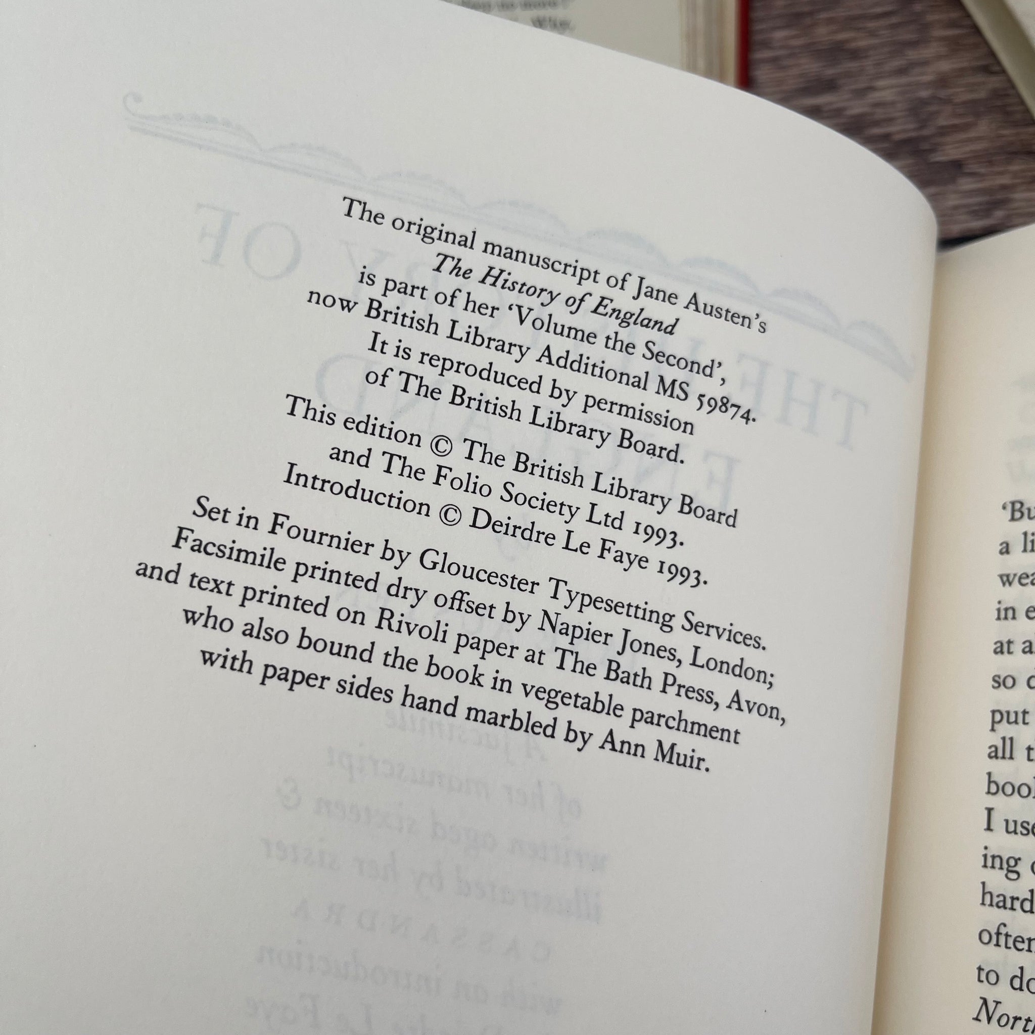 This beautiful edition of The History of England by Jane Austen was published by The Folio Society in 1993. It is a facsimile of Austen's manuscript, written when she was just 16, and illustrated by her sister Cassandra. The book still has it's original slipcase.