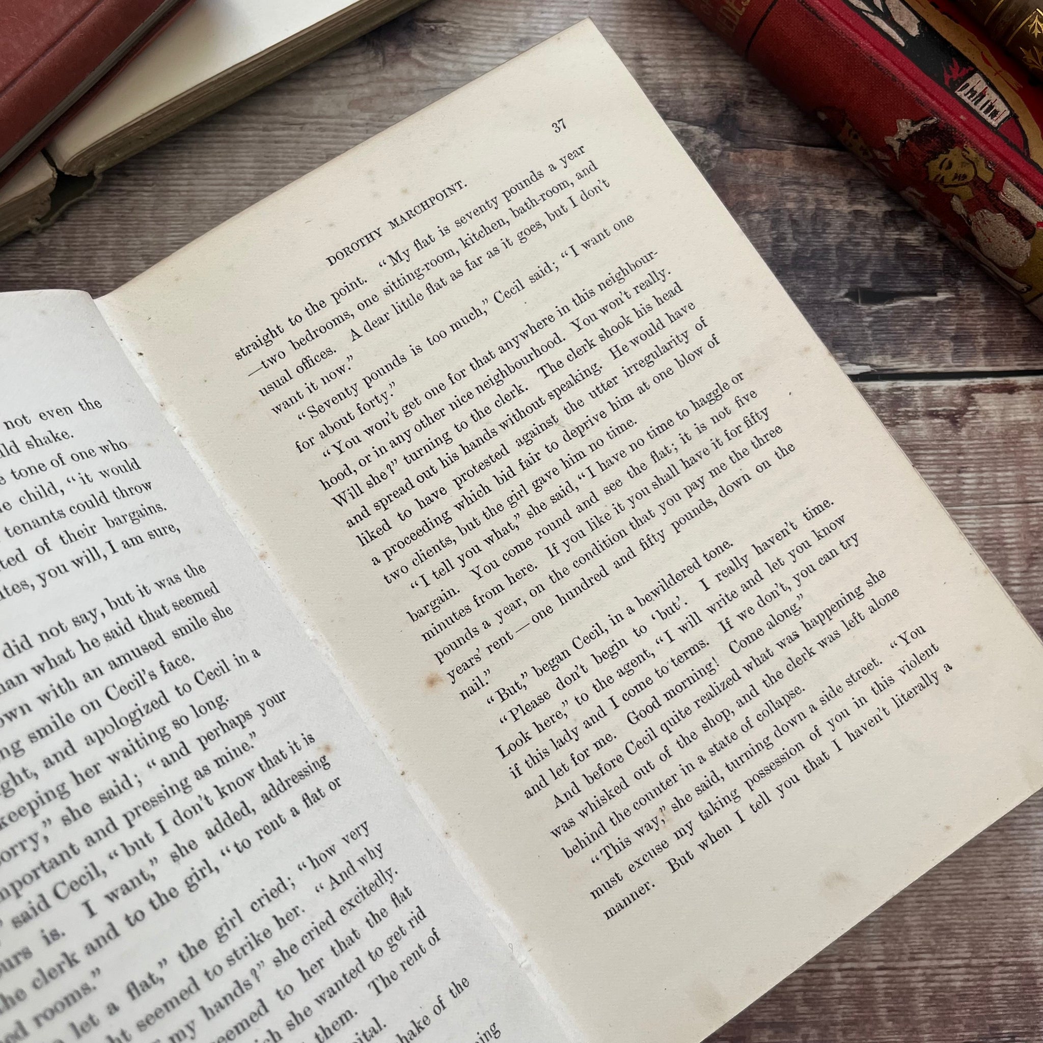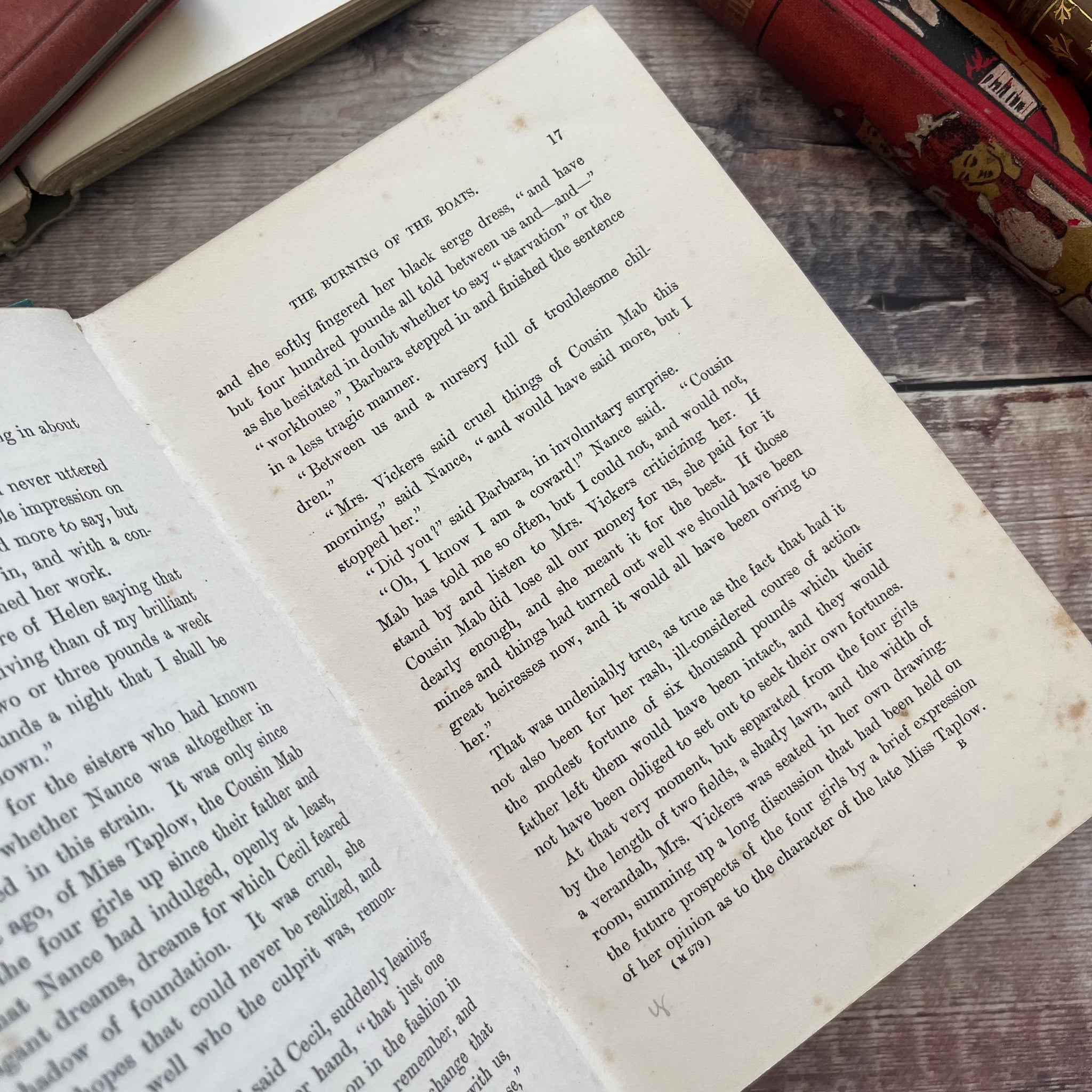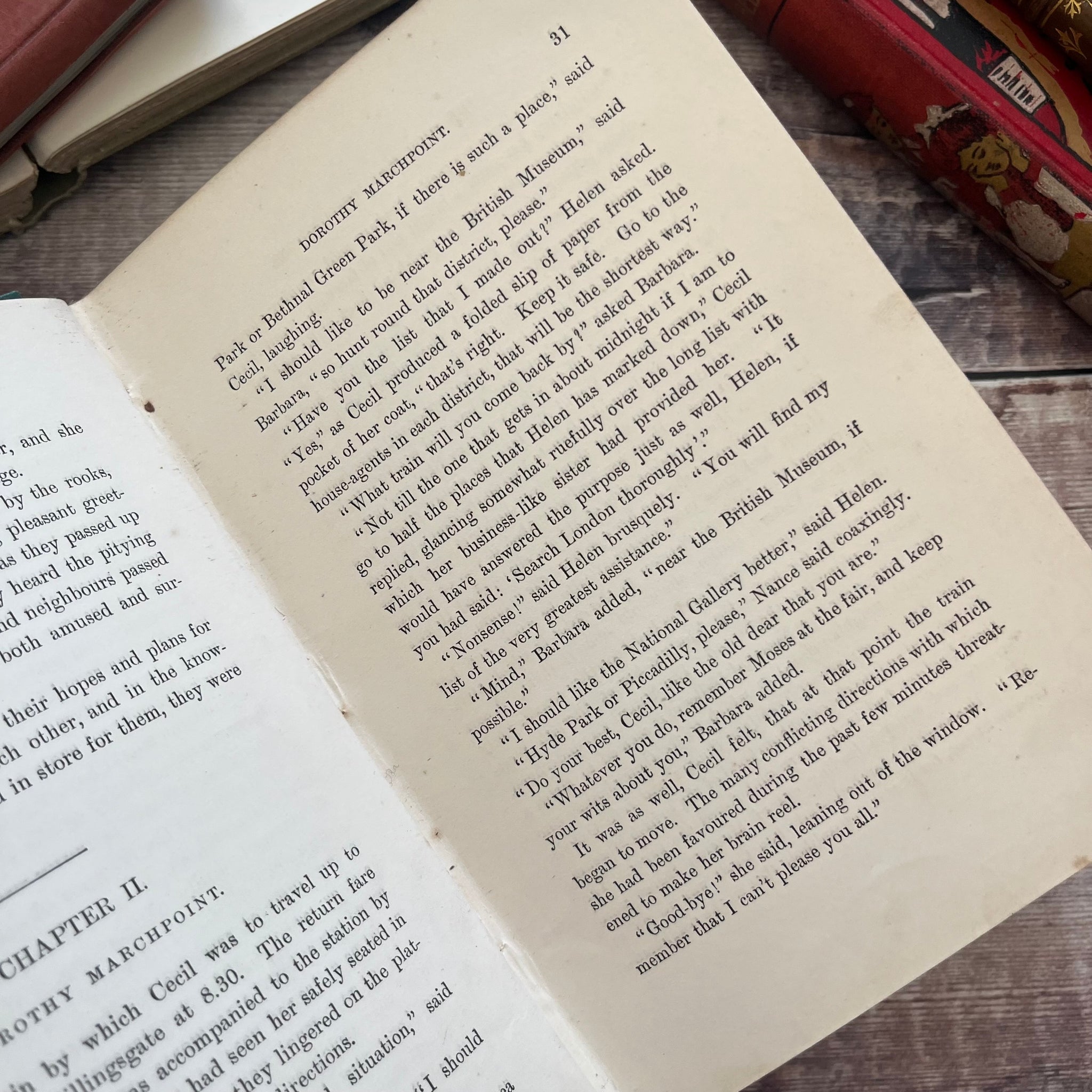 This stunning edition of The Four Miss Whittingtons by Geraldine Mockler was published by Blackie and Son. The book is undated but I'd estimate the book to be from the 1910's. There is beautiful pictorial decoration of four ladies to the front board and art nouveau floral decoration to the spine.