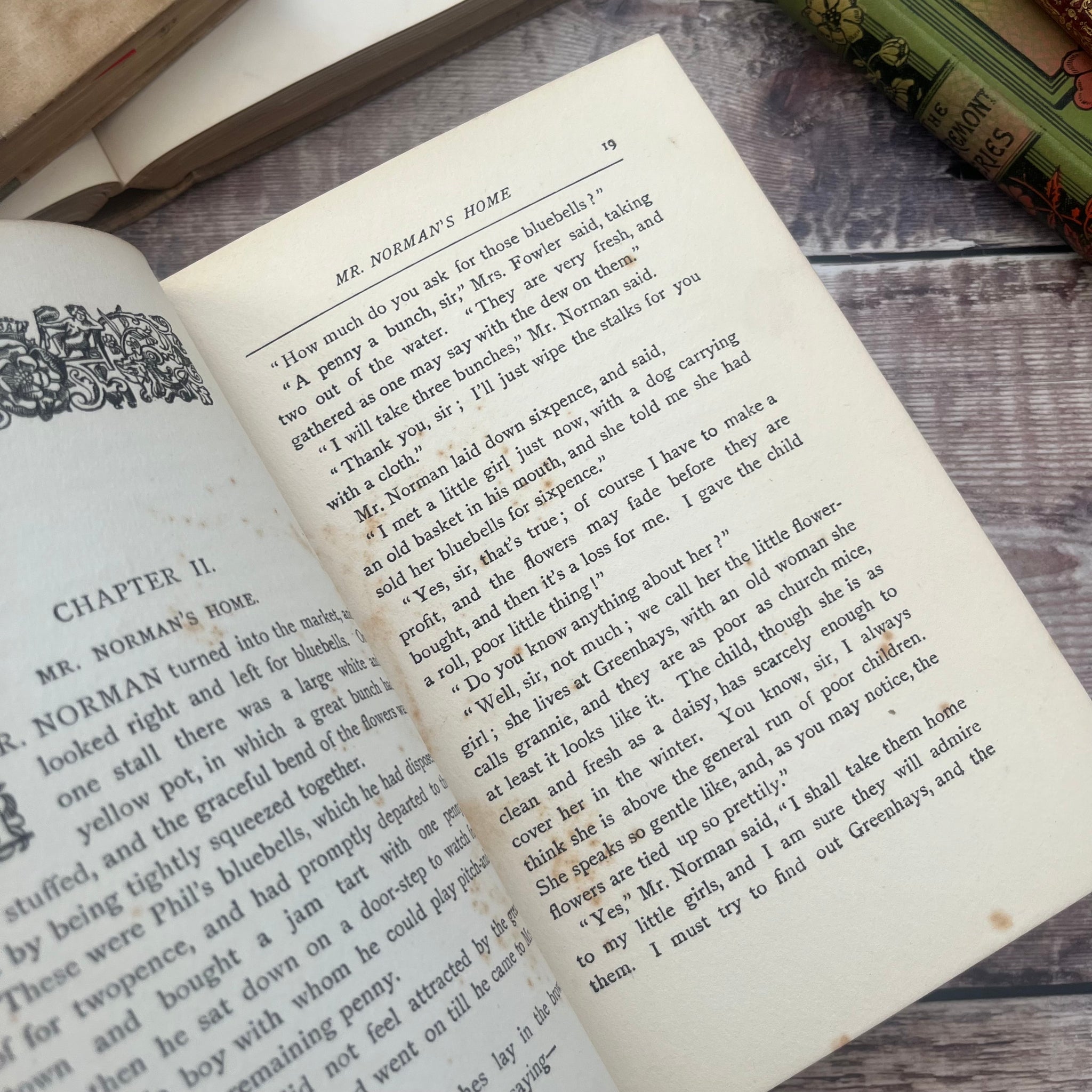 This beautiful edition of Bluebell by Emma Marshall was published by John F Shaw. The book itself is undated but there is a written inscription inside dated 1914. So the book is early 20th century.
