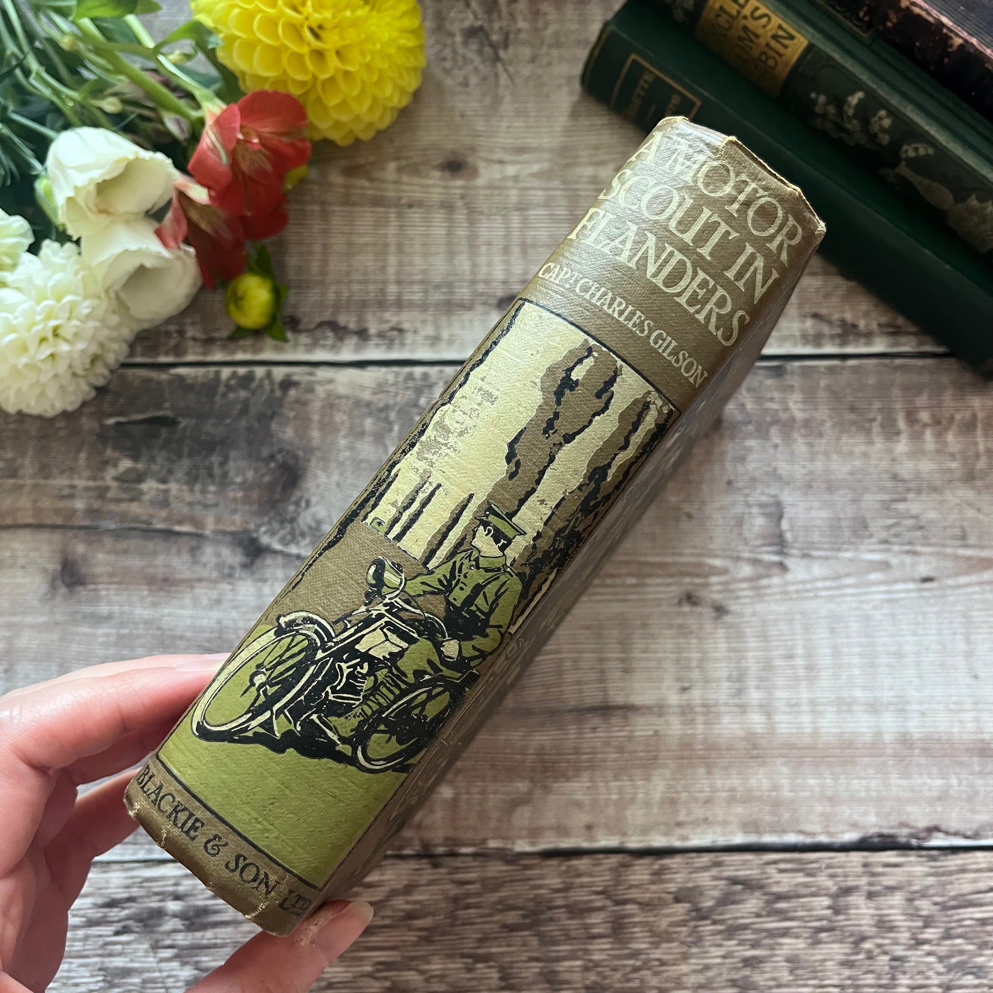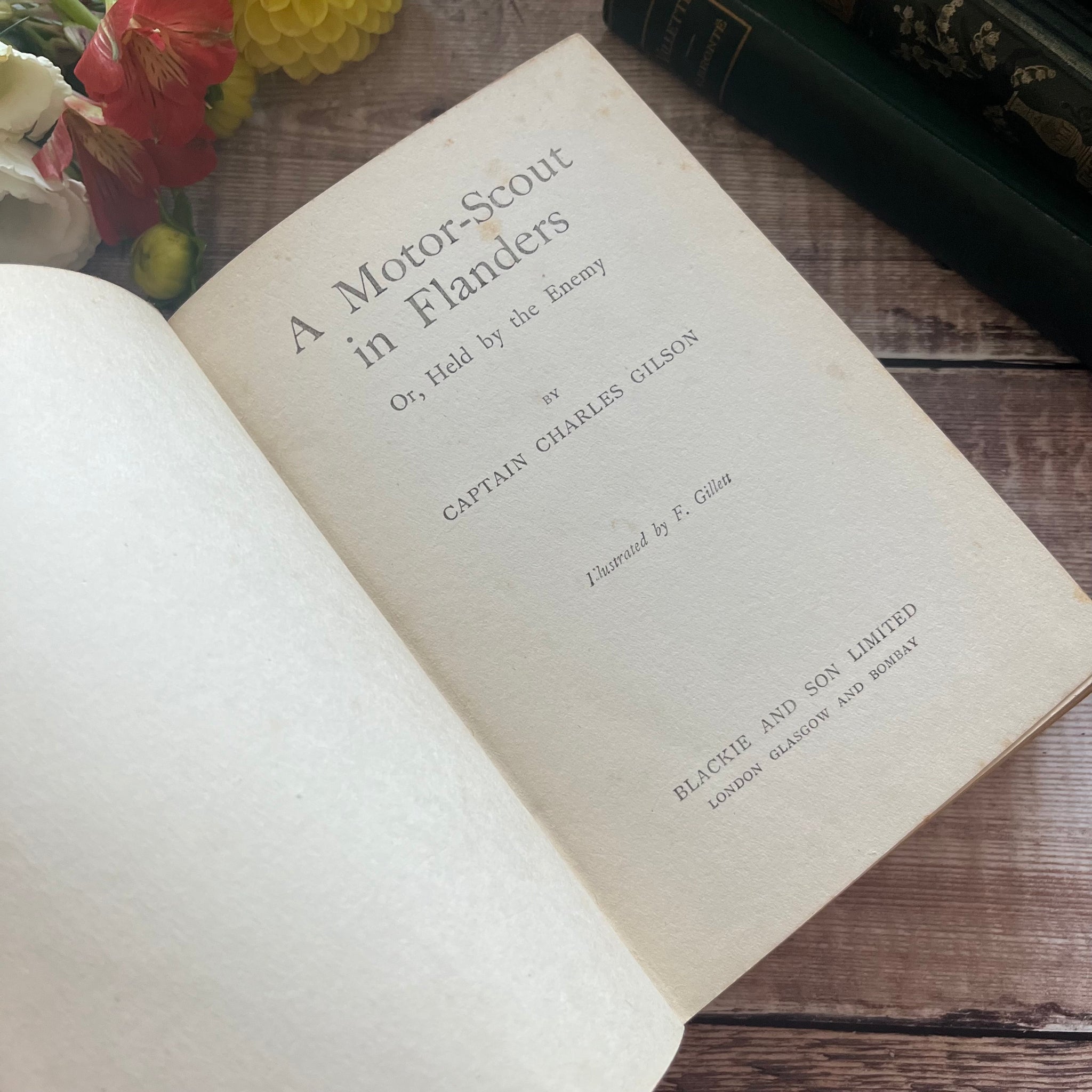 This stunning edition of A Motor Scout in Flanders by Captain Chas Gilson was published by Blackie and Son. The book is undated but I'd estimate it to be circa 1920 (it's set during the First World War).