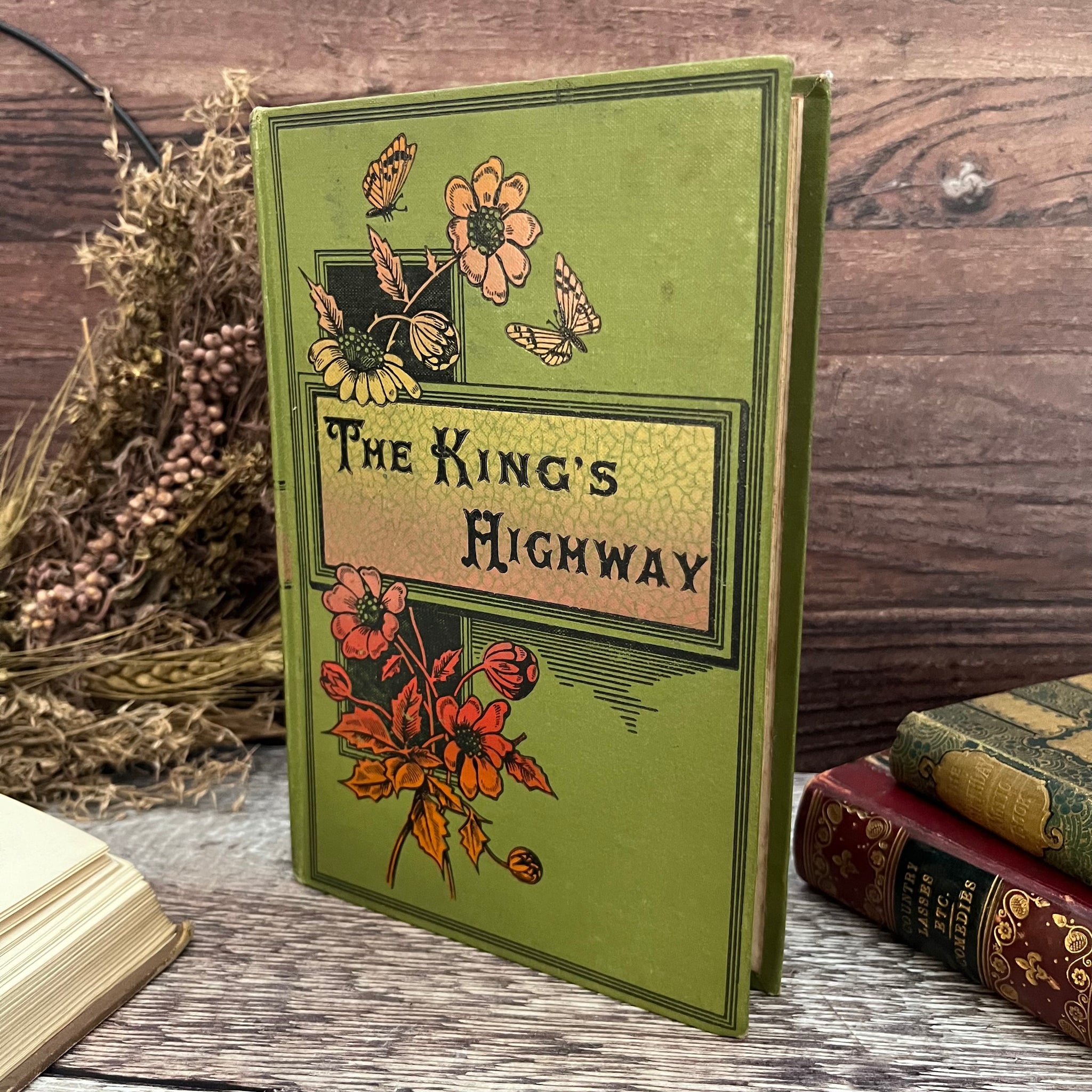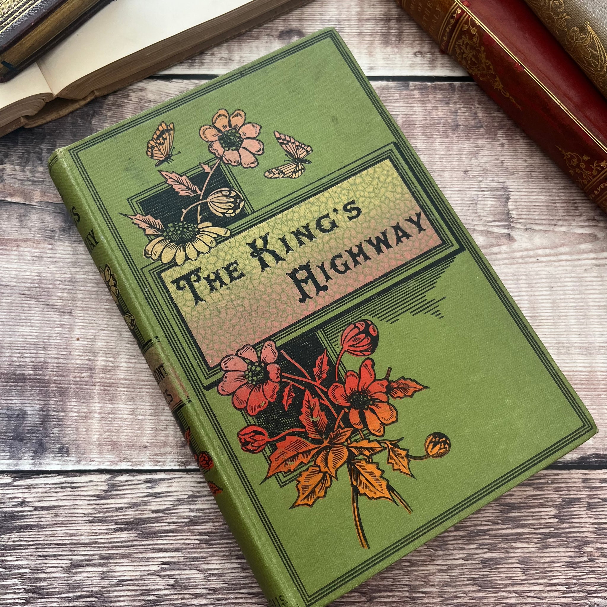 This beautiful antique edition of The King's Highway or Illustrations on the Ten Commandments was published by Gall and Inglis. The book itself is undated but I've seen other titles in this binding with inscriptions and they date from the end of the Victorian era (circa 1890's).
