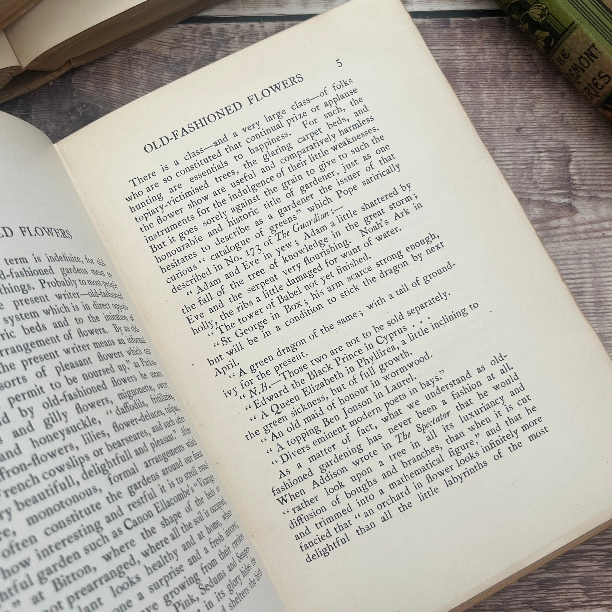 This beautiful edition of The Book of Old Fashioned Flowers by Harry Roberts is volume iv in what would have been a complete set of Practical Gardening Handbooks. It was published by John Lane The Bodley Head in 1901.