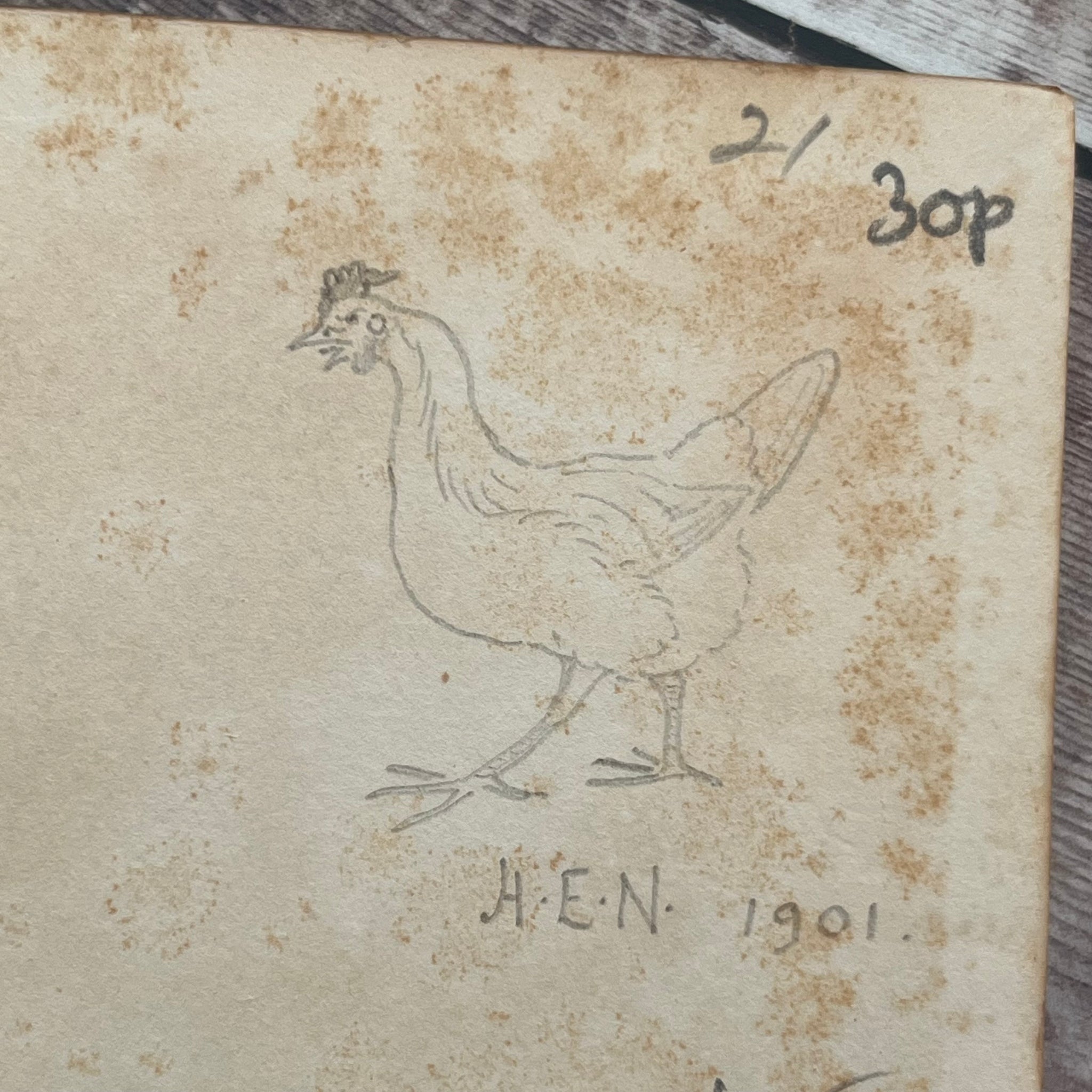 Inside, the endpapers show significant foxing and age staining, as well as a pencil sketch of a hen dated 1901! There is also an old pencilled price in the top corner of the FFEP. The rest of the pages are clean and bright with only very occasional minor marking. There are some minor bumps and chips to the page edges in places.