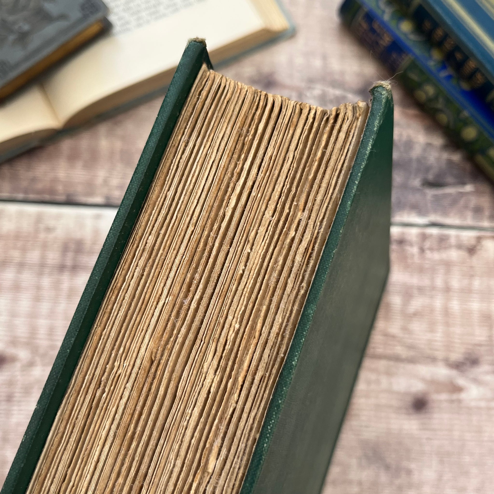 The book is bound in dark green cloth with pretty pictorial decoration to the front board and spine. It's an attractive binding and in very good condition. There is light wear to the corners and fraying to the cloth. The boards show minor marking and there is rubbing to the spine ends. The spine shows faint sunning and there is crushing to the spine ends.