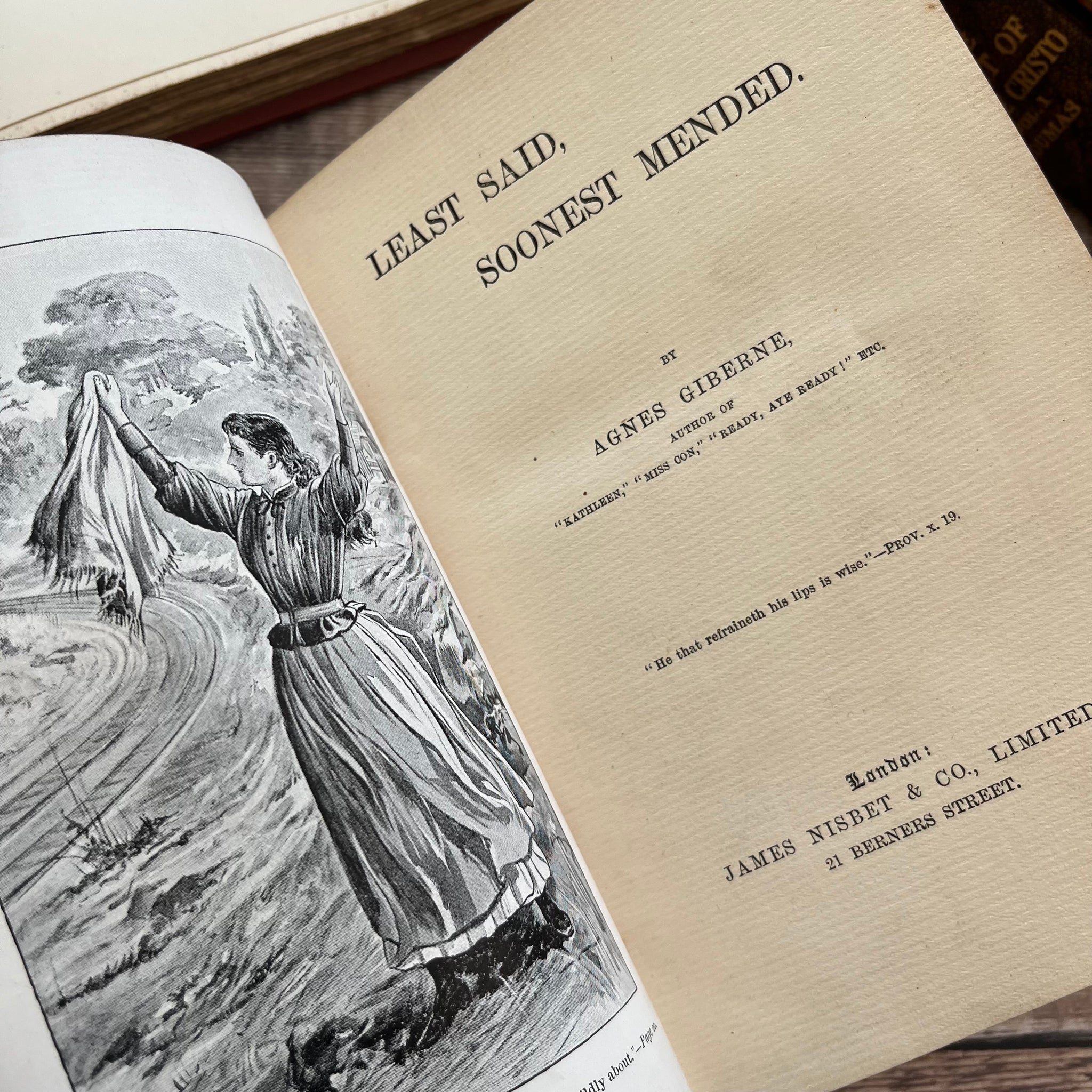 This beautiful edition of Least Said Soonest Mended by Agnes Giberne was published James Nisbet & Co Limited. This particular edition isn't dated but I've seen different books in this same binding, and they date from the Edwardian period (1902-1910).