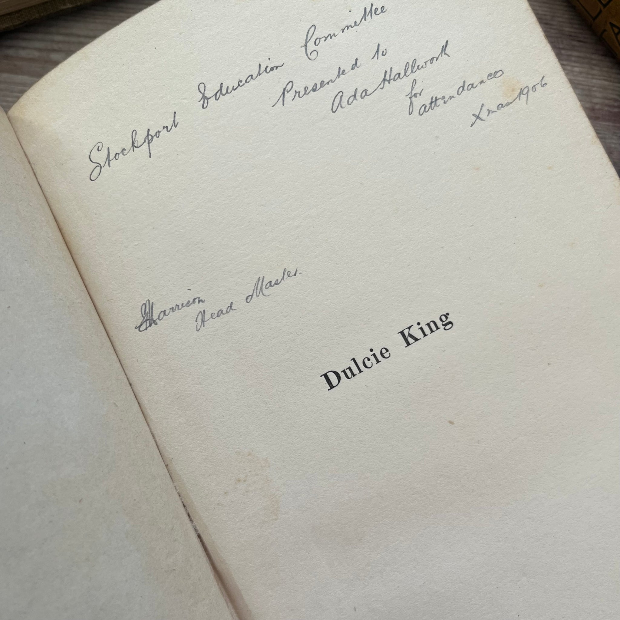 This stunning edition of Dulcie King by M Corbet Seymour was published by Blackie and Son; even though the book itself is undated, there is a written inscription dated 1906. So the book is likely to be from the Edwardian era.