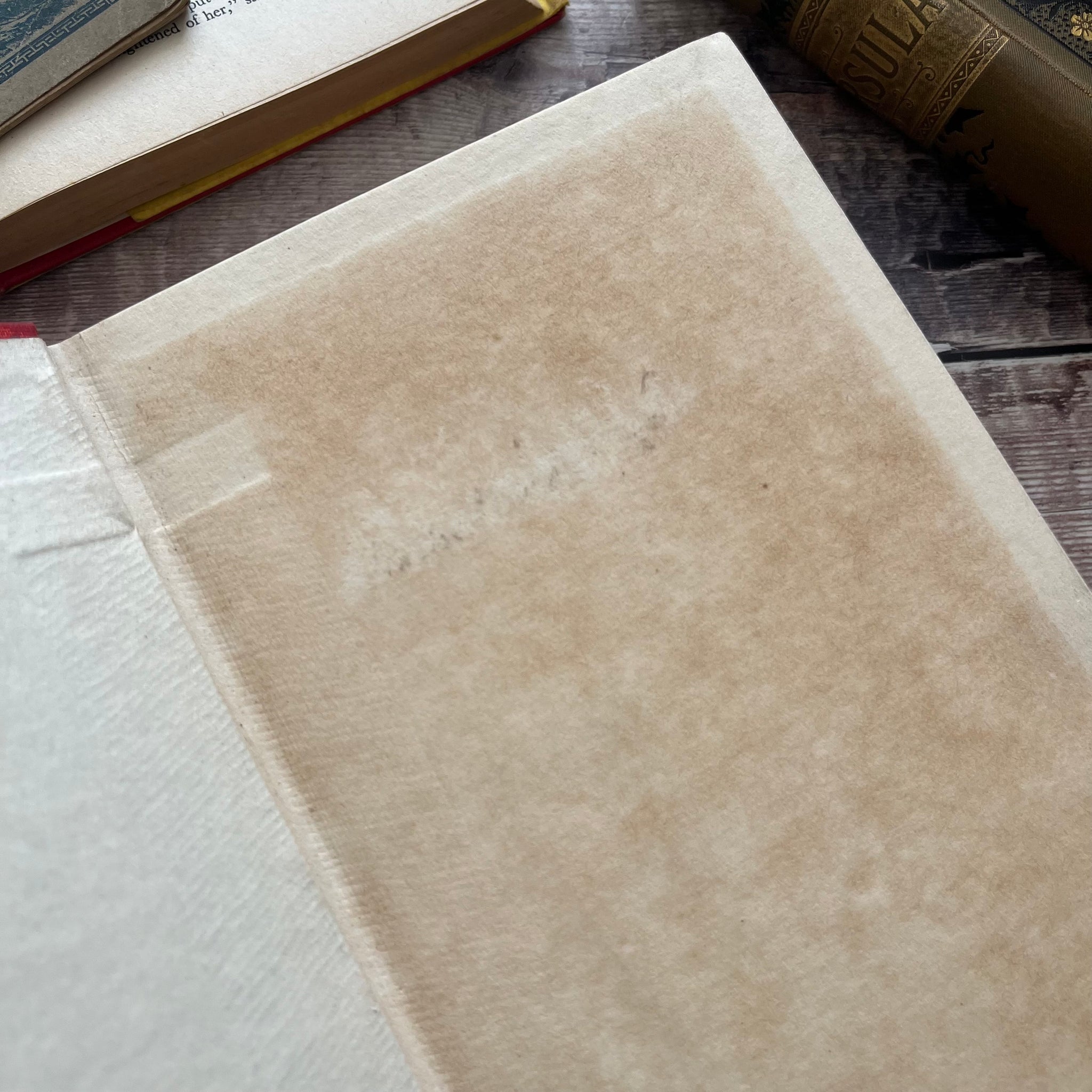 Inside, the endpapers are tanned and a name has been rubbed out on the FFEP. The pages show light age toning and occasional foxing. There is one black and white frontispiece.