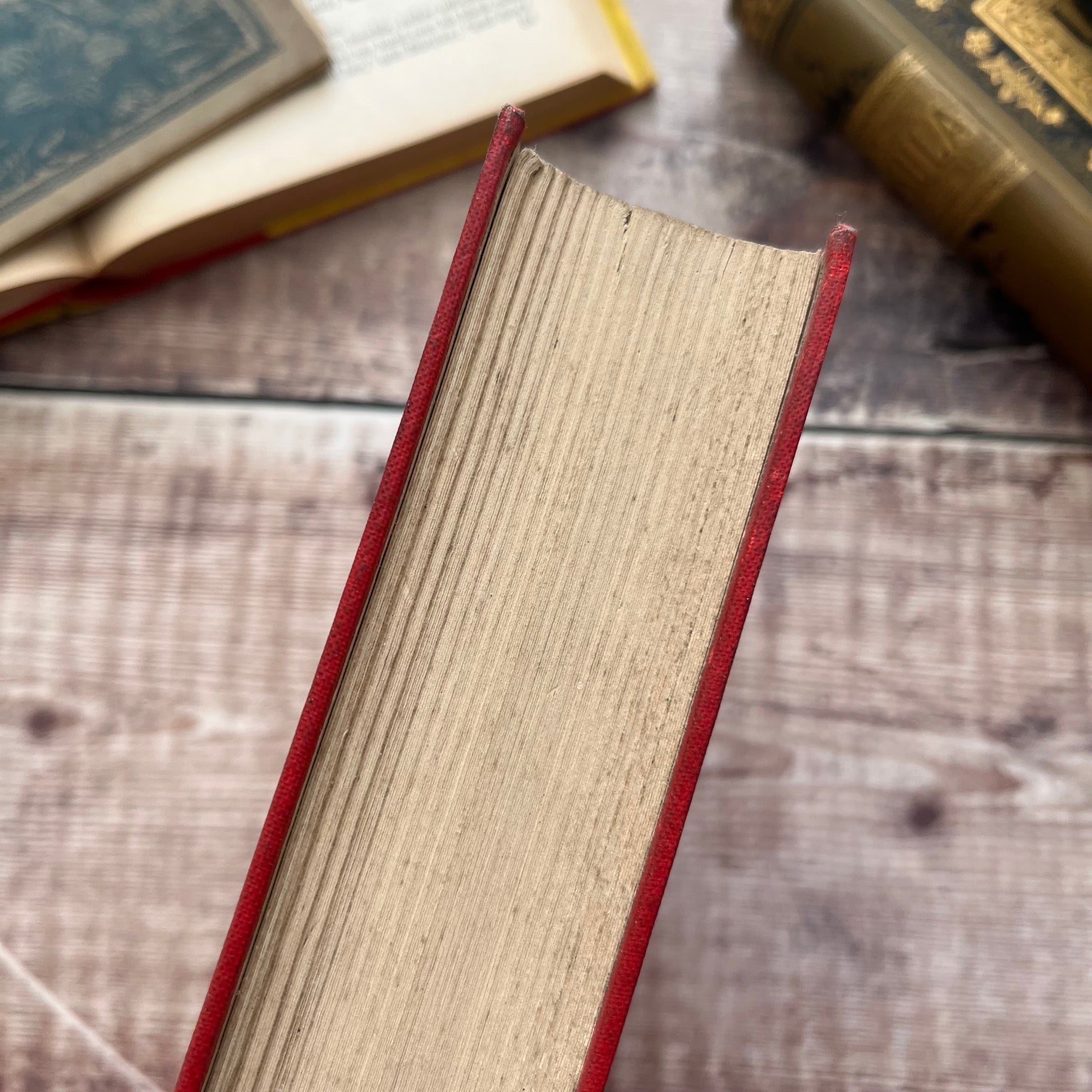 The book is bound in red cloth with beautiful rose decoration to the front board. It's a striking binding and in good condition, with the most noticeable wear being the sunning and marking to the spine. There is some discolouration to the back board and the text block edges show light foxing.