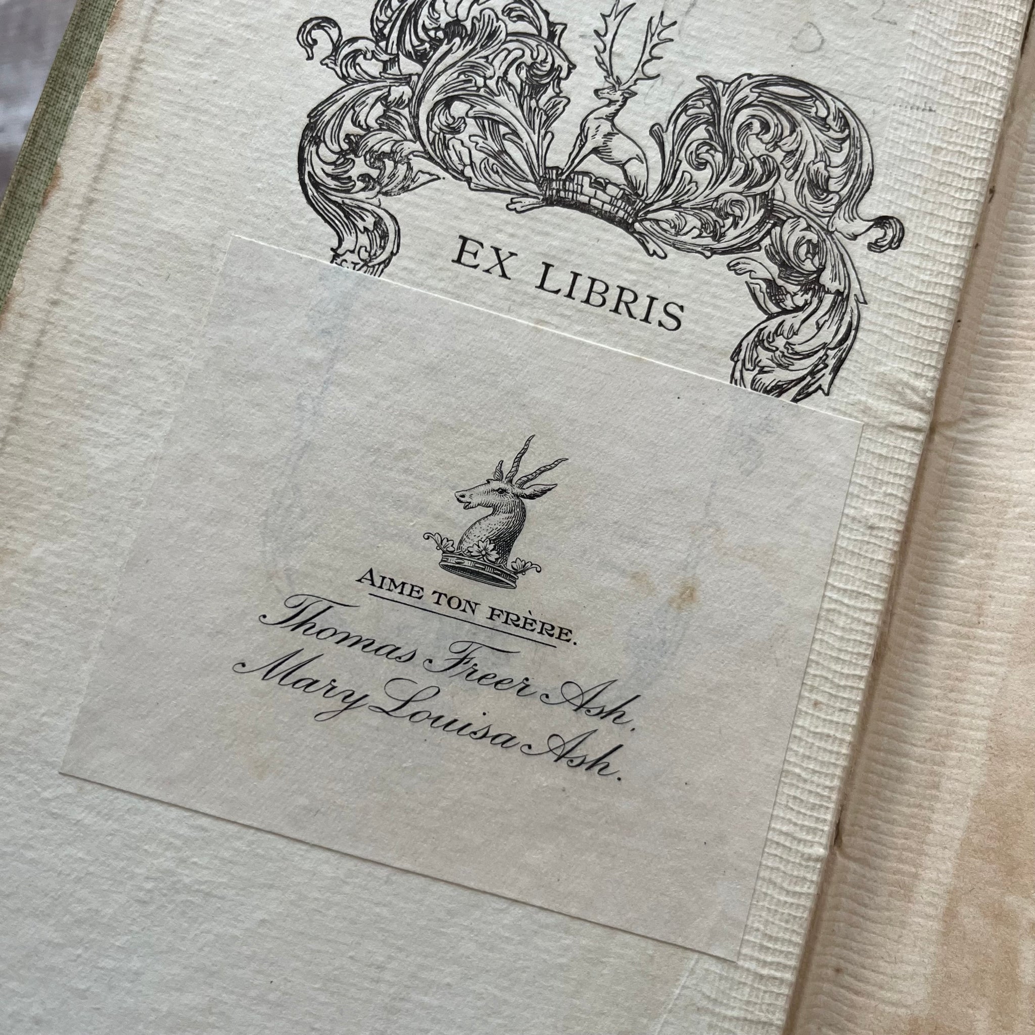 Inside, both volumes have a name plate glued to the front pastedown and the endpapers are tanned. The pages show age toning and sporadic foxing (most noticeable to the tissue guards, title pages and frontispieces). There are occasional marks and cracks to the gutters but the pages remain tightly bound. The books feature rough cut pages which is a lovely feature in old books. Each volume has three beautiful black and white illustration plates which make these a real treasure.