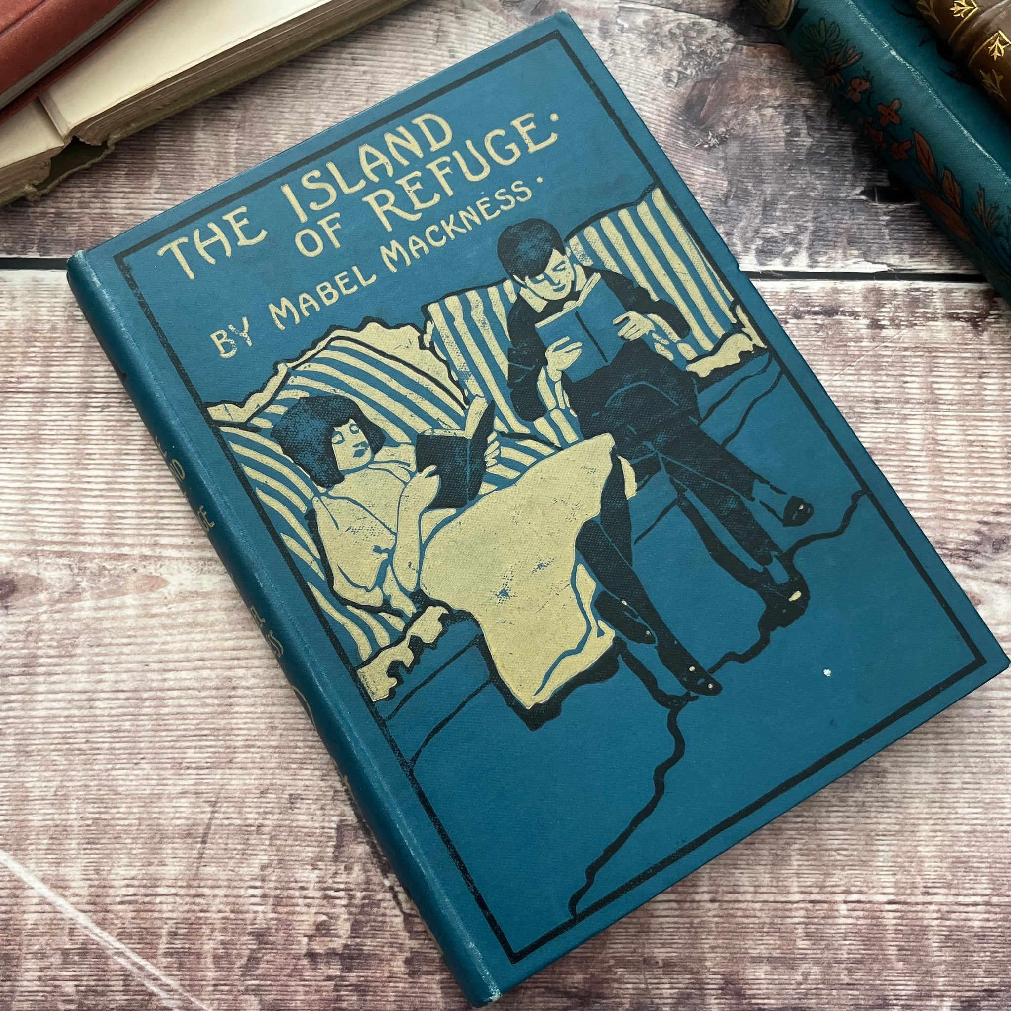This stunning edition of The Island of Refuge by Mabel Mackness was published by Blackie and Son. The book itself is undated but there is a presentation plate inside dated 1900. So the book is from the very end of the Victorian era.