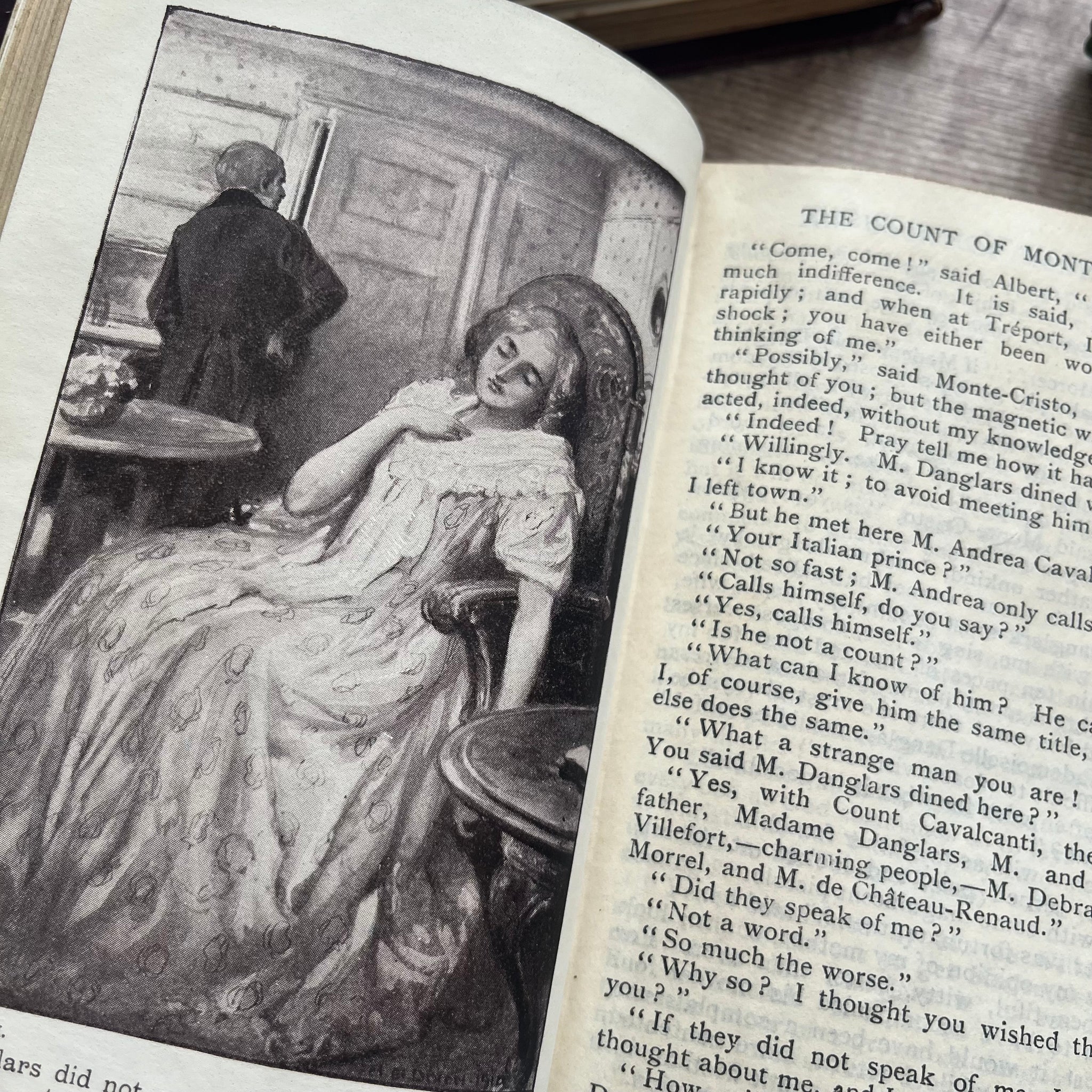 The books feature beautiful black and white illustration plates which make them an extra special read - despite their wear! It's hard to find Count of Monte Cristo in this binding so I'm pleased to offer these, despite the condition.