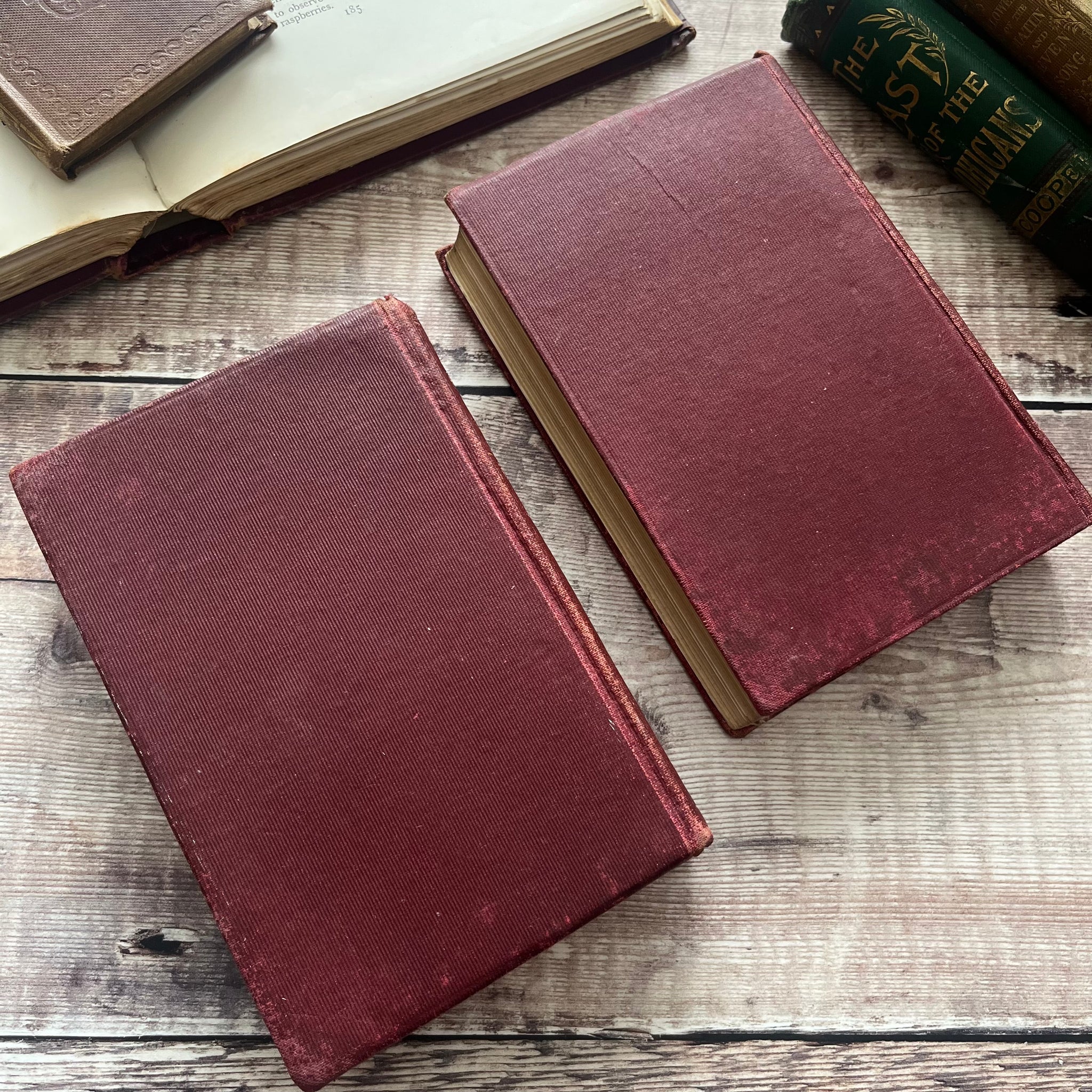 They're in good condition but there is mottled discolouration to the boards with some loss to the colour of the cloth. The corners show wear and light bumping, and there is also wear to the board edges. There is some rubbing to the spines, whilst crushing to the spine ends has caused some splitting in the cloth.