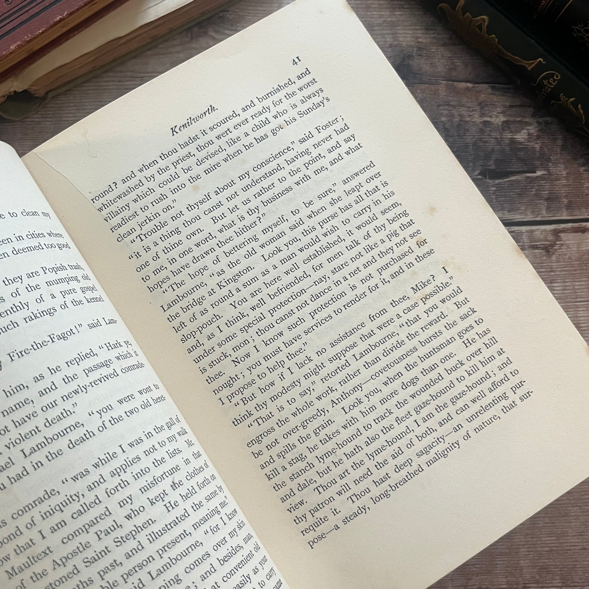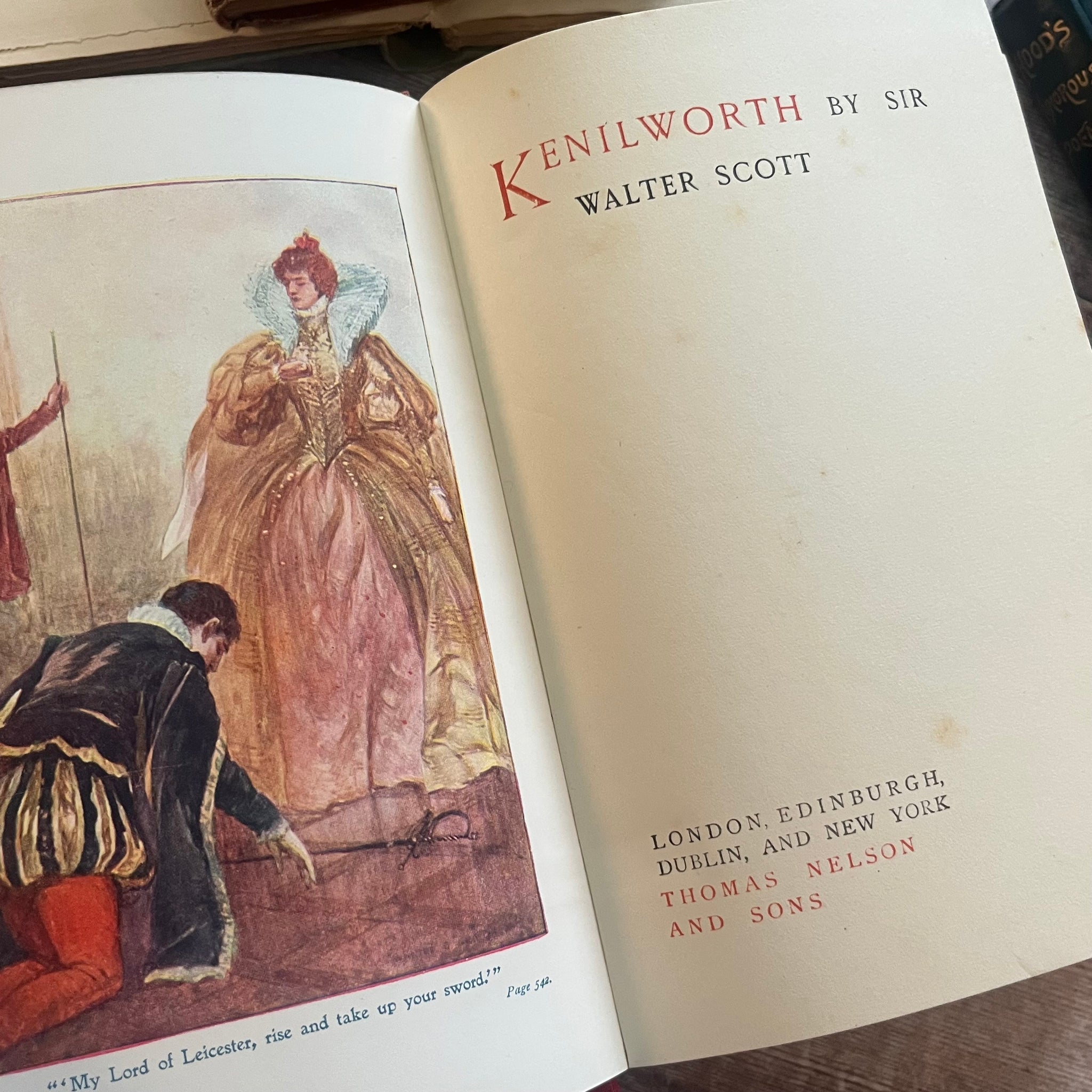 This stunning antique edition of Kenilworth by Sir Walter Scott was published by Thomas Nelson and Sons. The book itself is undated but I've seen these bindings with inscriptions and they usually date from the late Edwardian era - circa 1910.