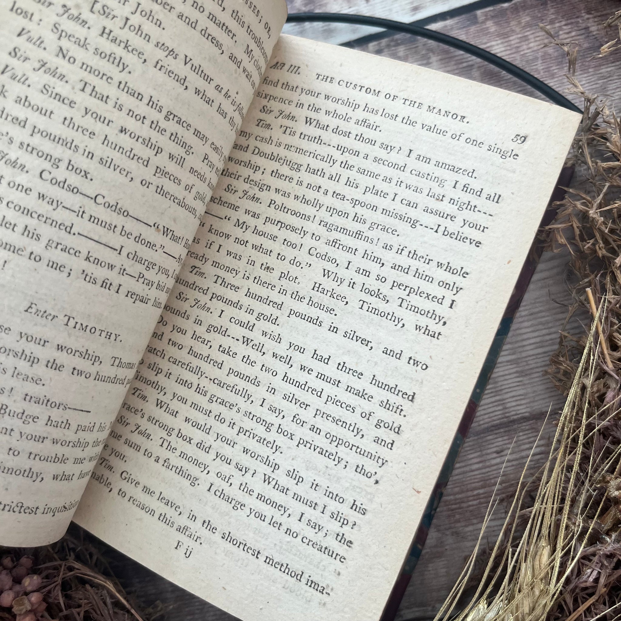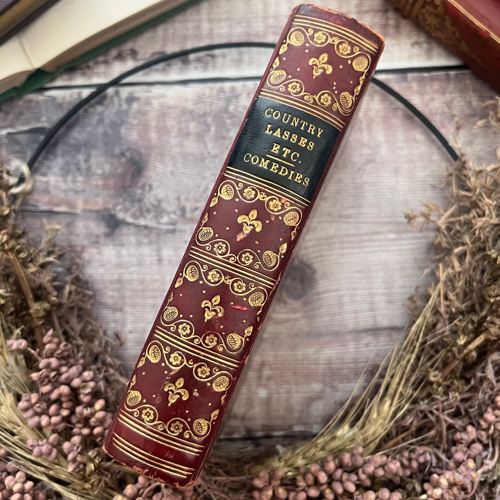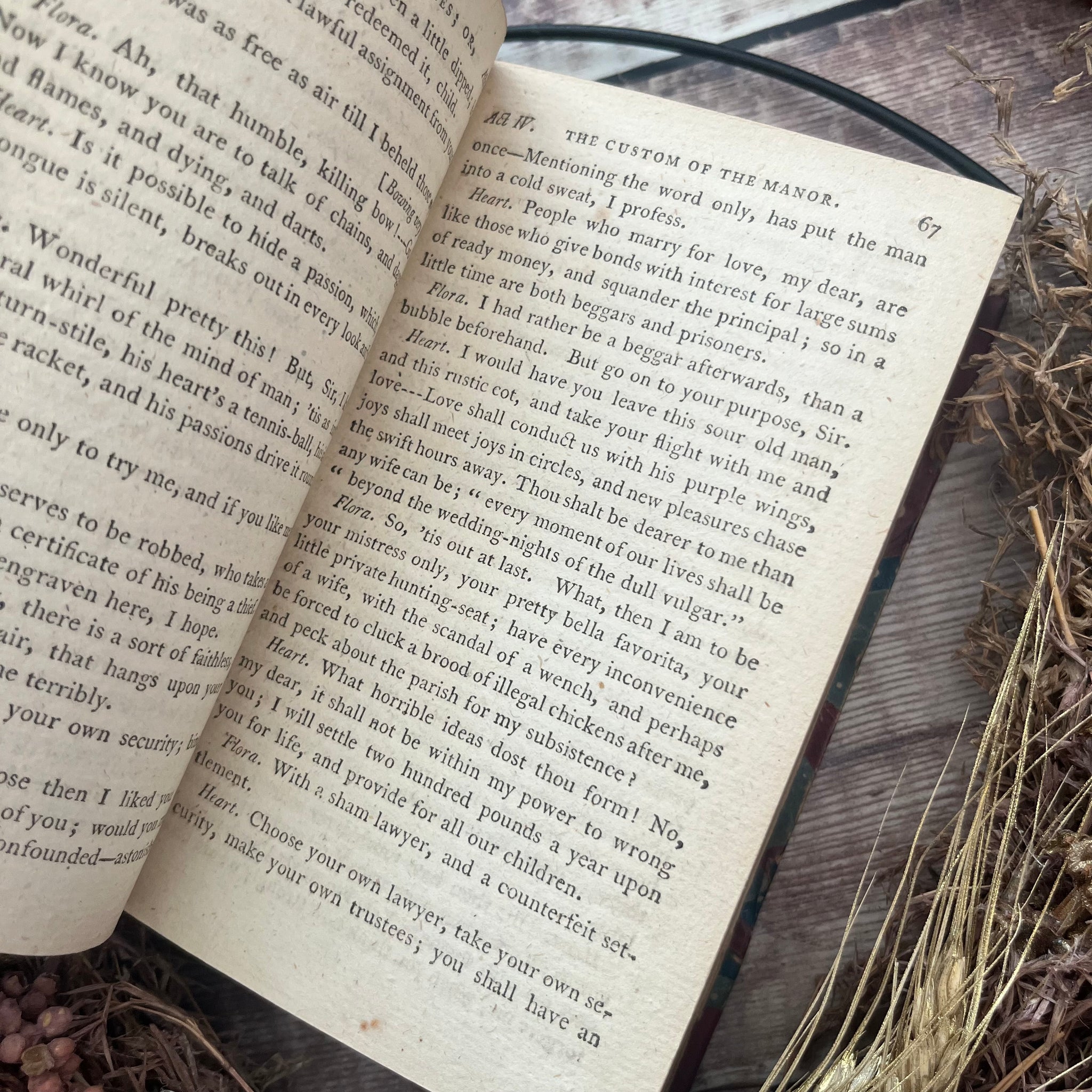 This absolutely stunning book contains several plays bound together as one (with differing dates of publication). The first is The Country Lasses; Or, The Custom of the Manor: A Comedy was adapted for Theatrical Representation, as Performed at the Theatre Royal in Covent Garden, London. It was written by Mr Charles Johnson and published in 1791 by John Bell. The book also features some other works, including The Gamesters by Shirley and Charles Johnson (1792) and Lovers Vows by Elizabeth Inchbald (a play mentioned in Austen's book Mansfield Park) and a few others - the latest is dated 1845.