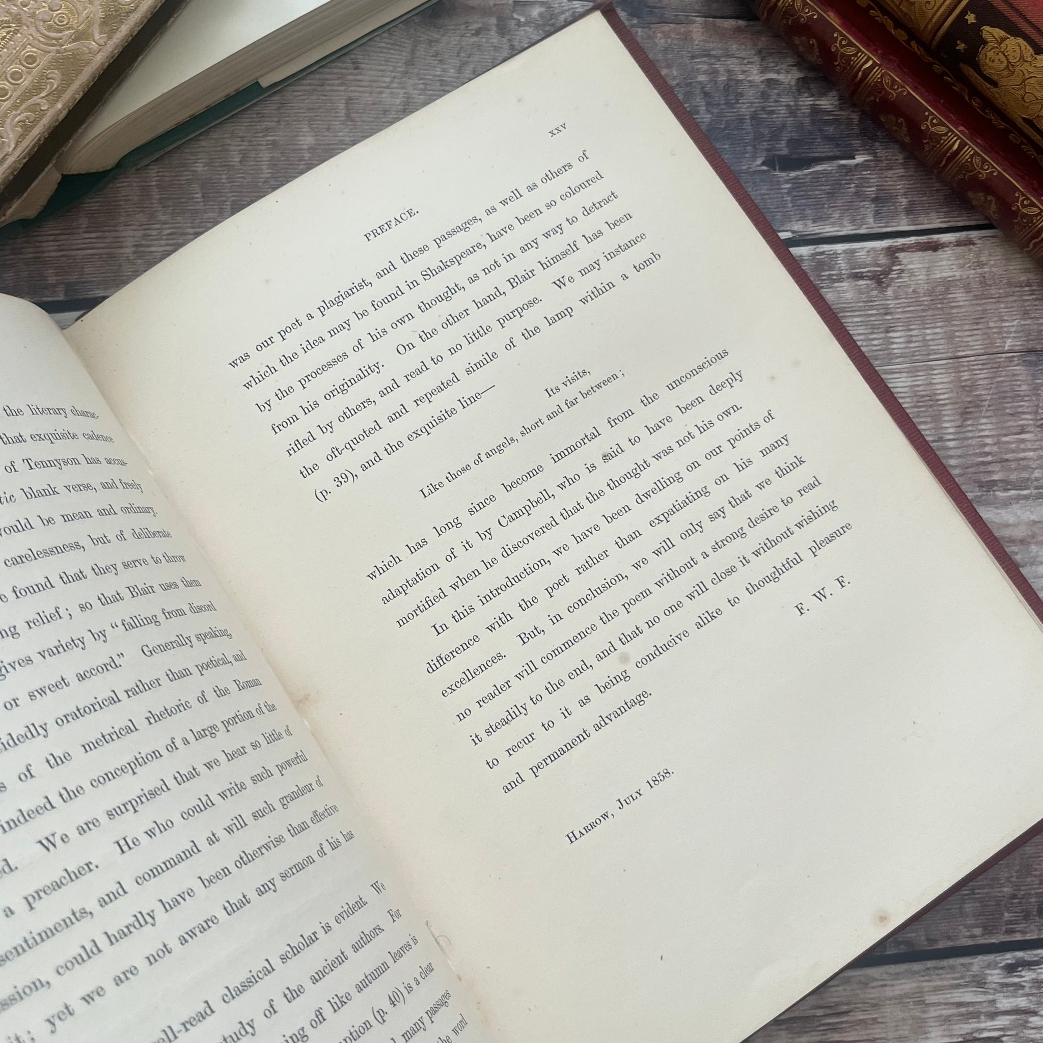 This lovely antiquarian edition of The Grave A Poem by Robert Blair was published by Adam and Charles Black in 1858. So the book is from the earlier part of the Victorian era.