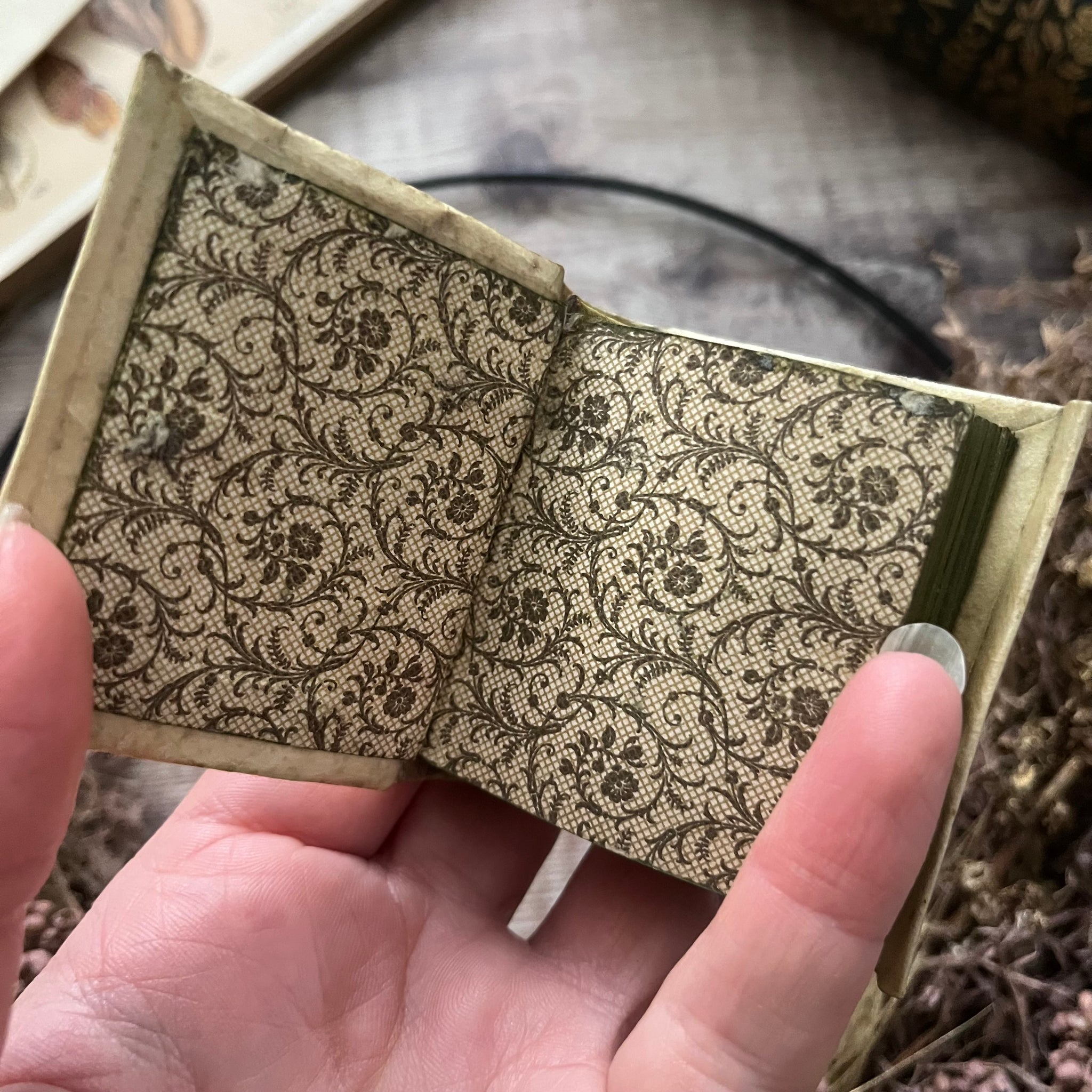 Inside, the endpapers have a floral pattern, illuminated in gilt. The pages show age toning throughout, with occasional marking but are in good antique condition.