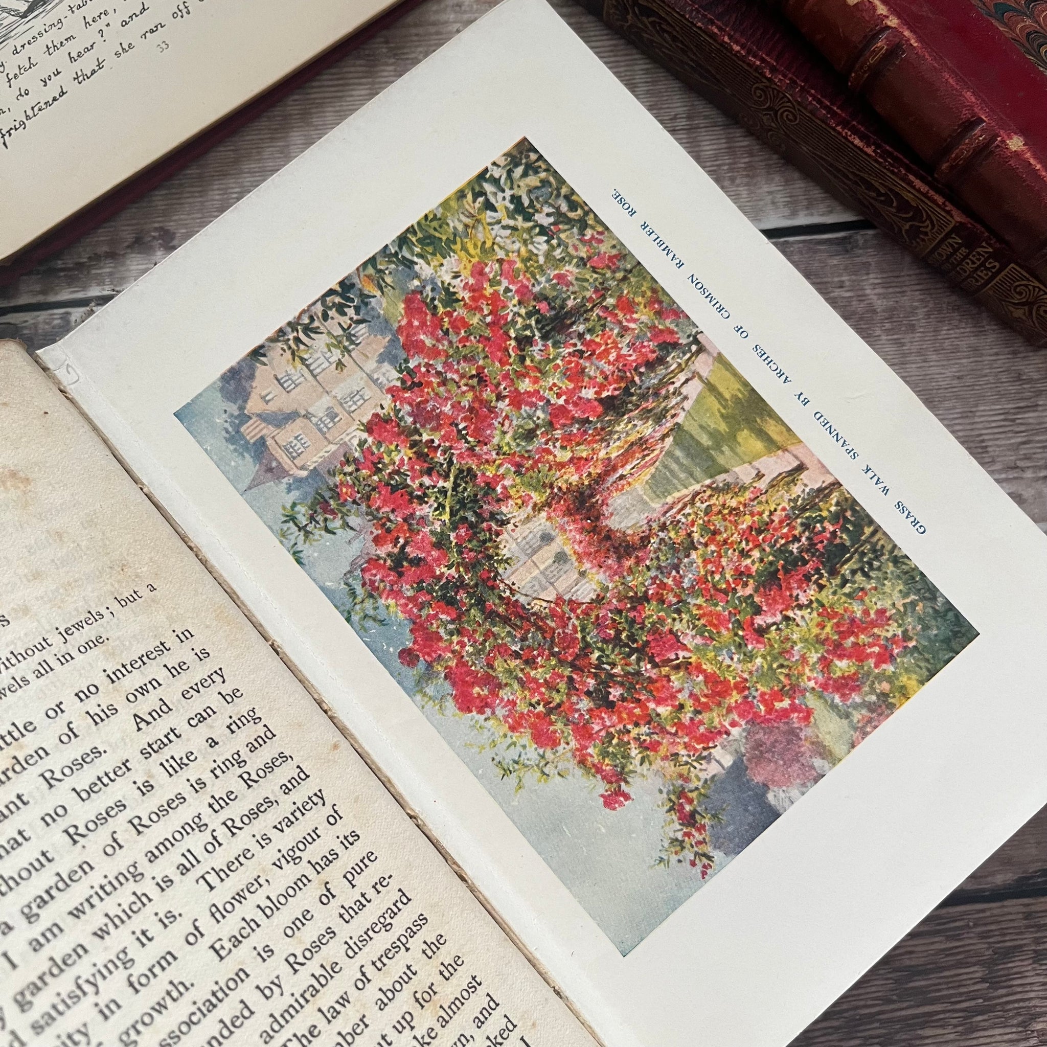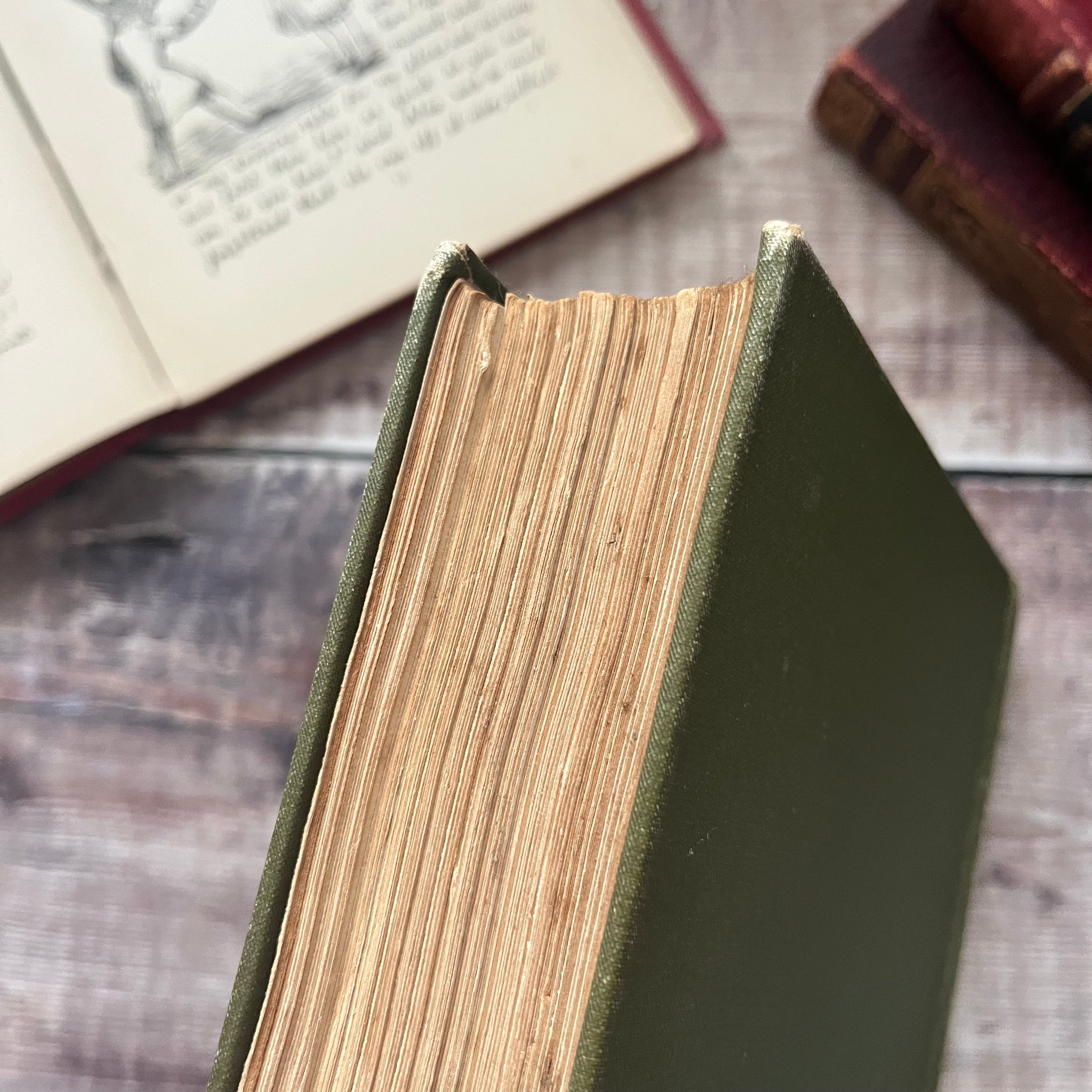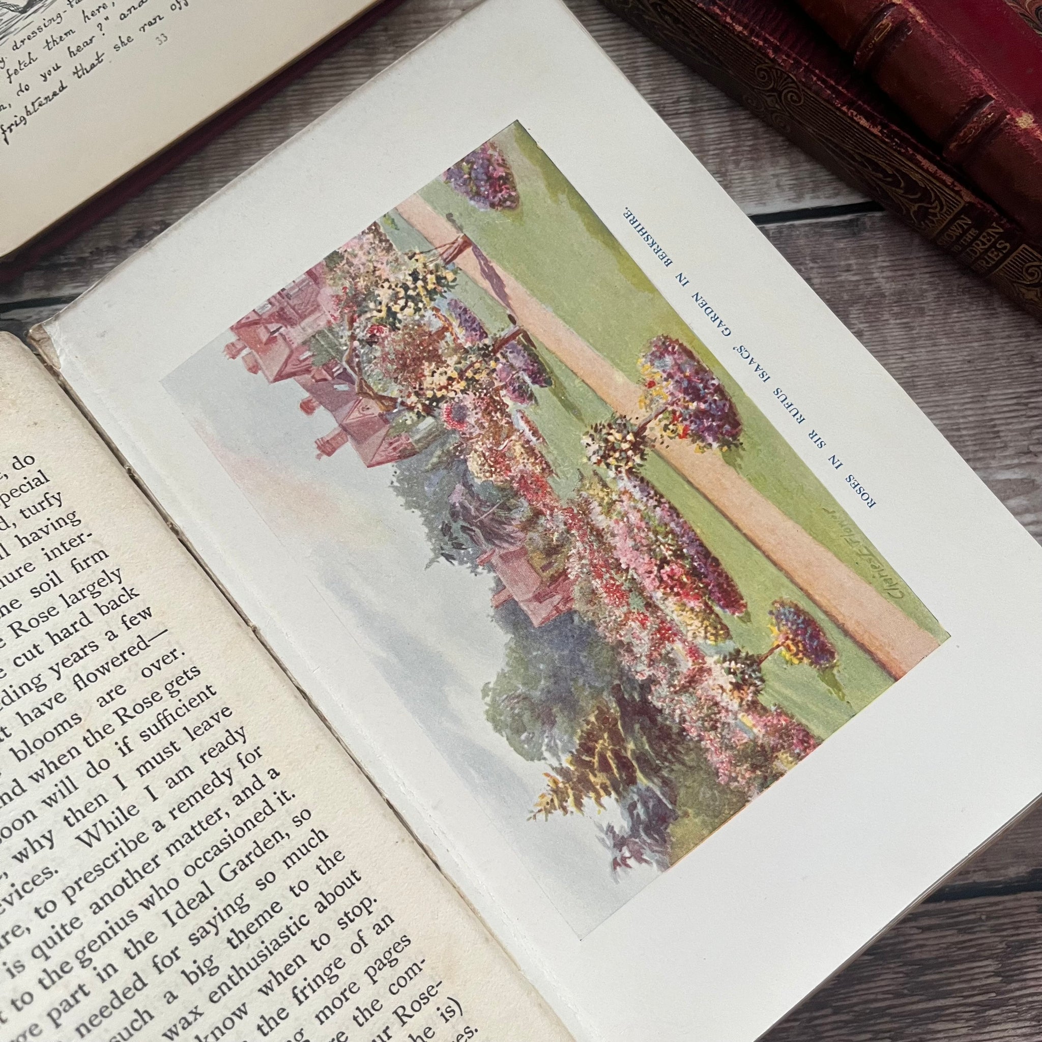 This beautiful second edition of The Ideal Garden by H.H.Thomas was published by Cassell and Company Ltd in 1910. This lovely vintage book is bound in green cloth with ornate decoration to the front board and spine. It's in good condition for it's age but there are a few condition points of note. There is light wear and crushing to the corners and foxing to the text block edges. There is light shelf wear to the board edges and some scuff marks to the back board. The spine is a bit sunned, with rubbing to the spine edges and crushing to the spine ends - this has caused splitting in the cloth at the spine ends.