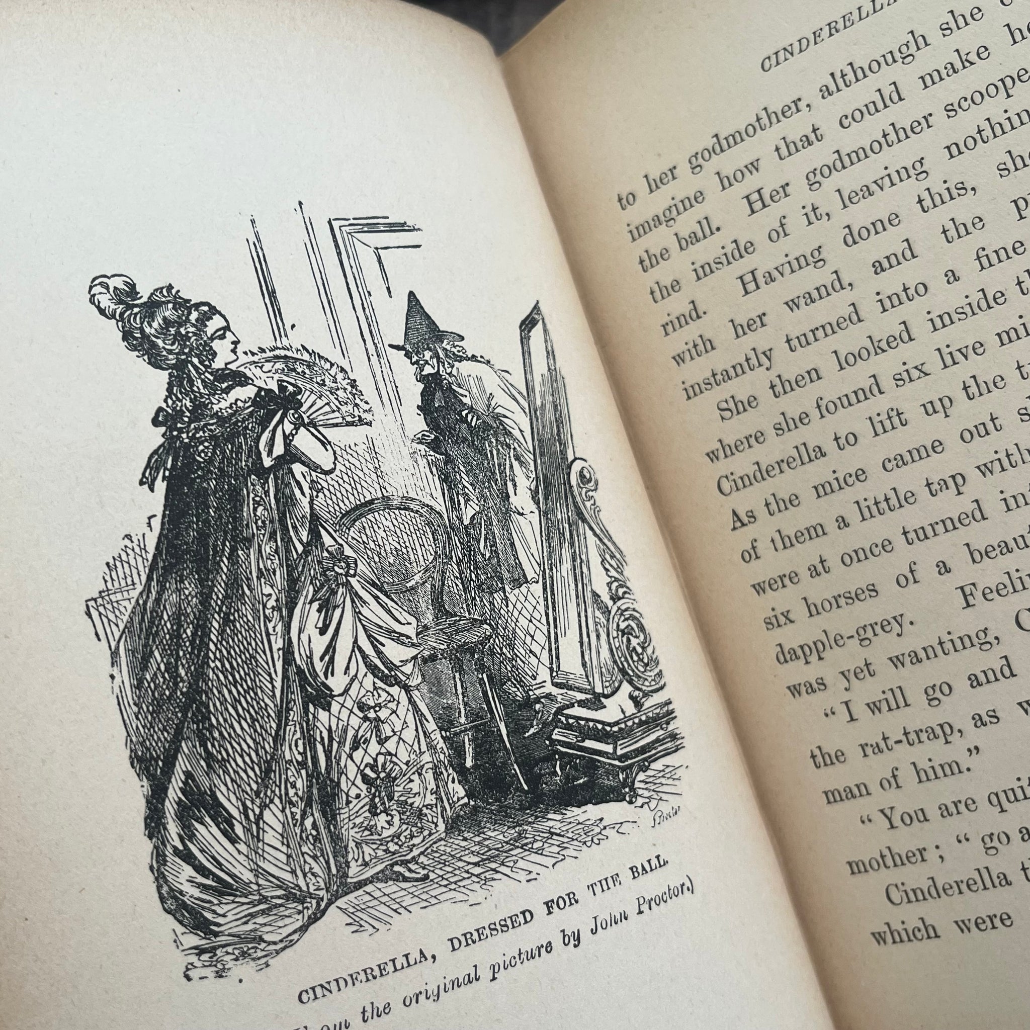 Inside, the endpapers are beautifully floral and the pages show age toning throughout. There are also some cracks to the gutter in places but the pages remain bound. There are numerous illustrations by different artists.