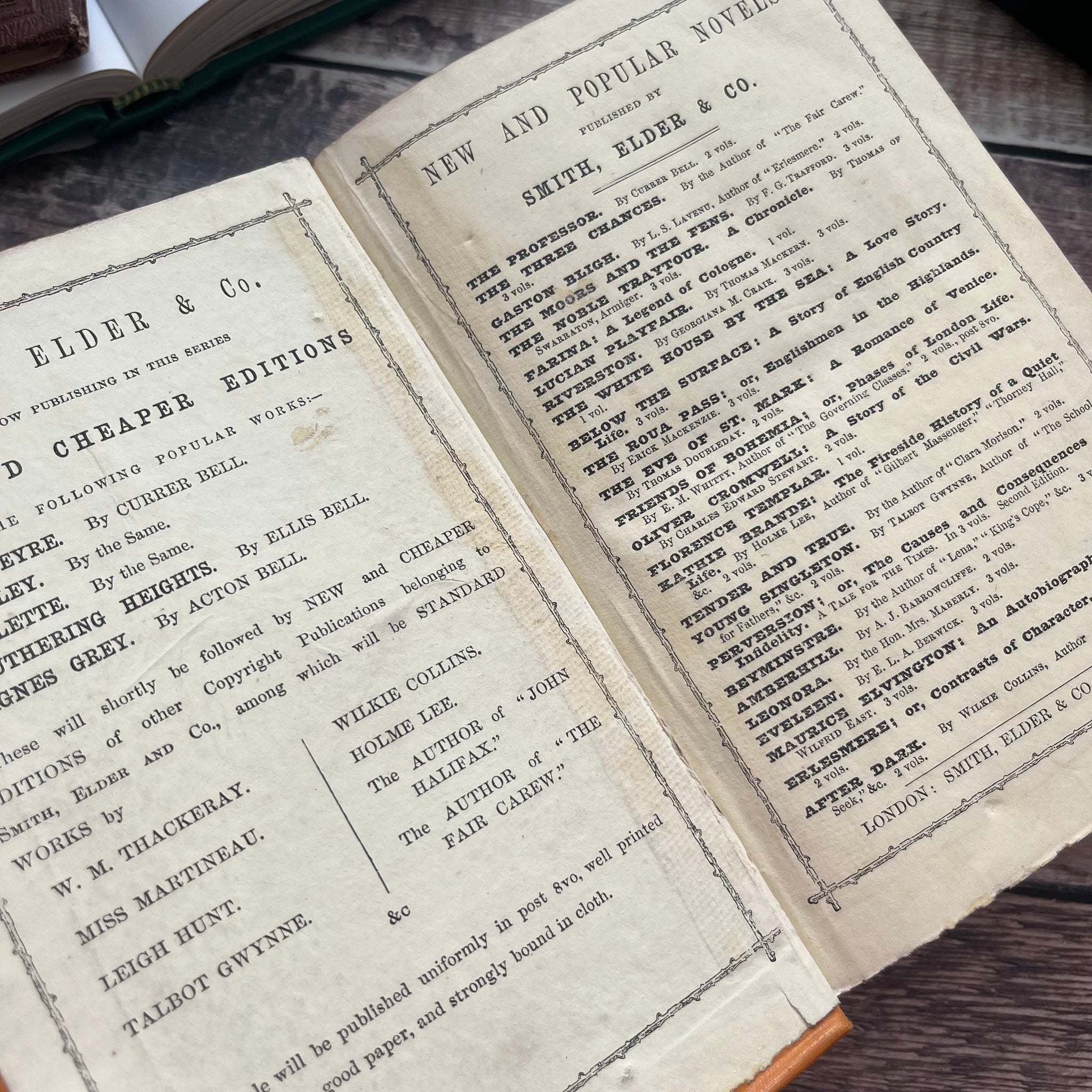 This beautiful antique edition of Shirley by Currer Bell (Charlotte Bronte) was published by Smith, Elder and Co is 1857. This is just 8 years after the first edition and 2 years after the death of Charlotte Bronte. The book is bound in original orange cloth.