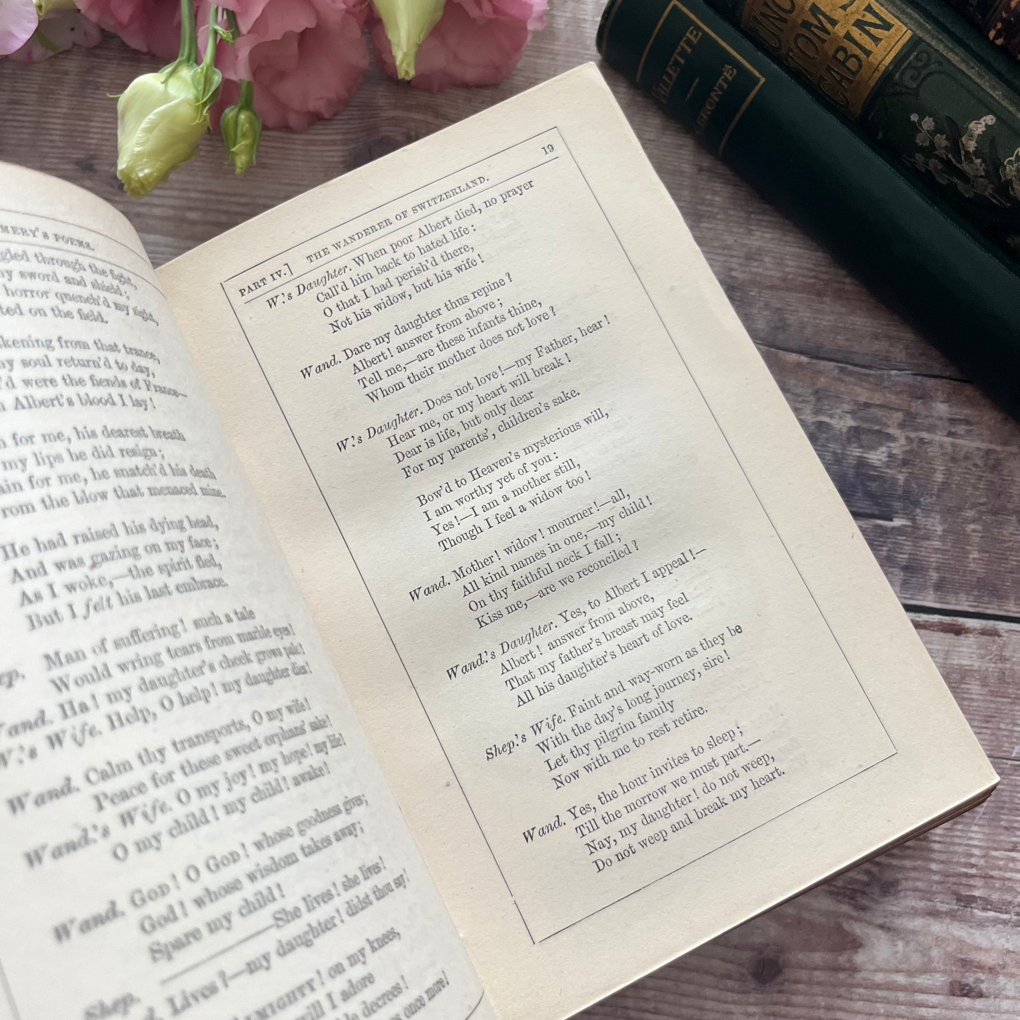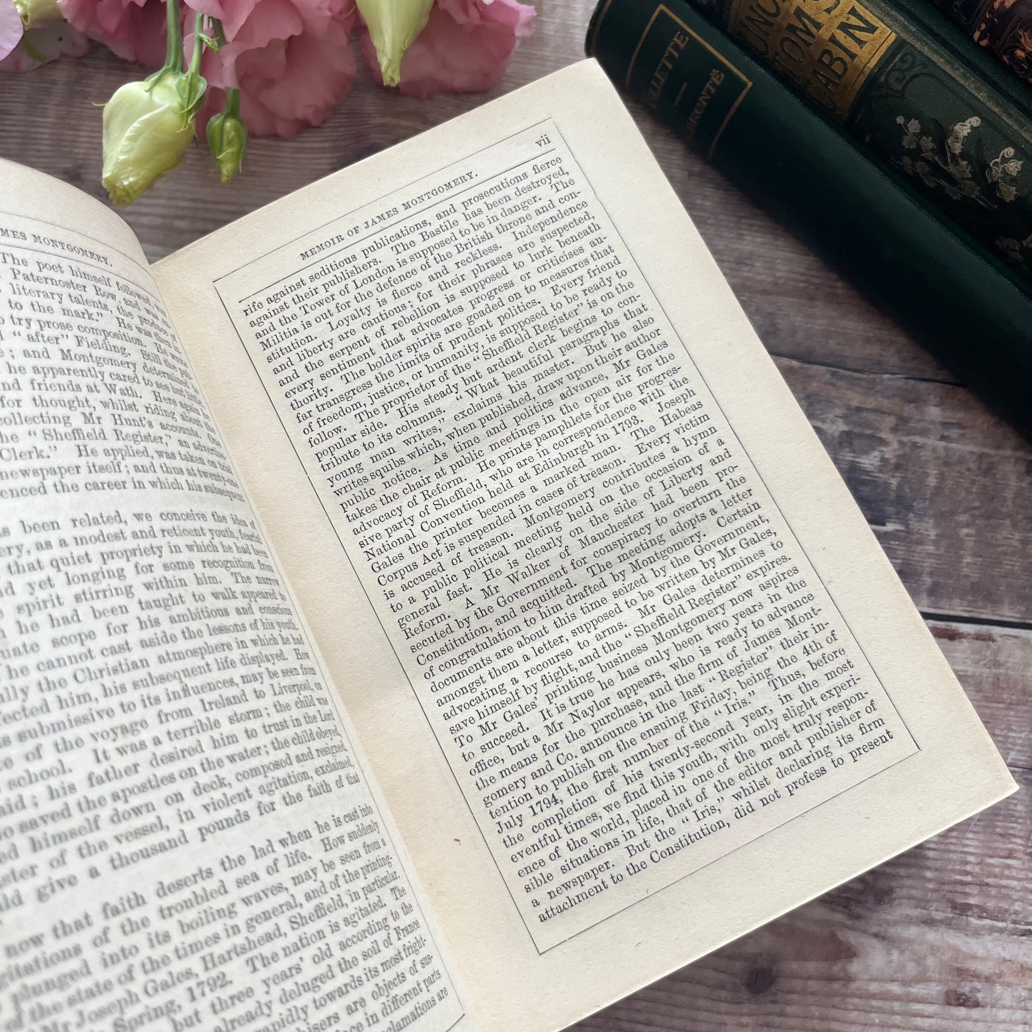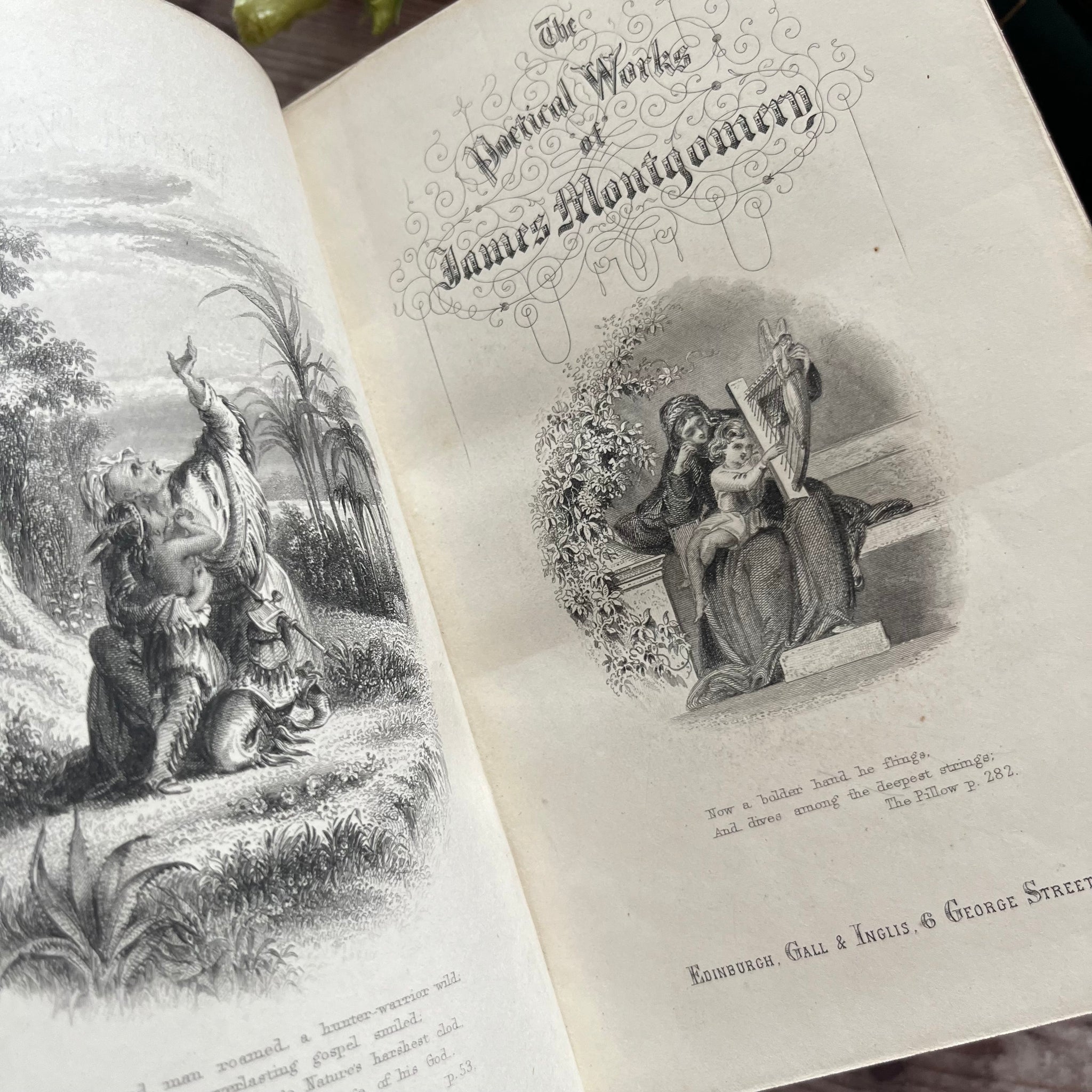 This beautiful antique edition of The Poetical Works of James Montgomery was published by Gall and Inglis. The book itself is undated but I'd estimate it to be from the mid Victorian era (circa 1870).