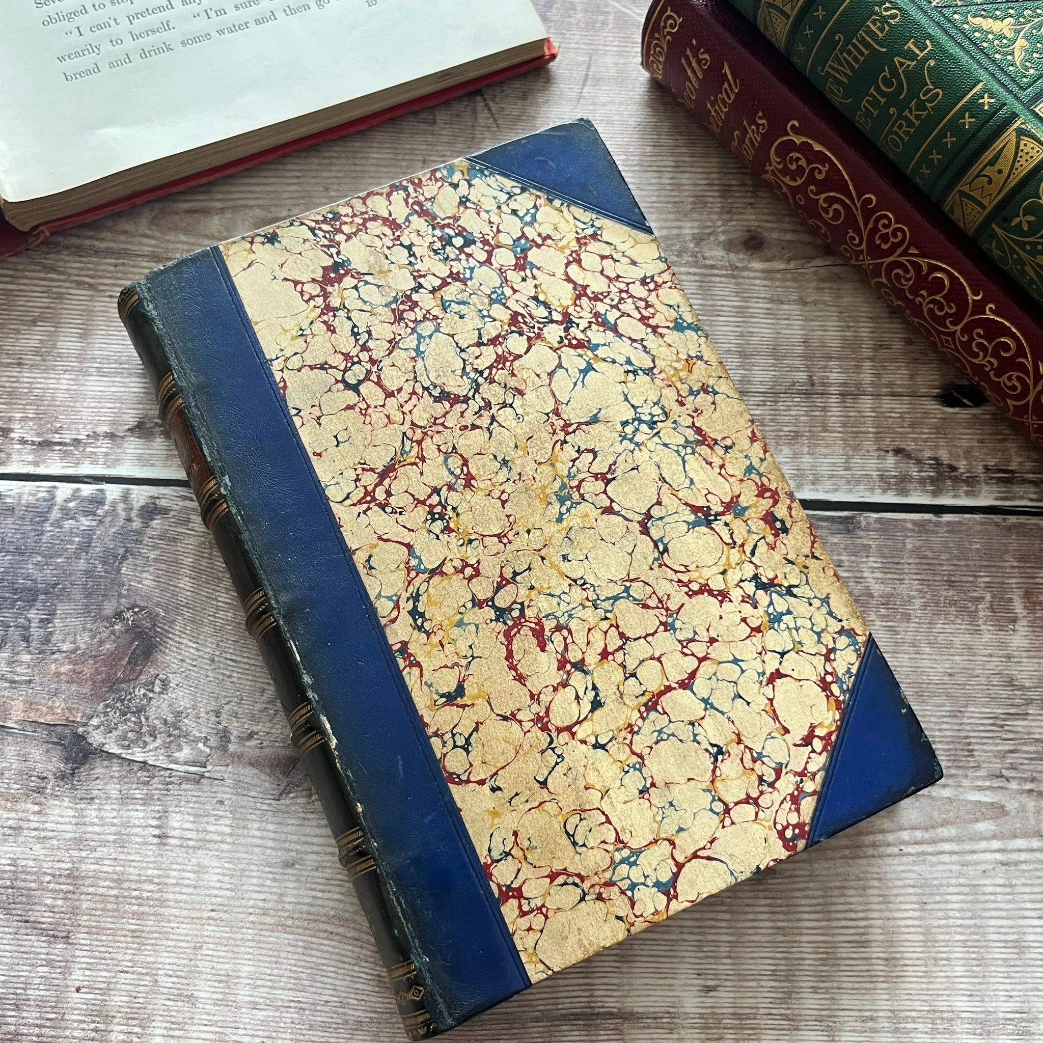 Inside, the pages show some age toning and occasional foxing but the text is clear and bright. The endpapers are beautifully marbled to compliment the boards.