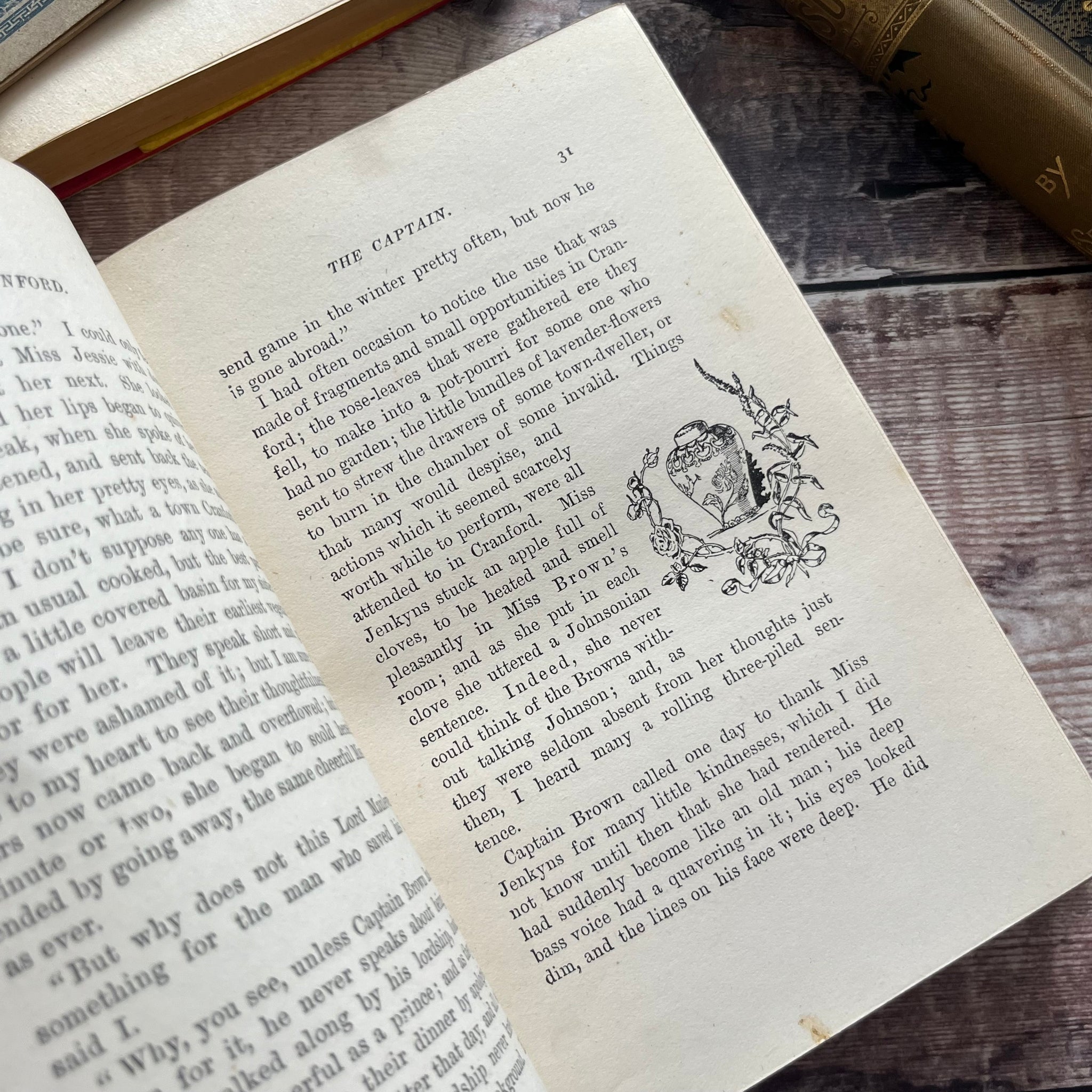 This beautiful vintage edition of Cranford by Mrs Elizabeth Gaskell  was published by The Walter Scott Publishing Company Ltd. The book isn't dated but there is a name and date written inside of 1902. So the book is either from the end of the Victorian era or the start of the Edwardian era!