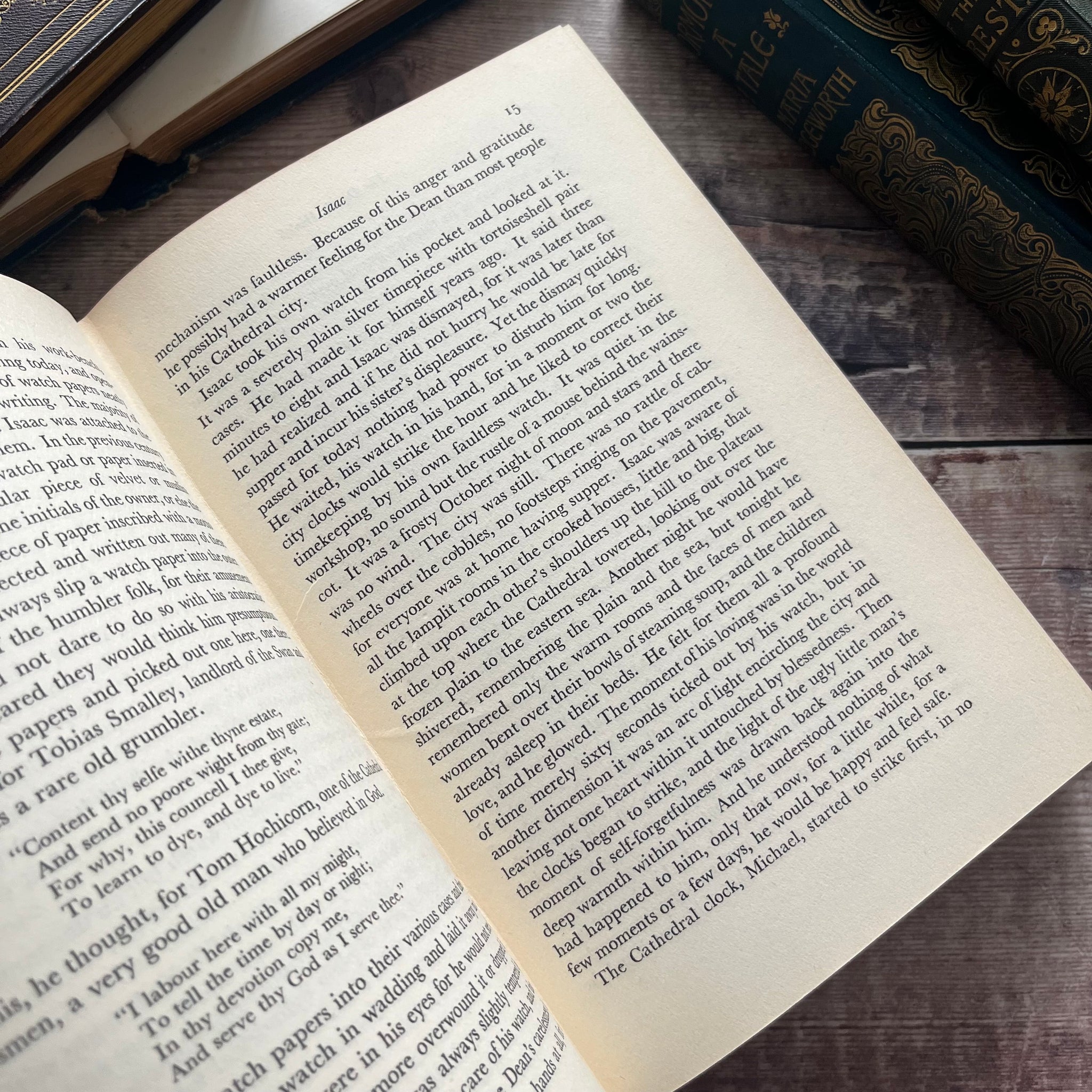 This lovely first edition of The Dean's Watch by Elizabeth Goudge was published in 1960 by Hodder and Stoughton. The book still has it's original dust jacket which is protected by clear plastic.