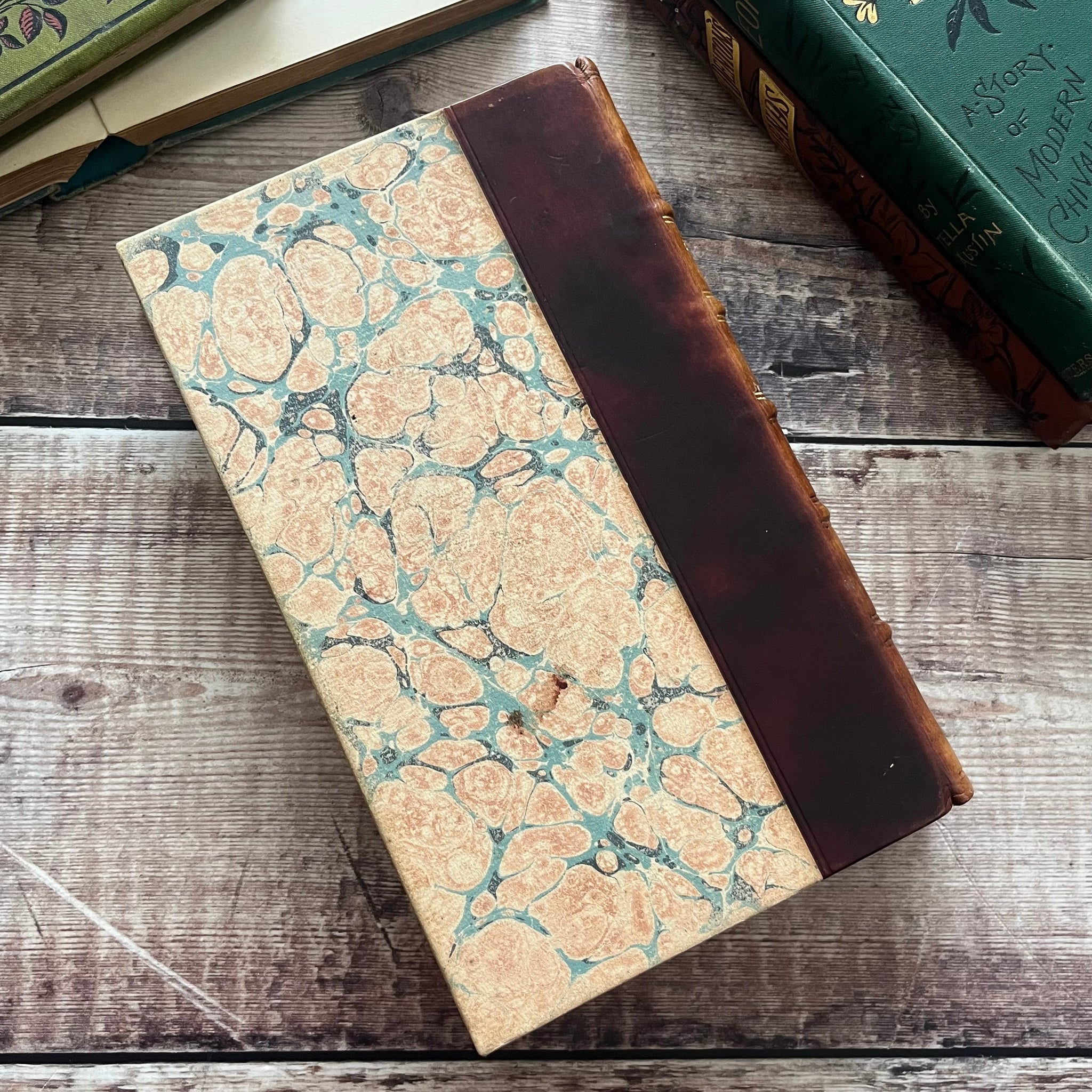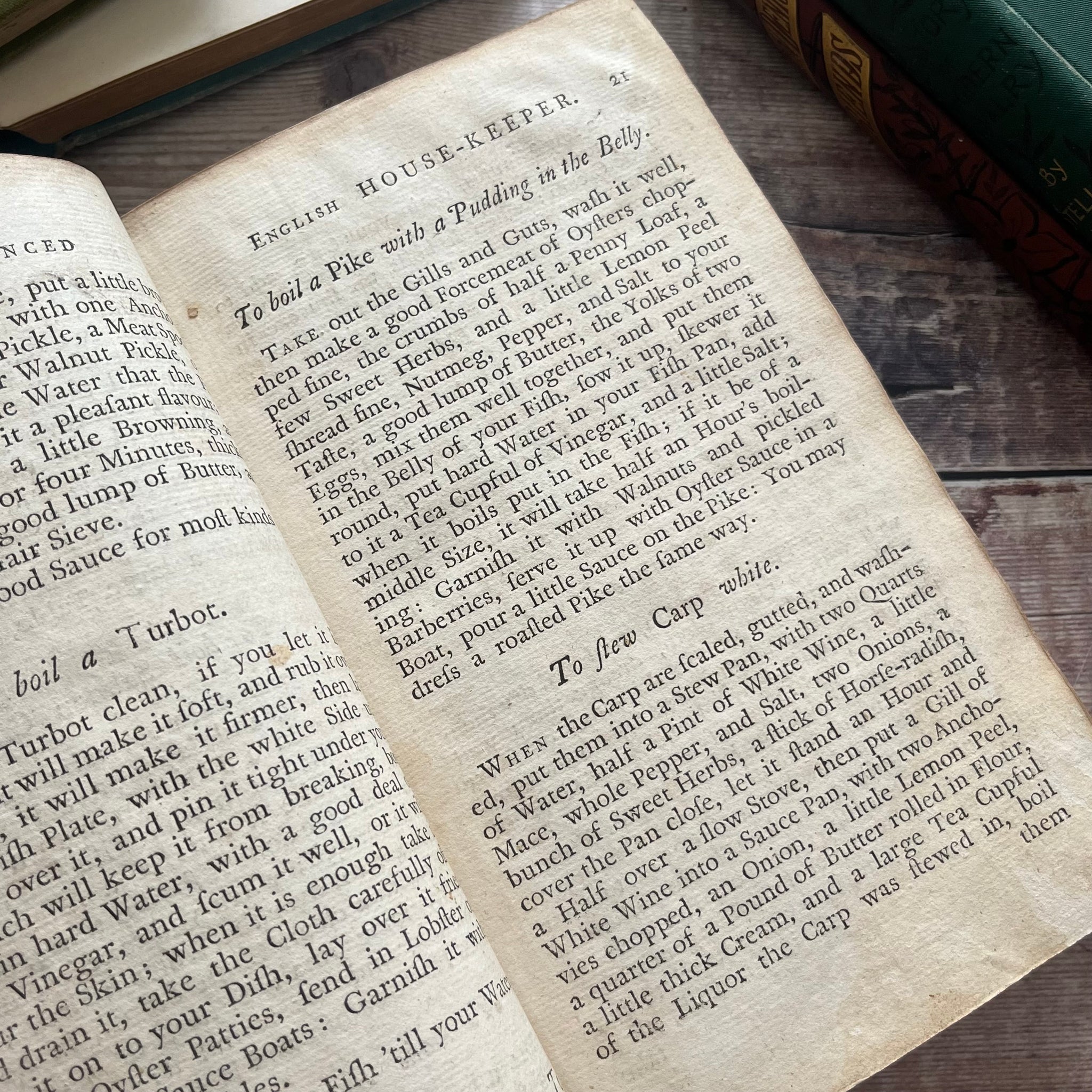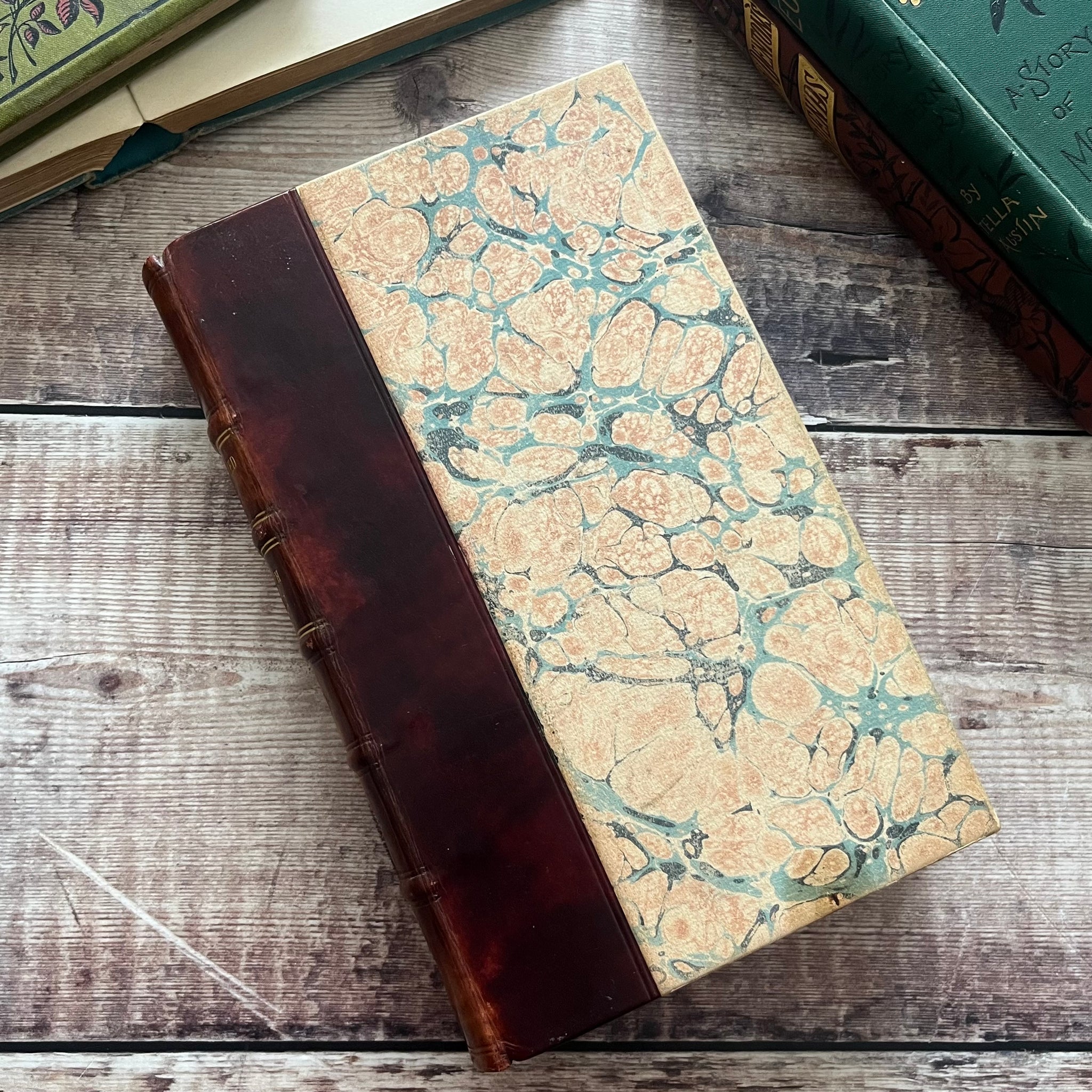 This stunning First Edition of The Experienced English Housekeeper By Elizabeth Raffald was published by J Harrap in 1769. So the book is from the Georgian era and published 6 years before the birth of Jane Austen. The binding is later than this however, and features a contemporary quarter leather binding and marbled boards. There are five raised bands to the spine and tooled detail.