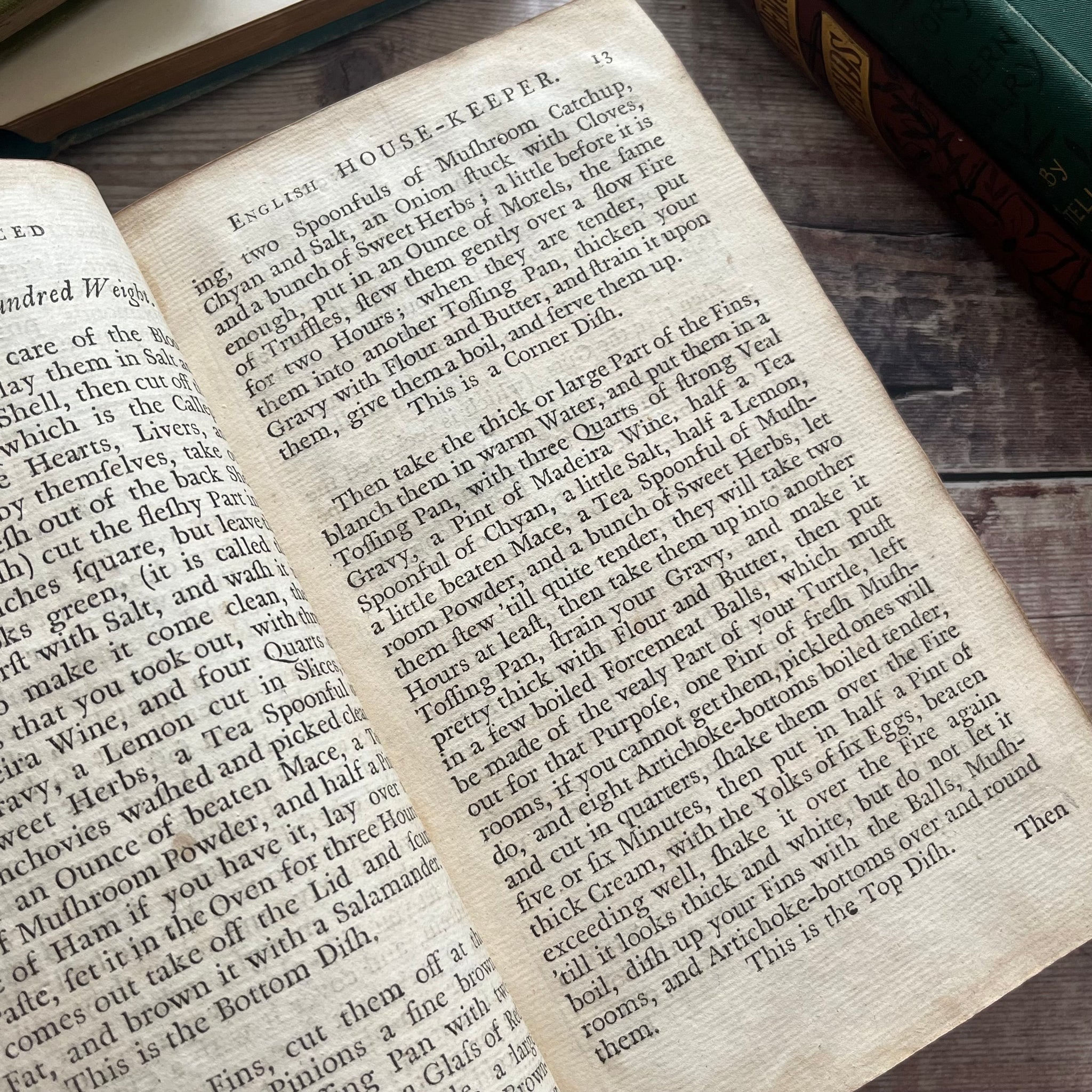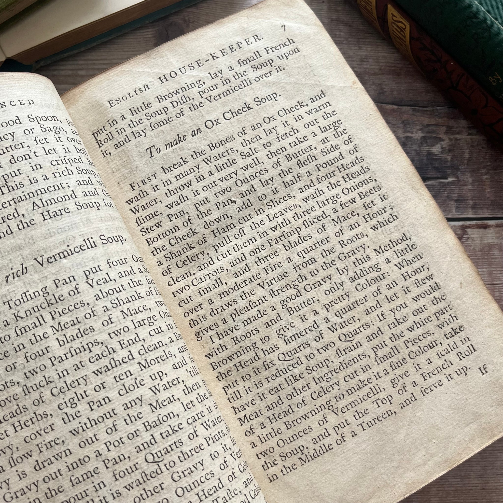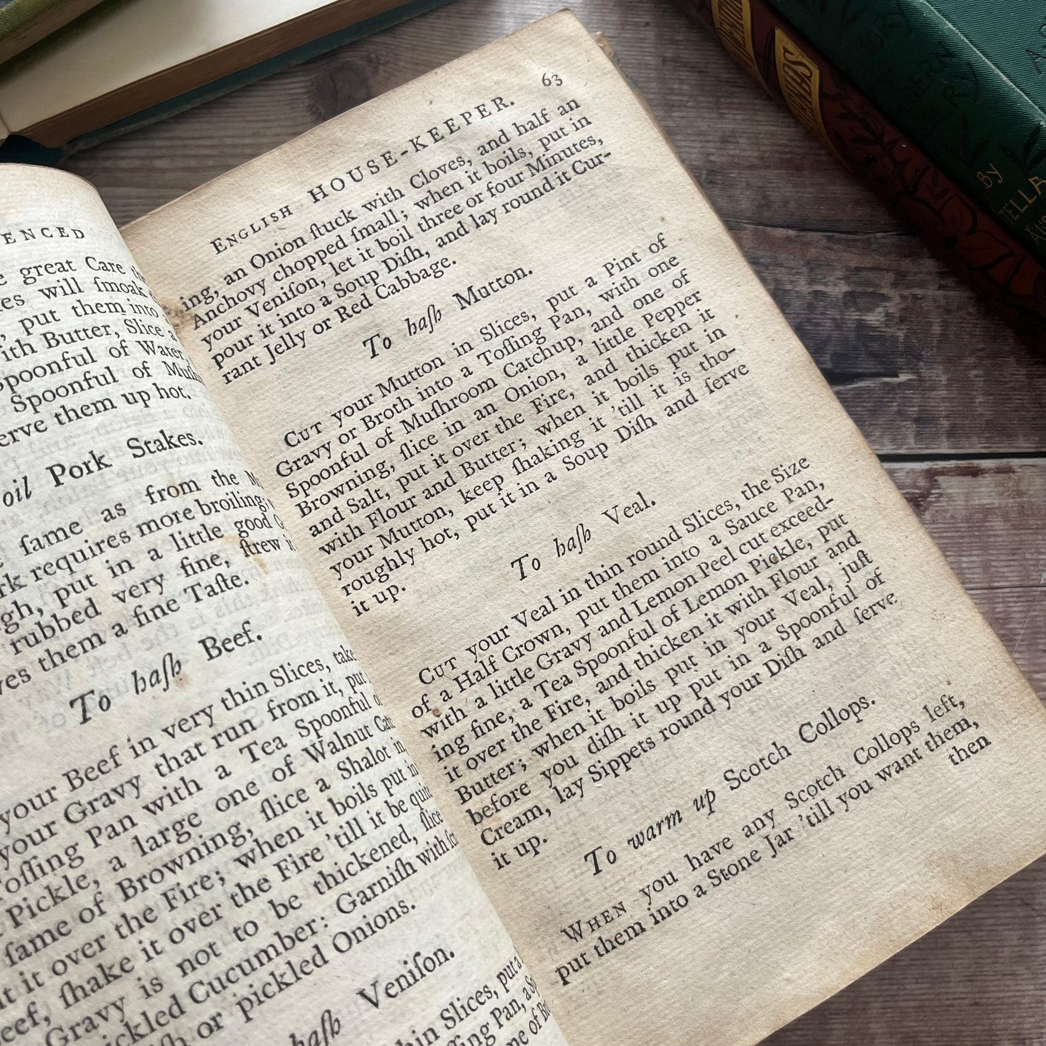 This stunning First Edition of The Experienced English Housekeeper By Elizabeth Raffald was published by J Harrap in 1769. So the book is from the Georgian era and published 6 years before the birth of Jane Austen. The binding is later than this however, and features a contemporary quarter leather binding and marbled boards. There are five raised bands to the spine and tooled detail.