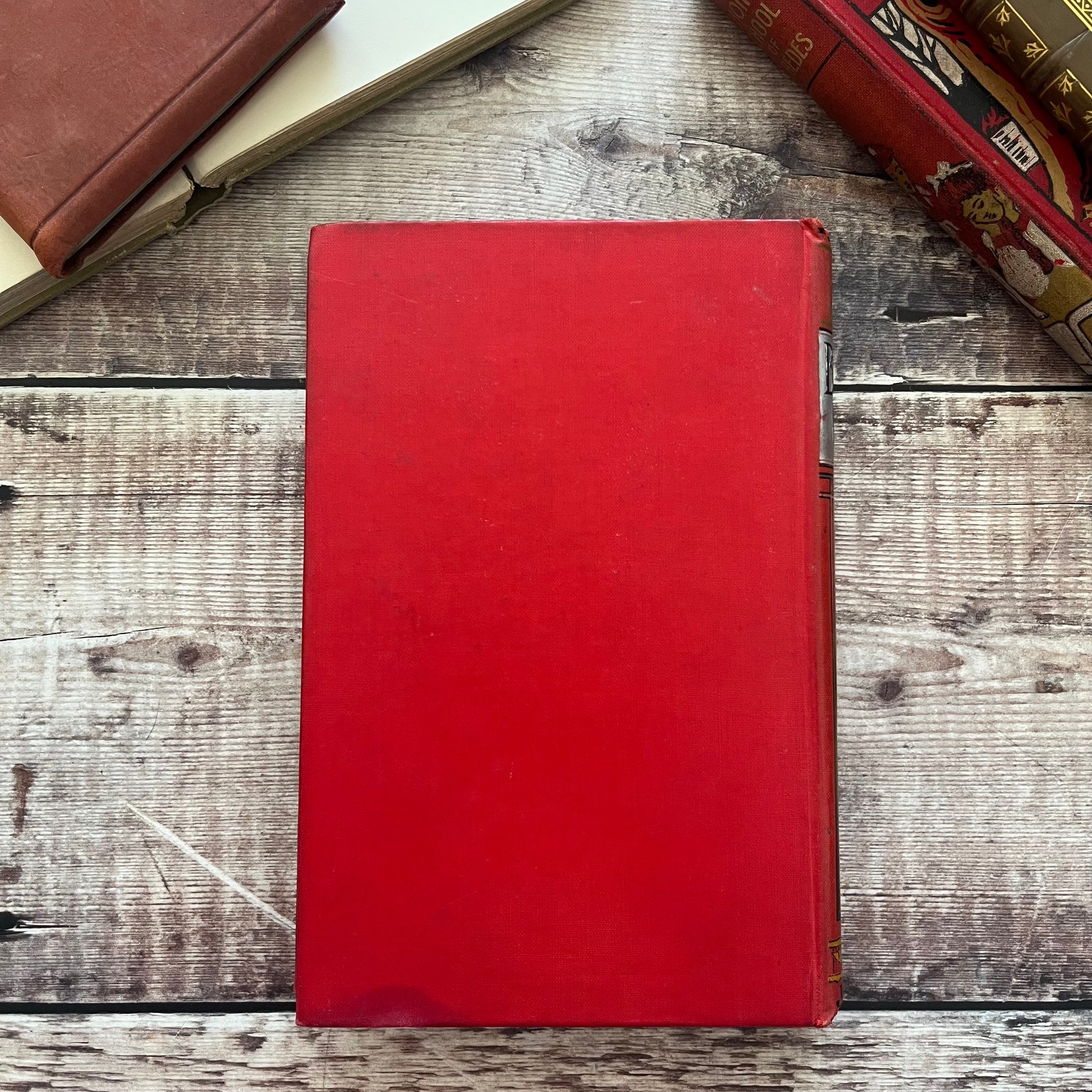 The book is bound in red cloth with pictorial decoration and gilt to the front board and spine. It's in very good condition with just light wear to the corners and staining around the edges of the boards. The back board shows minor marks and scuffs and there is sunning to the spine, with crushing to the spine ends.