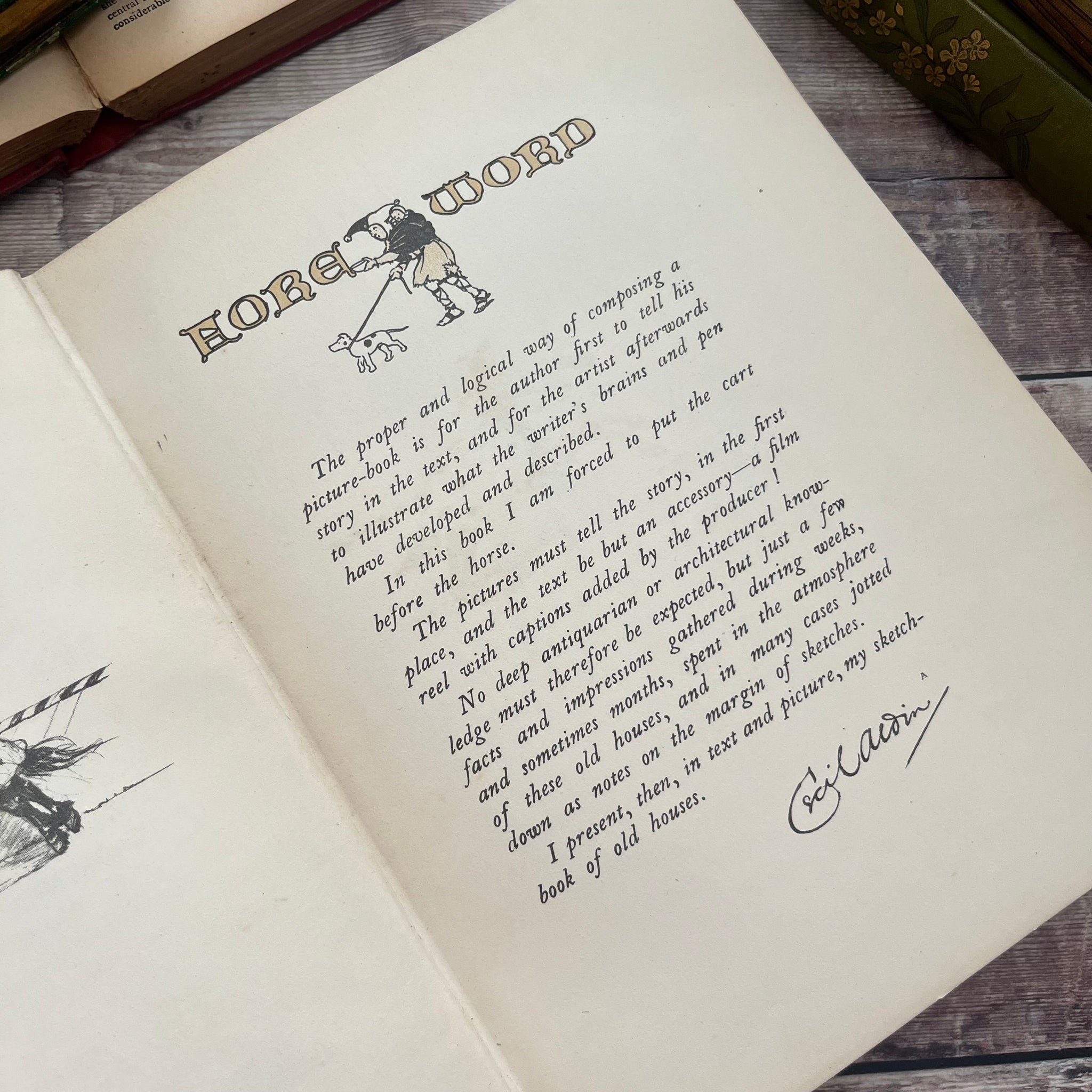This stunning First Edition of Old Manor Houses by Cecil Aldin was published by William Heinemann, London in 1923. It's bound in original publisher's cloth with gilt decoration to the front board and spine.