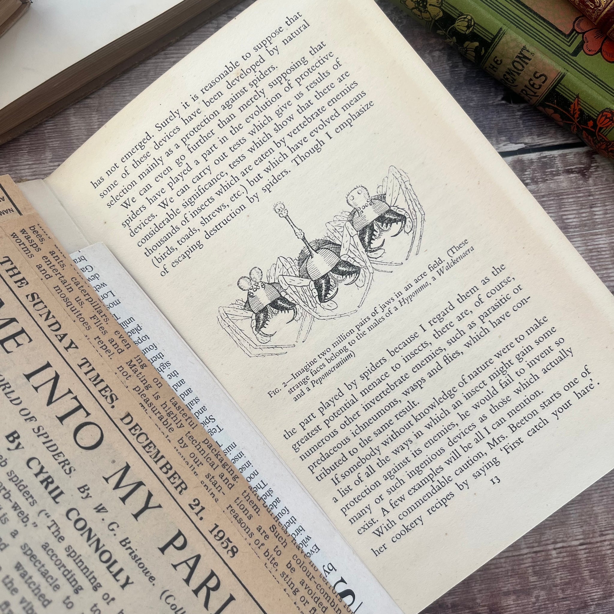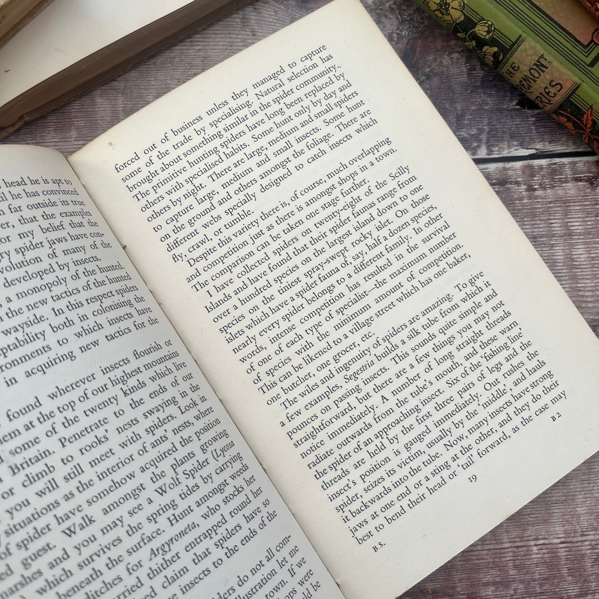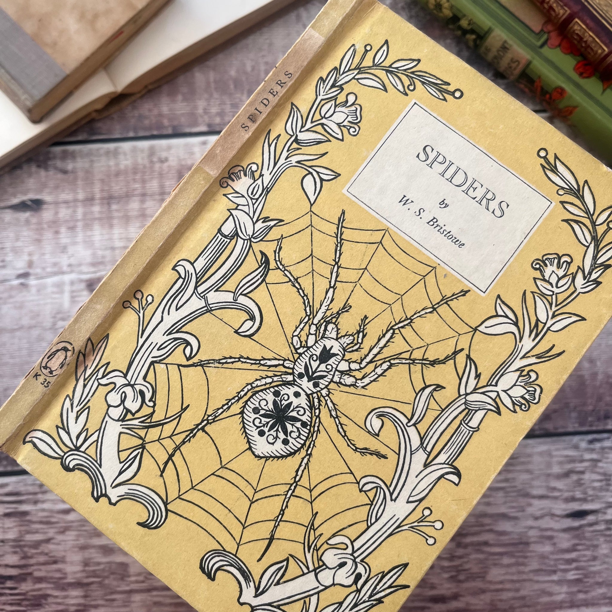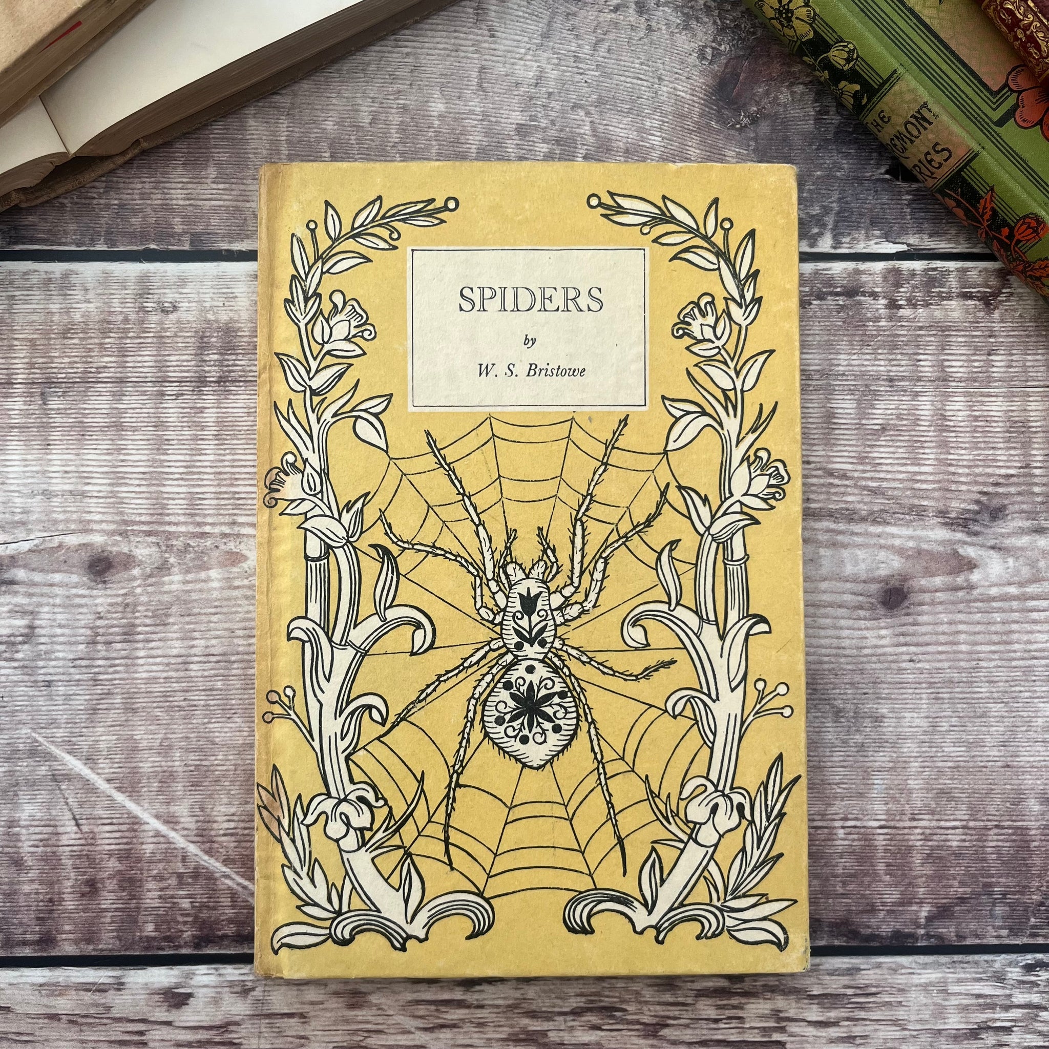 This lovely, well preserved first edition of Spiders by W S Bistowe was published in 1947 by King Penguin Books. Sadly it doesn't have a dust jacket. It's in good condition, but there is light soiling and marking to the paper covered boards. The spine is sunned, with splitting to the back joint.