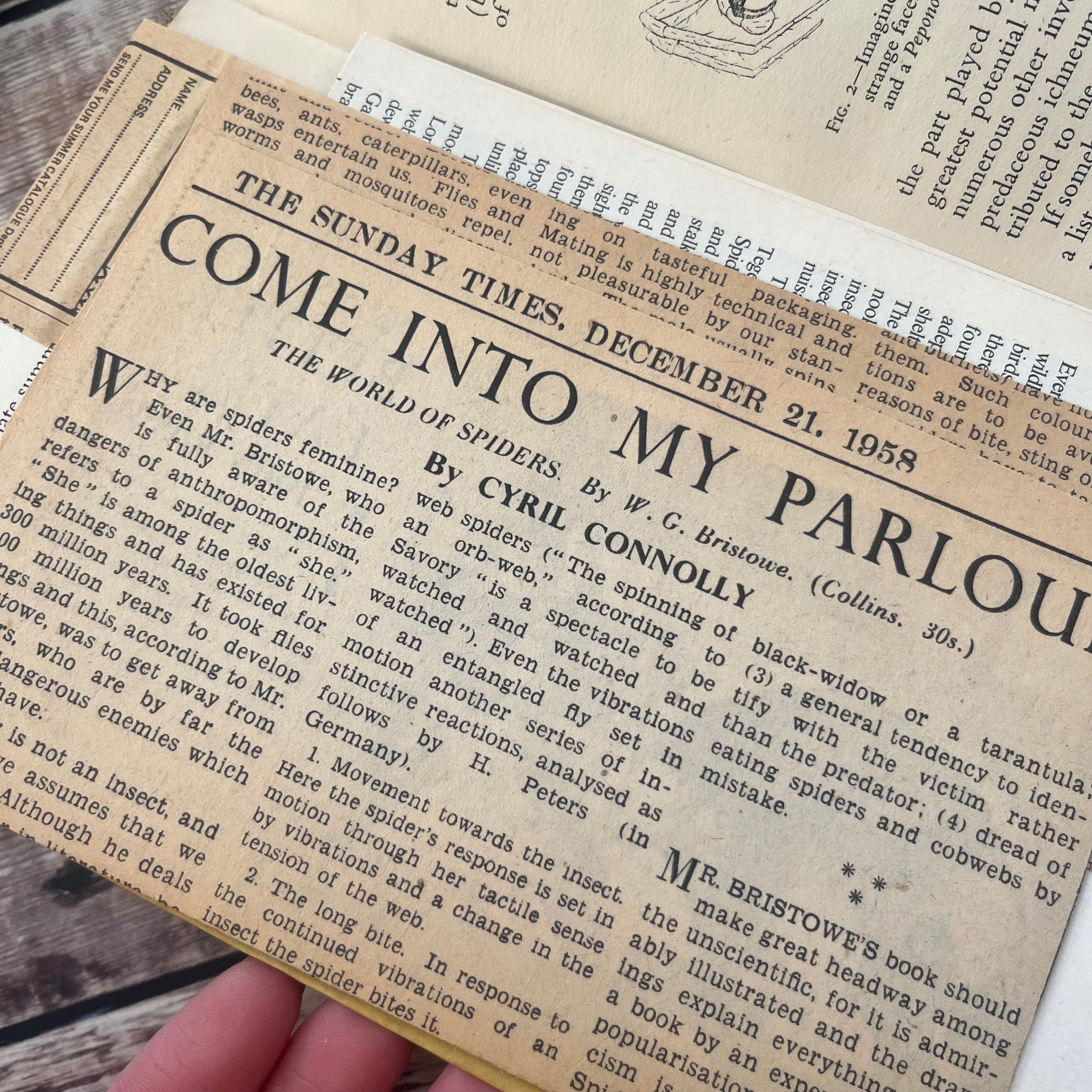 Inside, the pages show light age toning and very occasional foxing. There are striking illustrations, as well as a collection of loose clippings tucked inside.