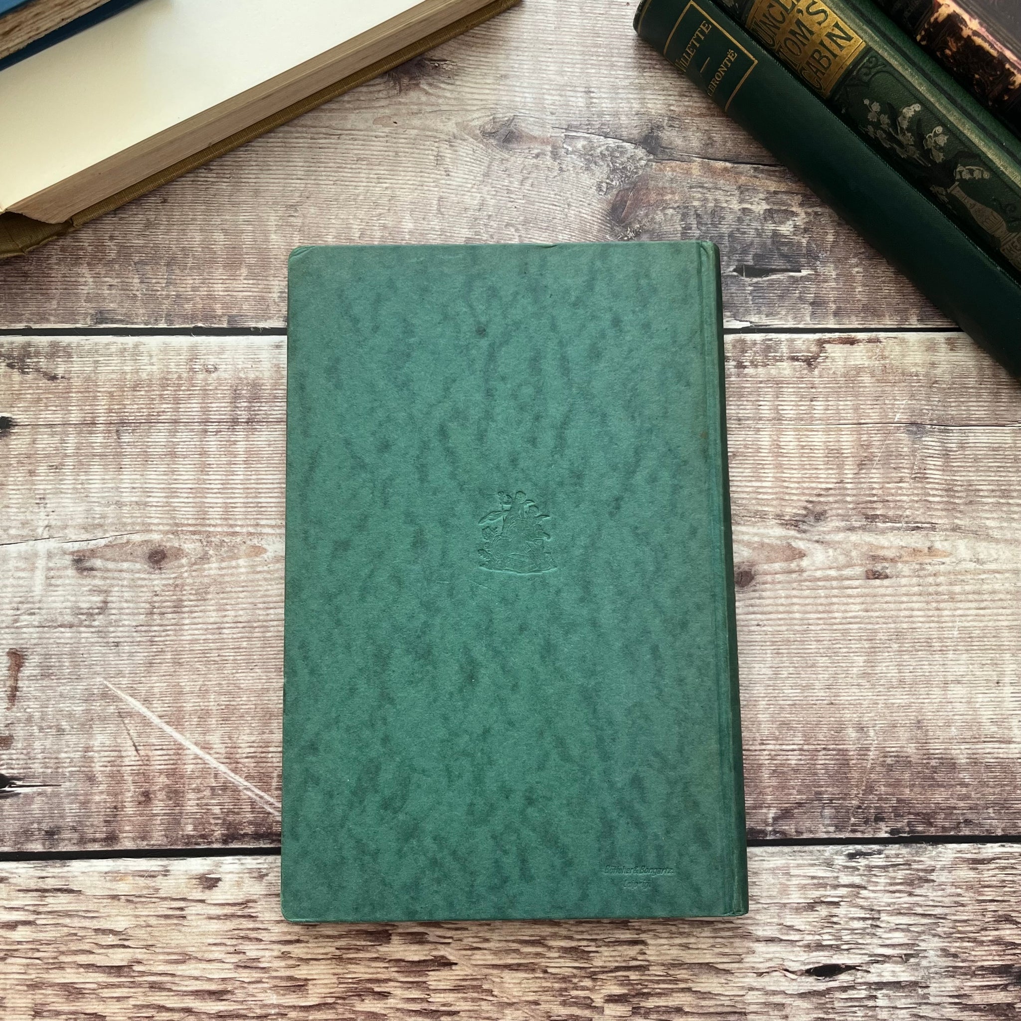 The book is bound in green paper with stunning floral and mountain pictorial decoration to the front board. It's in good condition for it's age, but there is wear and bumping to the corners. The book has a slight backwards lean and there is minor marking to the boards. There is some bumping and light denting to the board edges. The spine ends are crushed.