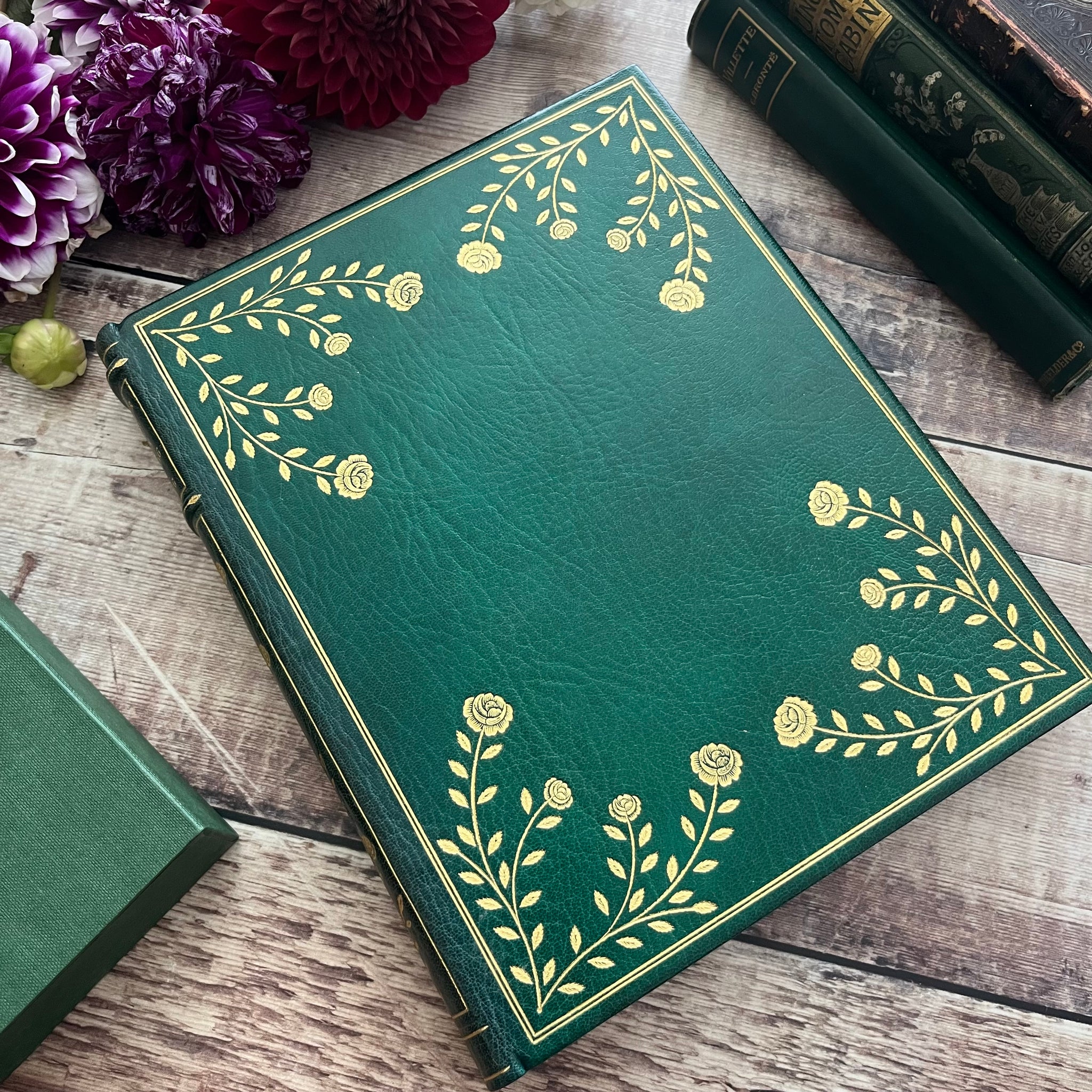 This exquisite edition of The Hillier Book of Garden Planting was published by David and Charles in 1988. A previous owner has had a custom binding made for it and they didn't stint on quality! It's finely bound in full green leather, with ornate gold gilt decoration to the boards and spine. The spine also features two raised bands and the book has it's own slipcase.