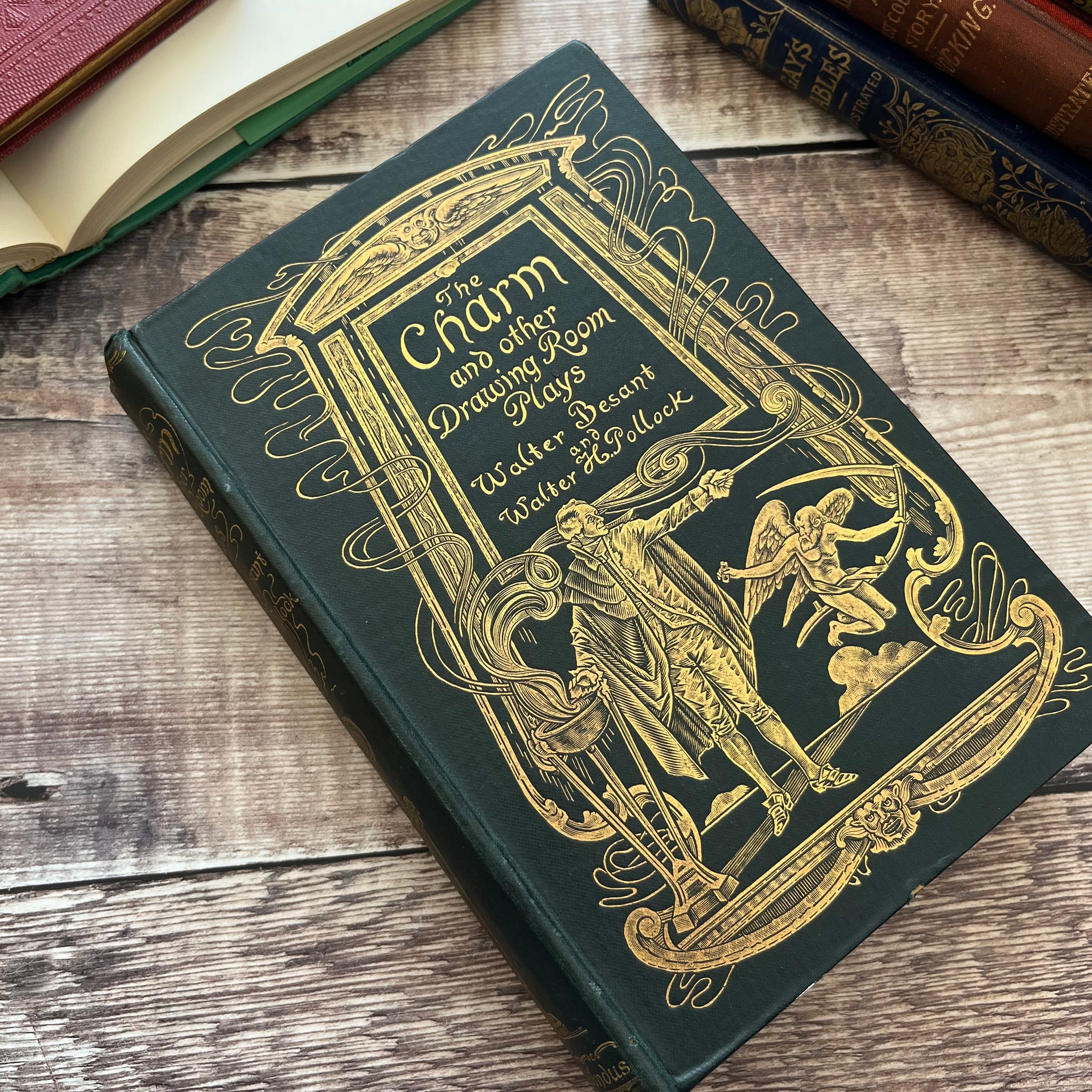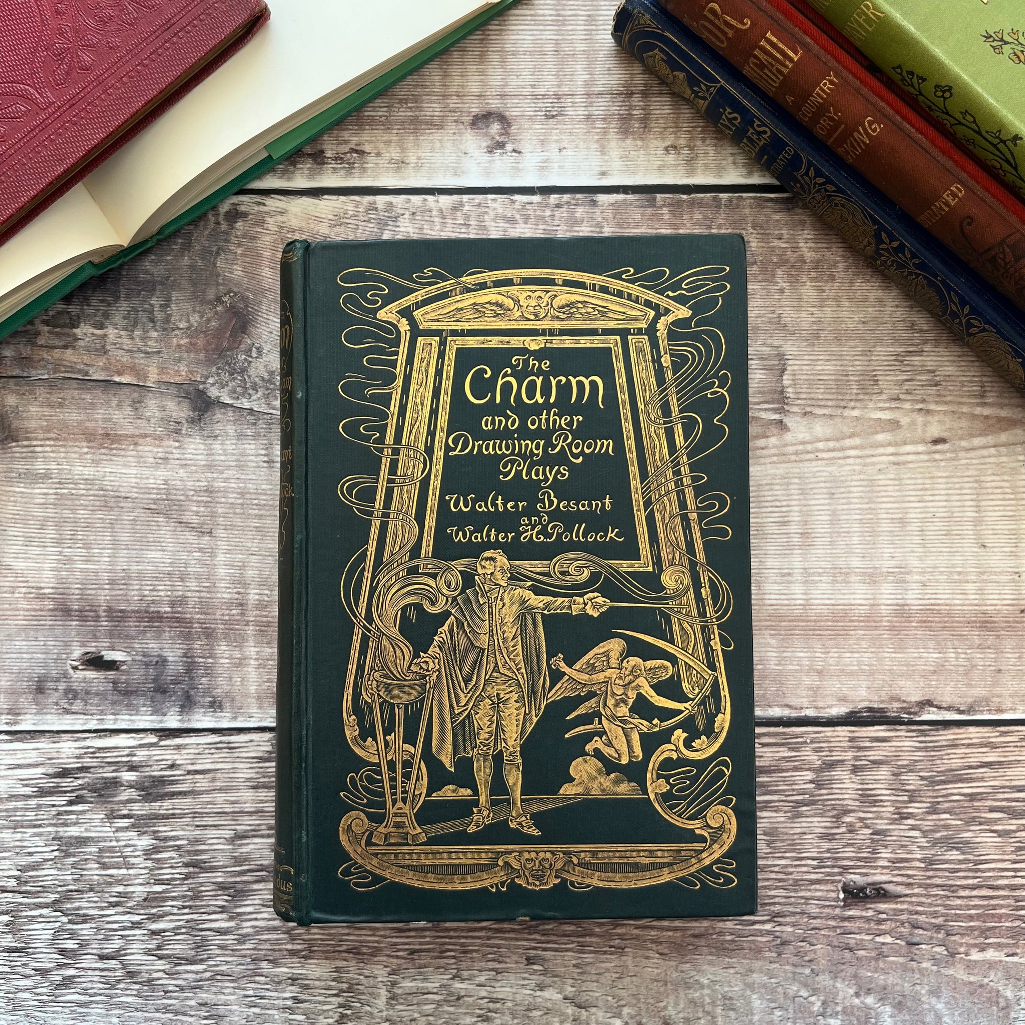 This beautiful vintage edition of The Charm and Other Drawing Room Plays by Walter Besant and Walter Pollock was published by Chatto and Windus in 1896. So the book is from the late Victorian era.