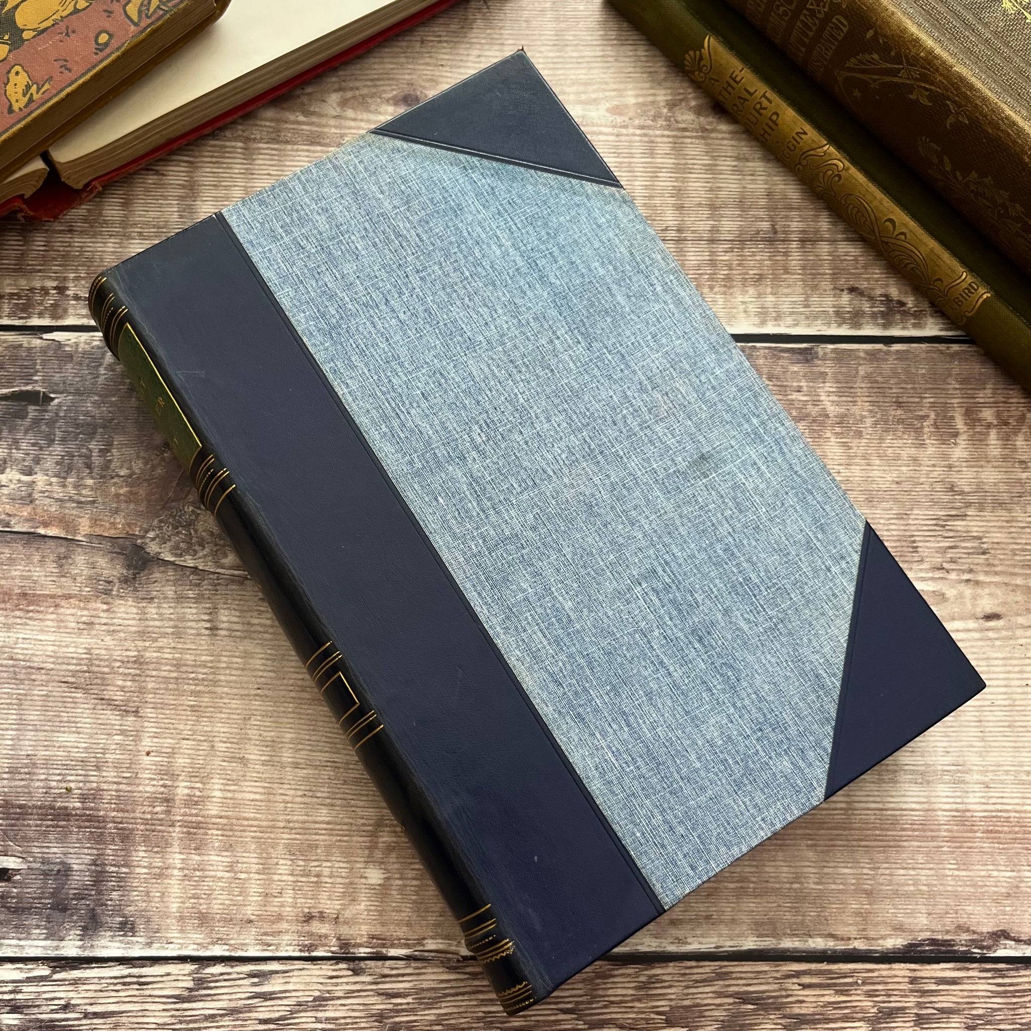The book is in very good condition with just minor marks to the boards and a chip to the surface of the leather at one corner. The leather has some scuffs and the spine is faintly faded, with wear and minor chipping to the surface of the leather near the tail of the spine. The top edge of the text block is dulled.