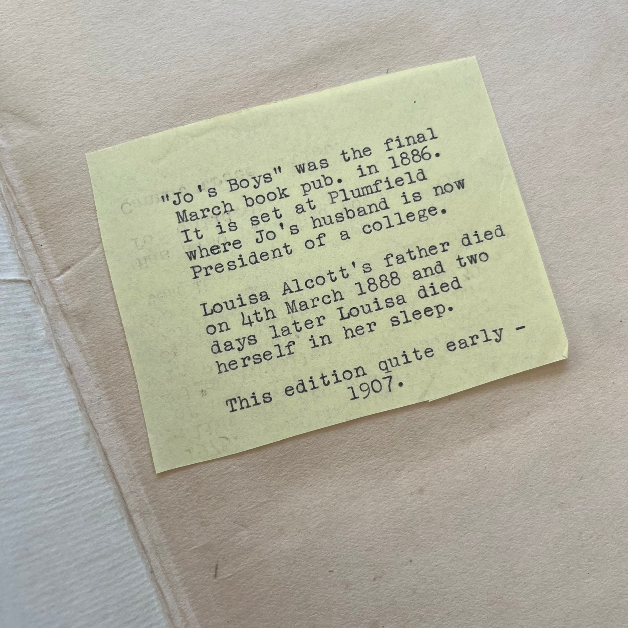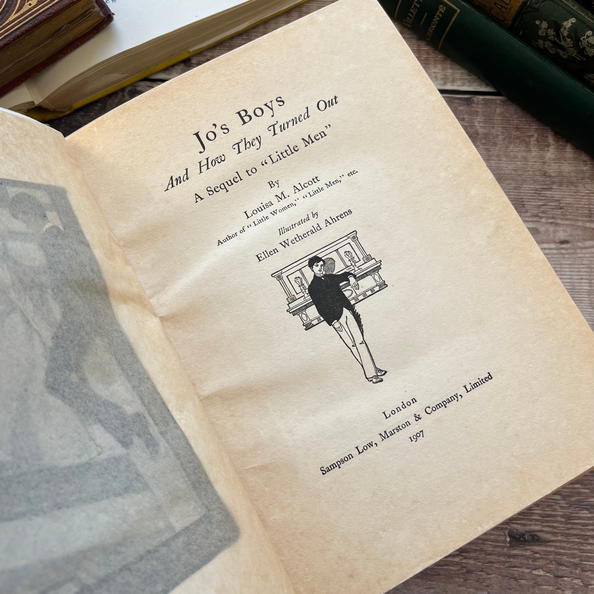This beautiful, antique edition of Jo's Boys by Louisa May Alcott was published by Sampson Low, Marston and Co in 1907. So the book is from the Edwardian era.