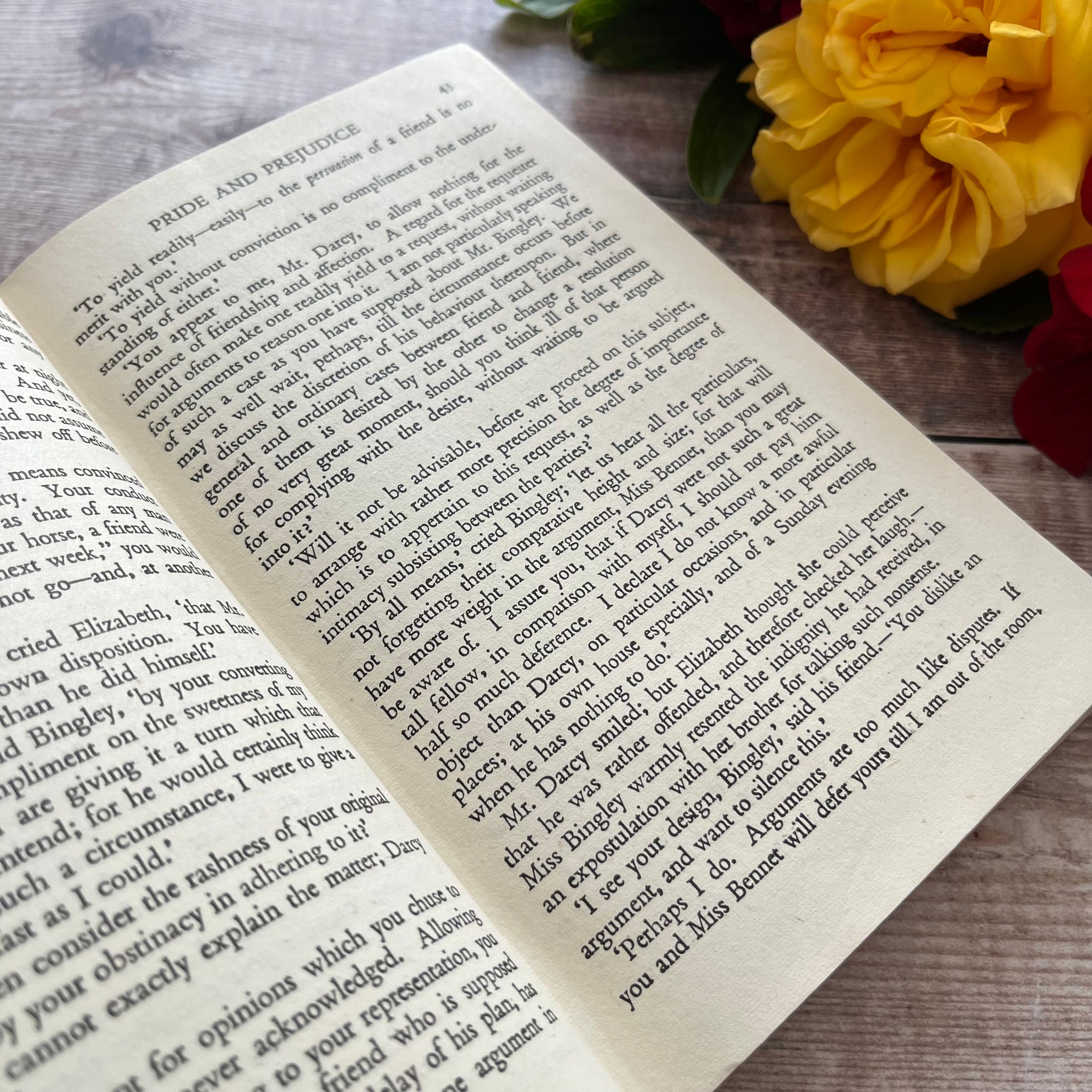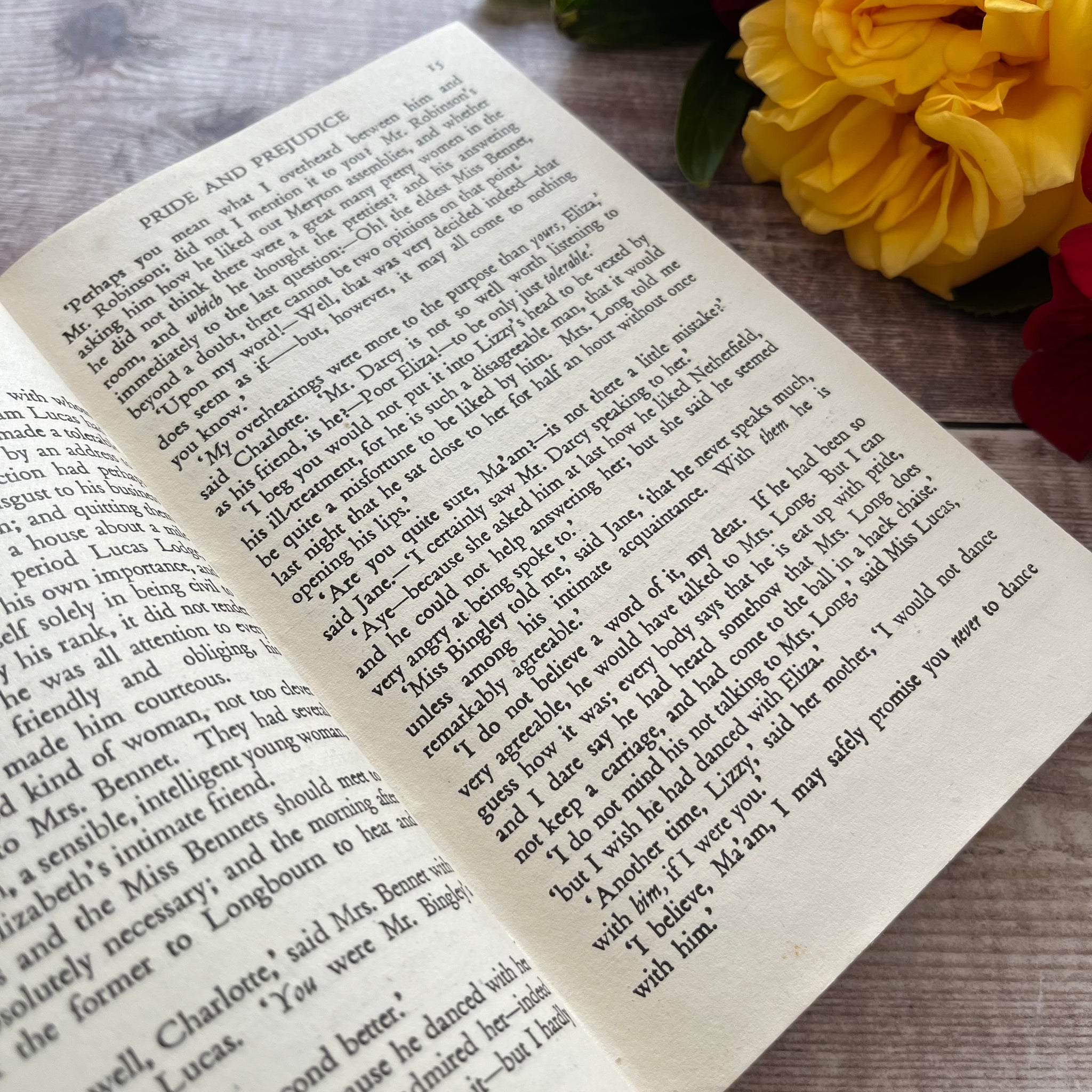 This beautiful vintage edition of Pride and Prejudice by Jane Austen was published by JM Dent and Son in 1941. It was a tie in to the popular film featuring Laurence Olivier and still has it's original DJ with scenes from the film.