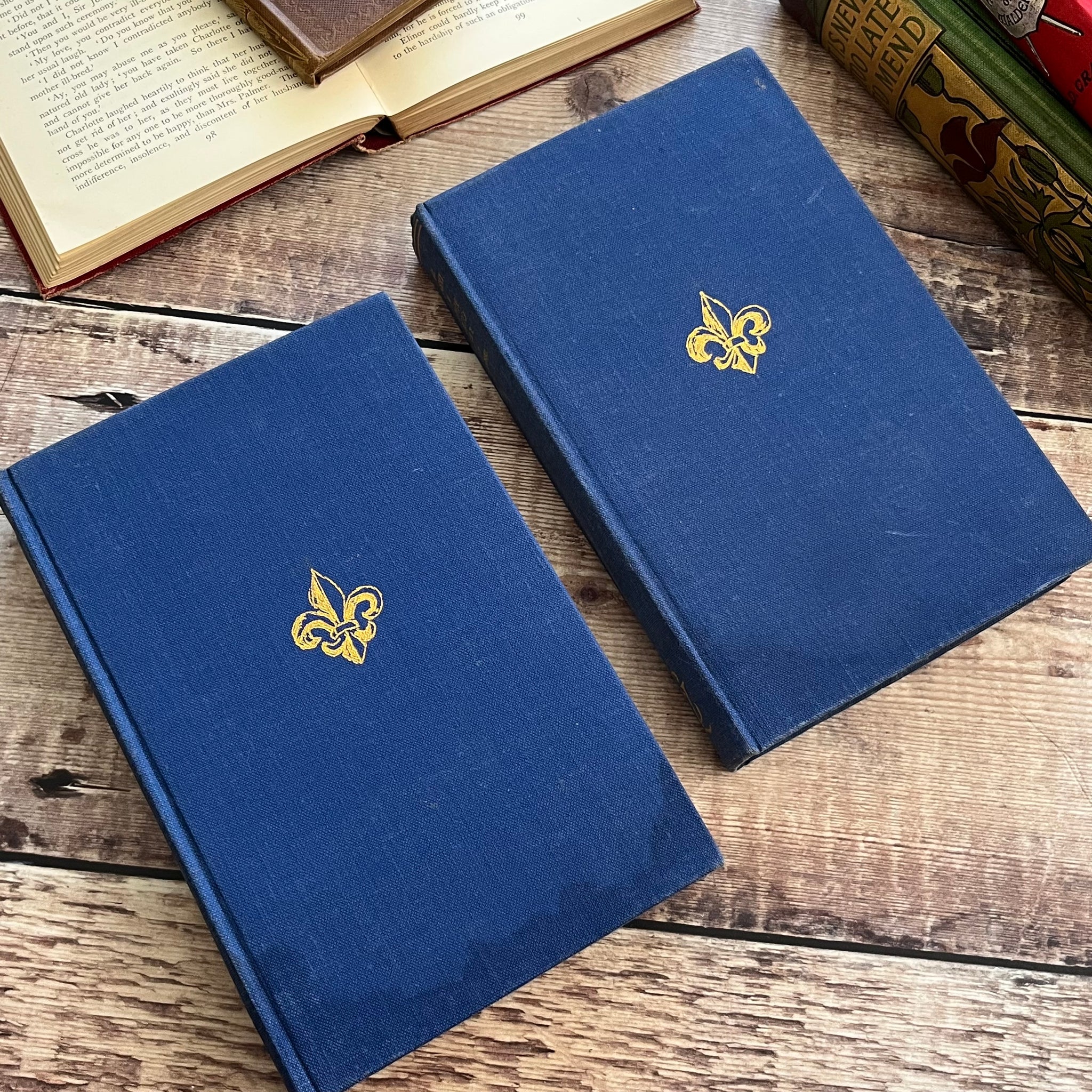 This lovely two volume edition of The Count of Monte Cristo by Alexandre Dumas was published by JM Dent for Everyman's Library in 1955. The books are uniformly bound in blue cloth with gilt lettering to the spine. I commissioned a book binder to also add some gilt tooling to the front board in the shape of a fleur de lis. These books would originally have had dust jackets so I just wanted to make them unique somehow and brighten up the plain blue.