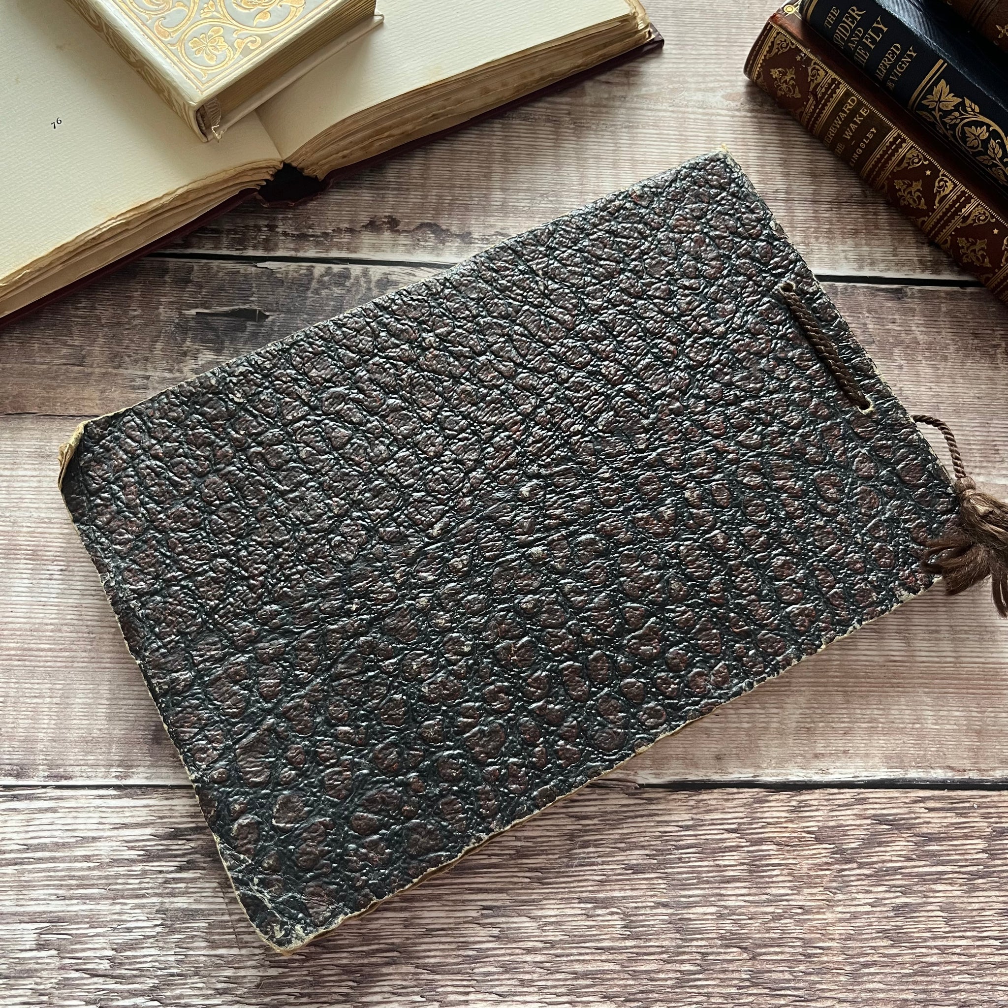 The landscape booklet has wear to the corners, edges and spine ends, with some loss to the surface of the faux leather.