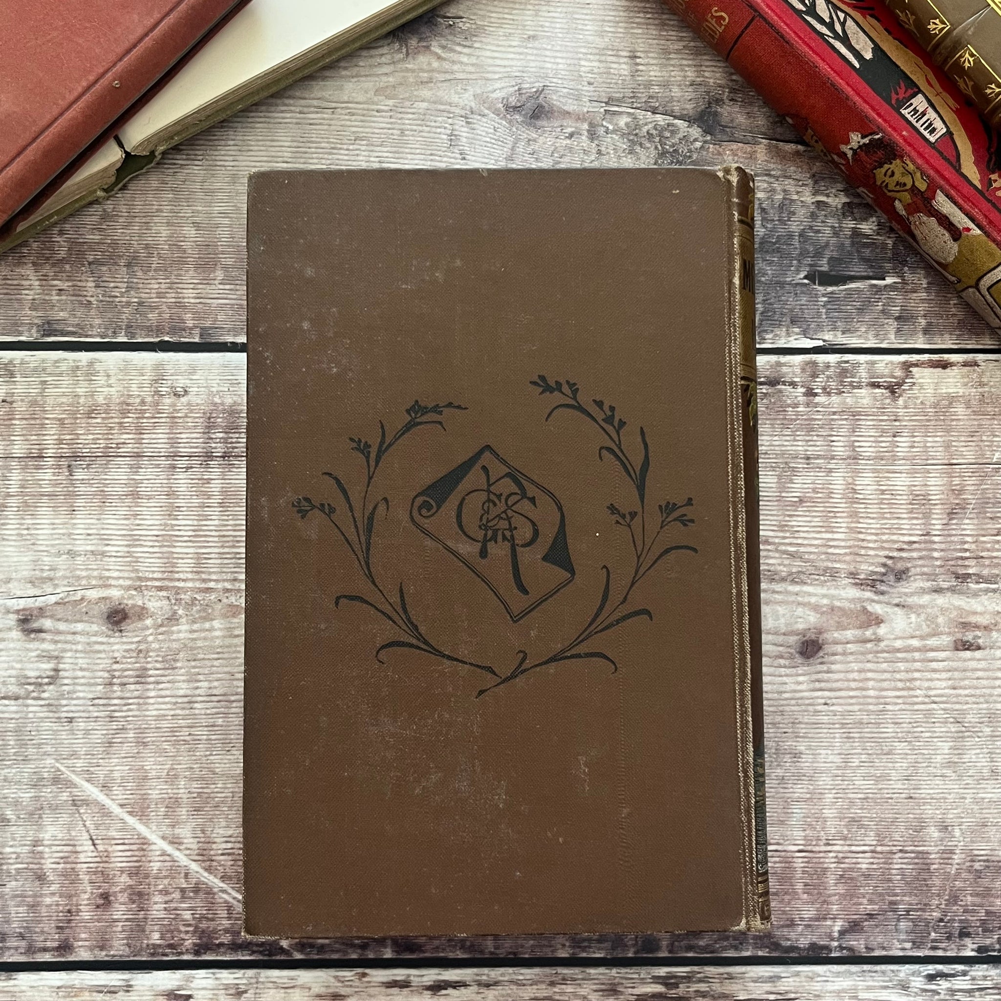 The book is bound in brown cloth with beautiful pictorial decoration to the front board and spine. It's in good condition but the book does show a slight forwards lean and there is some light wear to the corners. The text block edges show foxing and there is light shelf wear to the board edges. The boards show minor marks and there is rubbing to the spine edges, with crushing to the spine ends. There is minor loss to the gilt on the spine.