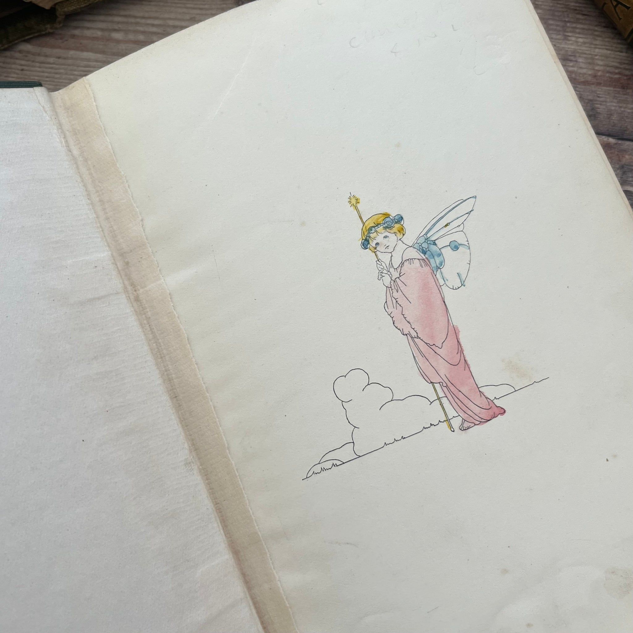 The book is prettily bound in pictorial green cloth with gilt lettering to the spine. It's in very good condition but the corners show wear and bumping with slight fraying to the cloth of one corner. The boards show minor scuffs and marks and there is sunning to the spine. Crushing to the spine ends has caused minor splitting in the cloth at the head of the spine. There is light foxing to the text block edges.