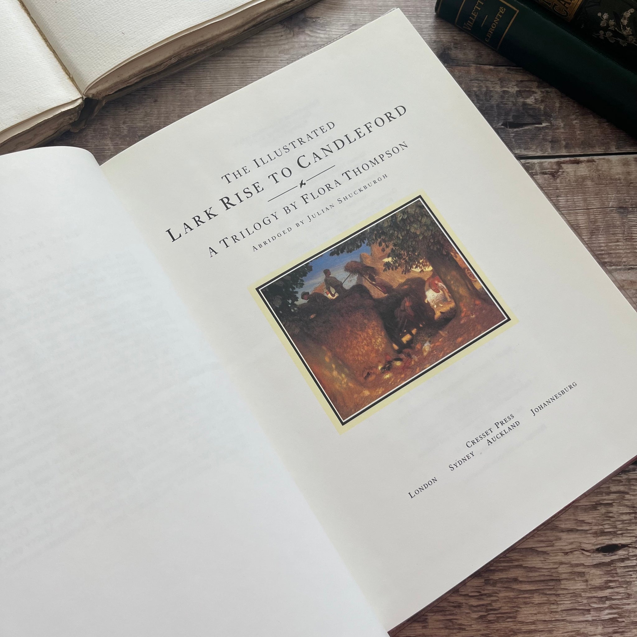 This special edition of Lark Rise to Candleford by Flora Thompson was published by Cresset Press in 1984. The book still has it's original dust jacket and the book is protected by clear plastic.